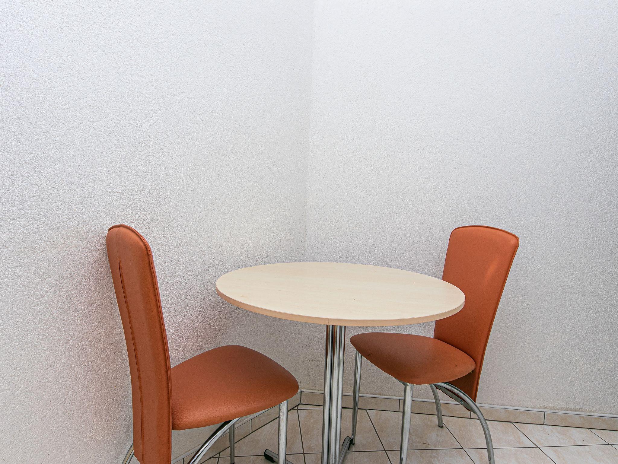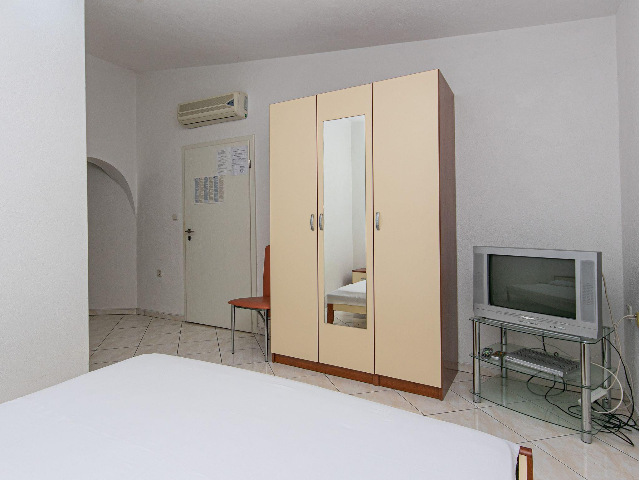 Studio bietet Platz für 2 Gäste. Die Betten sind in Schlafzimmern, die es 1 gibt, innerhalb einer Gesamtfläche von 20m2, angeordnet. Das Studio-Apartment bietet Meerblick. Es ist erlaubt, Speisen auf dem Gemeinschafts-Grill vorzubereiten. Die reservierte Unterkunftseinheit verfügt über einen gemeinsame Terrasse. IM PREIS INBEGRIFFEN: Kurtaxe, Endreinigung, Klimatisierung, Garage, Internet, Kinderbett, Zusatzbett, Föhn. VERBINDLICHE ZUSÄTZLICHE KOSTEN: Aufzahlung für Kurzaufenthalte (prozentualer Zuschlag pro Nächtigungsanzahl: 30% - 1, 20% - 2, 10% - 3). UNVERBINDLICHE ZUSÄTZLICHE KOSTEN: Wäschewaschen (5,00 € Waschen). Die Verfügbarkeit zusätzlicher Dienstleistungen in Ihrem reservierten Termin und die Preise derselben (falls nicht aufgeführt) müssen im Voraus überprüft werden. Zusätzliche Dienstleistungen die in der Zahlungsaufforderung nicht aufgeführt sind werden direkt beim Vermieter bezahlt, angenommen der Gast nutzt auch diese.