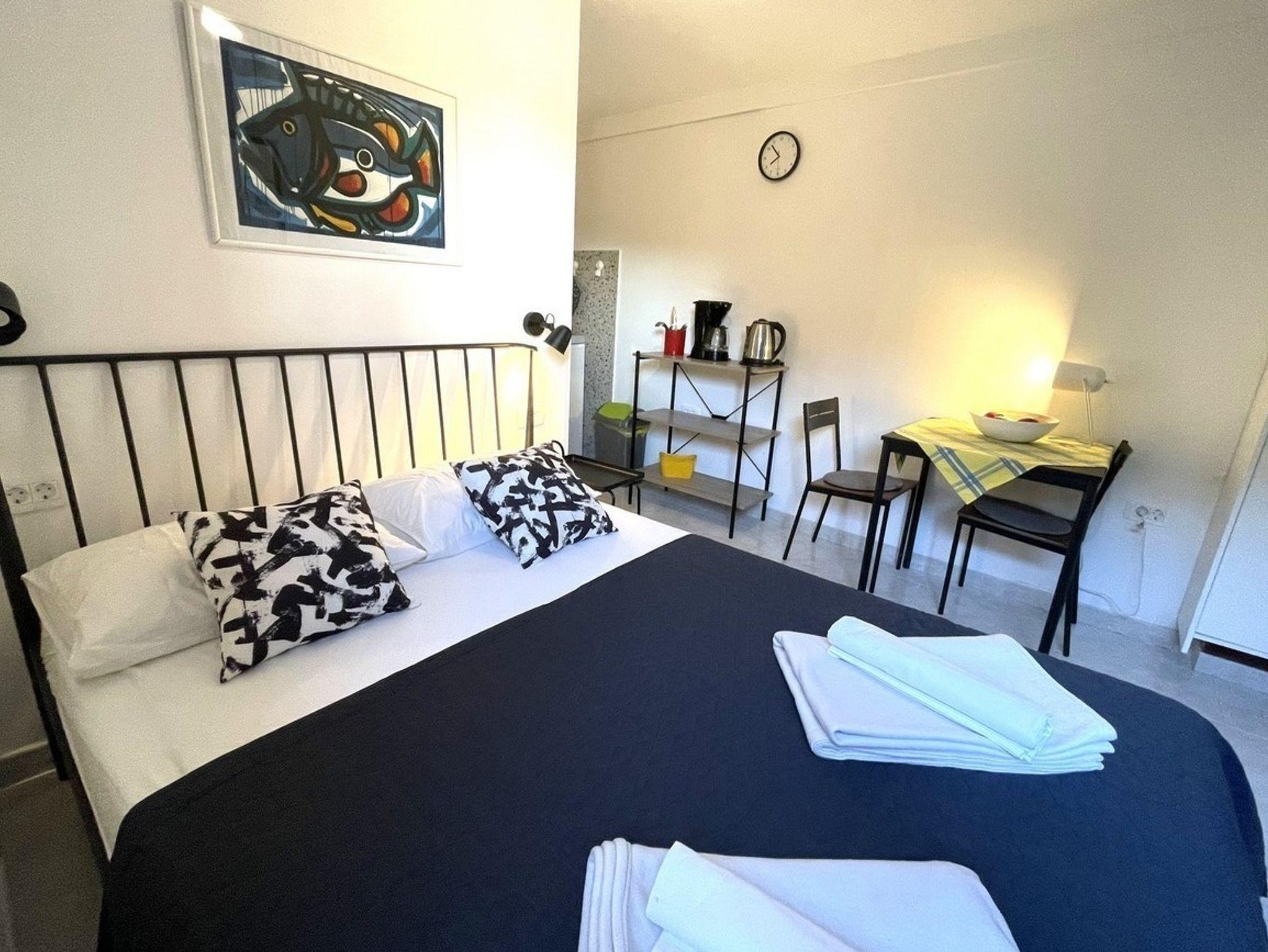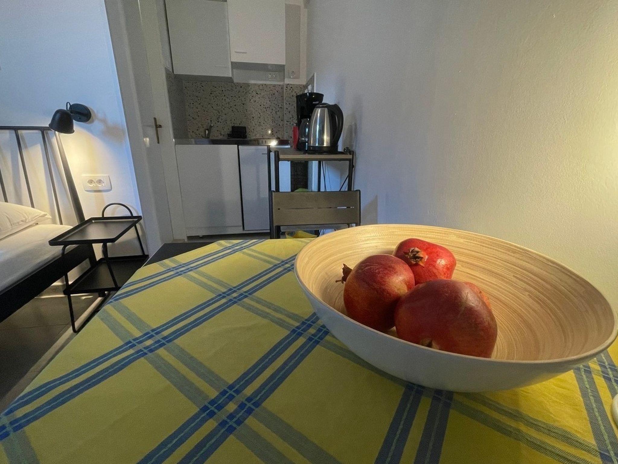 Studio bietet Platz für 2 Gäste. Die Betten sind in Schlafzimmern, die es 1 gibt, innerhalb einer Gesamtfläche von 14m2, angeordnet. Es ist erlaubt, Speisen auf dem Gemeinschafts-Grill vorzubereiten. In der Unterkunftseinheit besteht die Möglichkeit des Mitbringens von Haustieren, und die Dienstleistung ist im Preis der Unterkunft enthalten. Die reservierte Unterkunftseinheit verfügt über einen gemeinsame Terrasse. IM PREIS INBEGRIFFEN: Kurtaxe, Endreinigung, Klimatisierung, Parkplatz, Internet, Haustiere, Kinderbett, Bügeleisen, Bügelbrett, Föhn, tragbarer Grill. Die Verfügbarkeit zusätzlicher Dienstleistungen in Ihrem reservierten Termin und die Preise derselben (falls nicht aufgeführt) müssen im Voraus überprüft werden. Zusätzliche Dienstleistungen die in der Zahlungsaufforderung nicht aufgeführt sind werden direkt beim Vermieter bezahlt, angenommen der Gast nutzt auch diese.