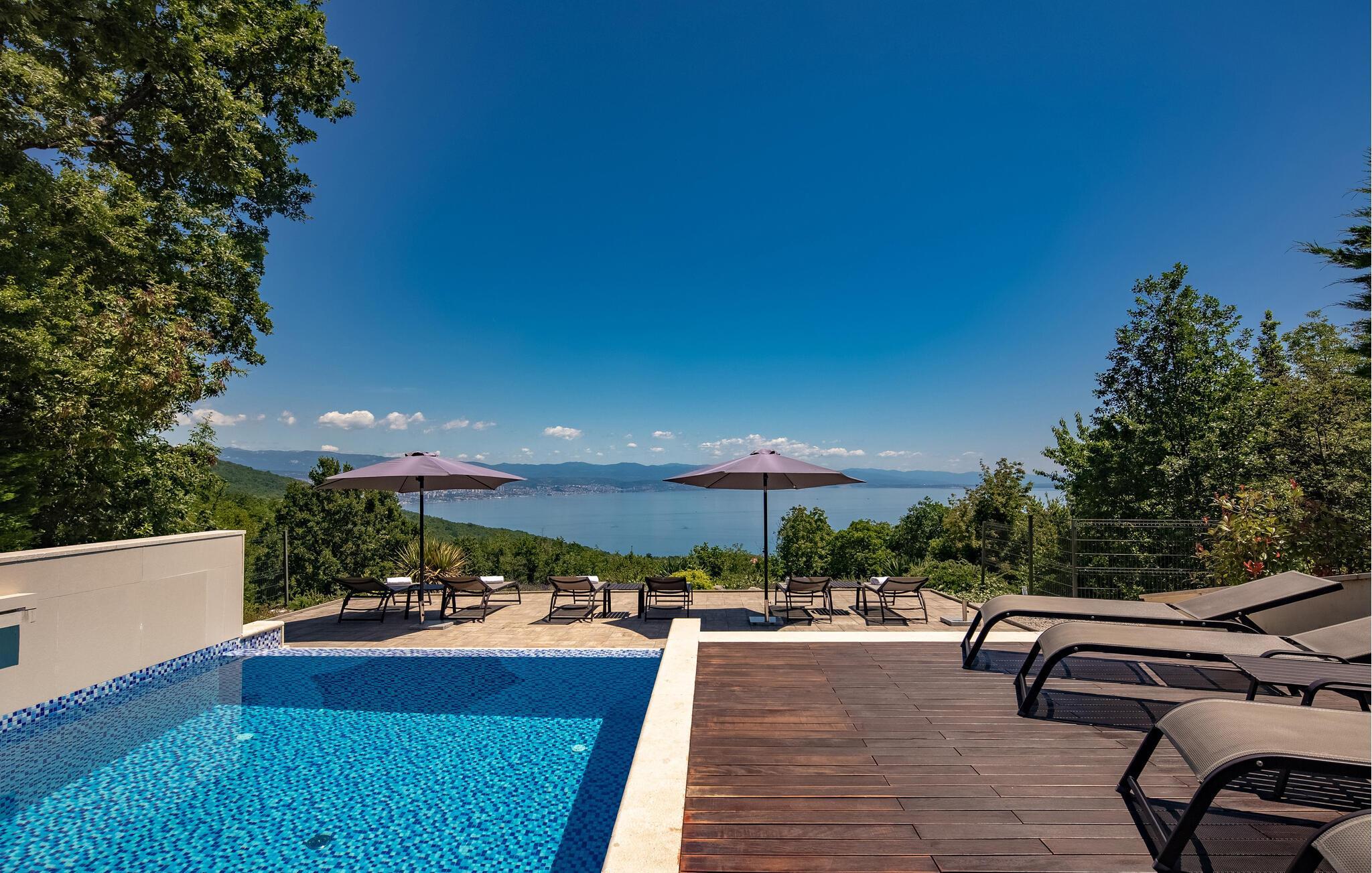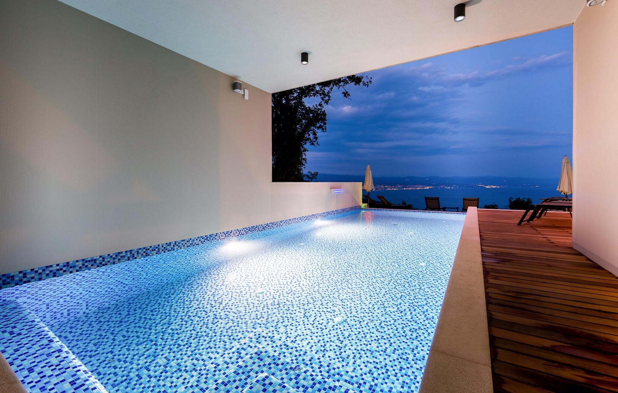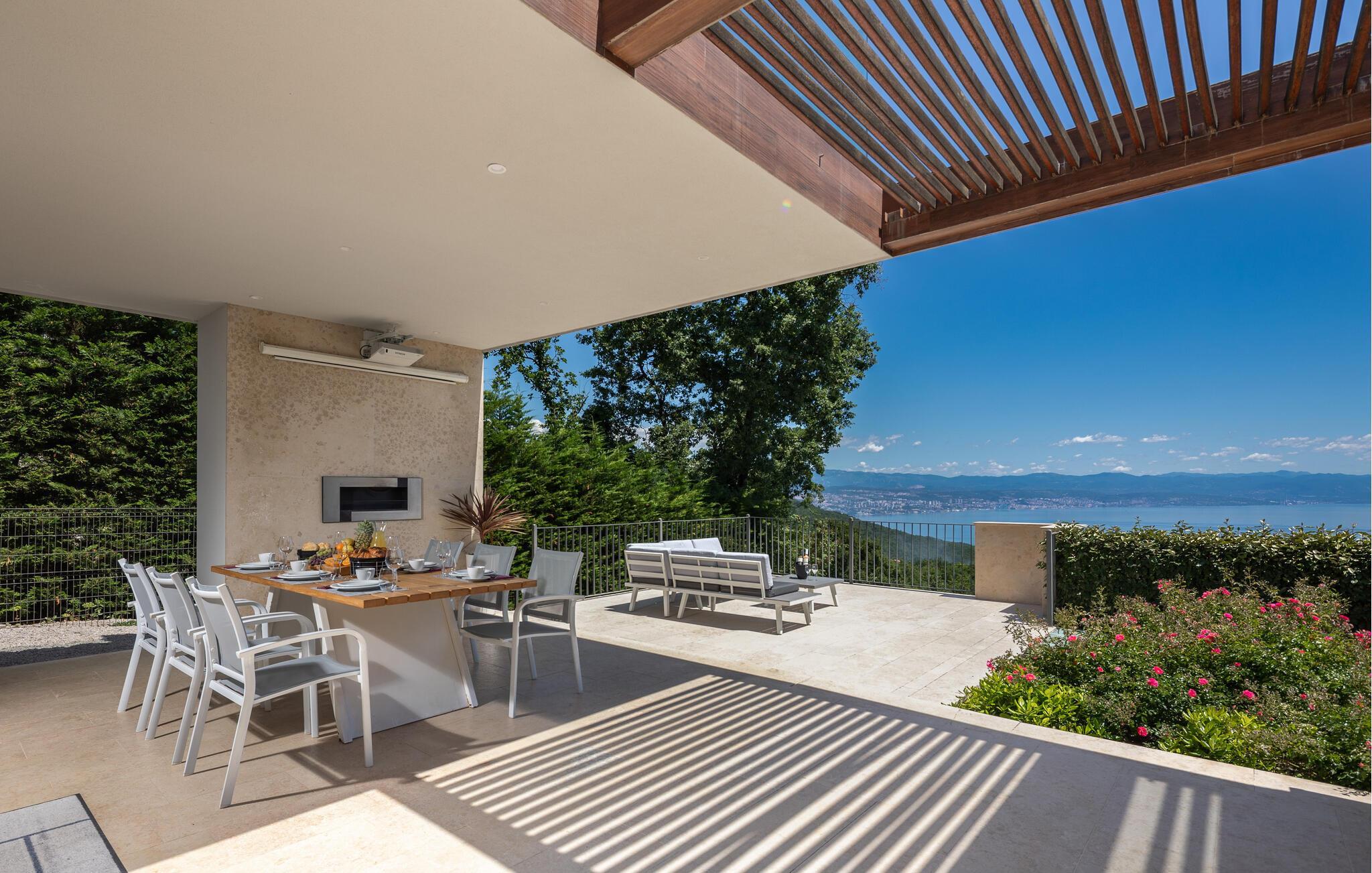 Perfekt placeret på hjørnet af Opatija Riviera med en betagende havudsigt, ligger Villa AltaVista - indbegrebet af moderne luksusliv. Der blev ikke sparet på udgifterne til at skabe denne ekstraordinære villa, der ikke lader noget tilbage at ønske. Hvis du vil vågne op hver morgen til en uovertruffen udsigt og spejlingerne over hele kystlinjen - søg ikke mere. Du har fundet den perfekte villa! Villaen er designet og indrettet med møbler af højeste kvalitet for at sikre en virkelig uforglemmelig oplevelse for gæsterne. Villaen har en moderne stue, et fuldt udstyret køkken, spiseplads, 4 soveværelser med eget badeværelse, et spa-rum samt et underholdningsområde. Hele villaen har et automatisk varme- og kølesystem, Wi-Fi internetforbindelse og lydanlæg i stue og soveværelser. Spa-rummet er det perfekte fristed til at slappe af i den finske sauna eller til at nyde aftenen i spabadet. Villaen byder på en overflod af underholdning med poolbord, airhockey og bueskydningsudstyr. En smuk udsigt over bugten og de nærliggende øer strækker sig ud foran dig fra infinity-poolen med et massagegardinvandfald, som kan opvarmes efter anmodning. Loungen på taget er det perfekte sted at tilbringe dine aftener med at nyde selskabet med din familie og venner eller måske en romantisk aften med din kæreste. :)Icici er en lille landsby spredt over bakker under bjerget Ucka, der adskiller regionerne Istrien og Kvarner, med udsigt over den fantastiske Kvarnerbugt. Icici ligger cirka 8 km syd fra Opatija - Adriaens perle, og mindre end 30 km fra Rijeka, Kroatiens 3. største by. Når du besøger dette område, vil du forelske dig i dets fantastiske beliggenhed, som giver dig mulighed for at opdage det bedste fra begge regioner, Kvarner og Istrien, men også det bedste fra begge - bjerg og hav. Dette område er berømt for sine naturlige fordele og det gavnlige klima, hvilket gør det til et sted, hvor folk kommer for fordelene ved thalassoterapi, medicinsk brug af havvand og luft som en form for terapi. Du vil elske Ucka med dens forskellige vandrestier og betagende udsigt fra toppen af bjerget, hvorfra det på en god dag er muligt at se hele vejen til Venedig, som de lokale siger. Inden for kun 5 km fra Icici finder du mange strande at nyde solen og slappe af på. Hvis du kan lide højsæsonens summen på stenstrande, så gå ikke glip af at besøge strandene Medveja og Moscenicka Draga. Den bedste måde at lære området at kende er at gå gennem Lungo Mare, en 12 km lang promenade langs havet, der forbinder Volosko, en charmerende lille fiskerby på den ene side, med Lovran, den nærmeste by til Icici, på anden side. Du vil elske romantiske gåture om aftenen med udsigt til den maleriske solnedgang eller morgenløbet lige ud til havet. Hvis du vil opdage mere end de nærmeste omgivelser, så gå ikke glip af at besøge en af de storslåede øer i Kvarnerbugten-Cres, Losinj og Krk, eller en af mange charmerende små middelalderbyer i Istrien. Uanset hvad du vælger, vil du blive overrasket.