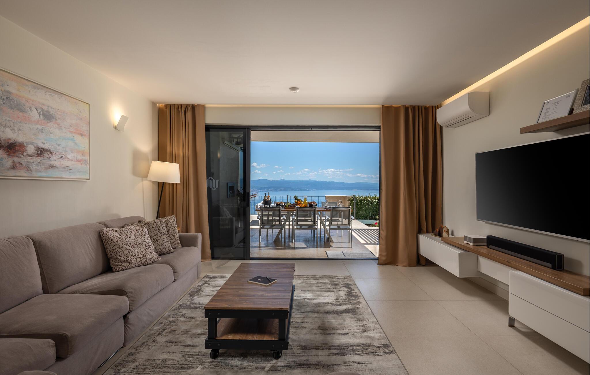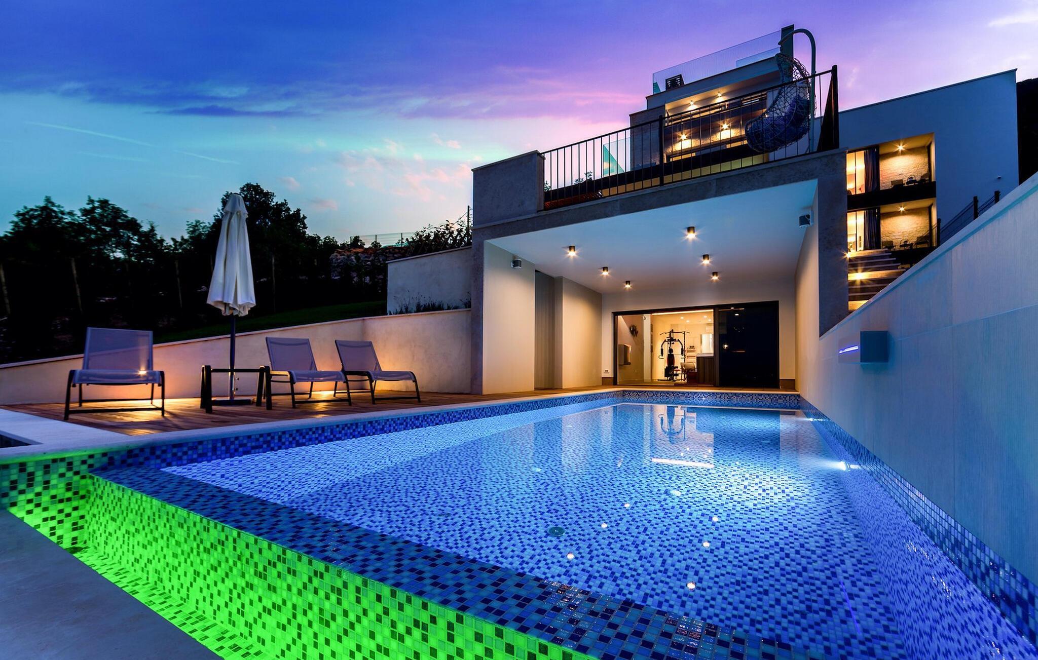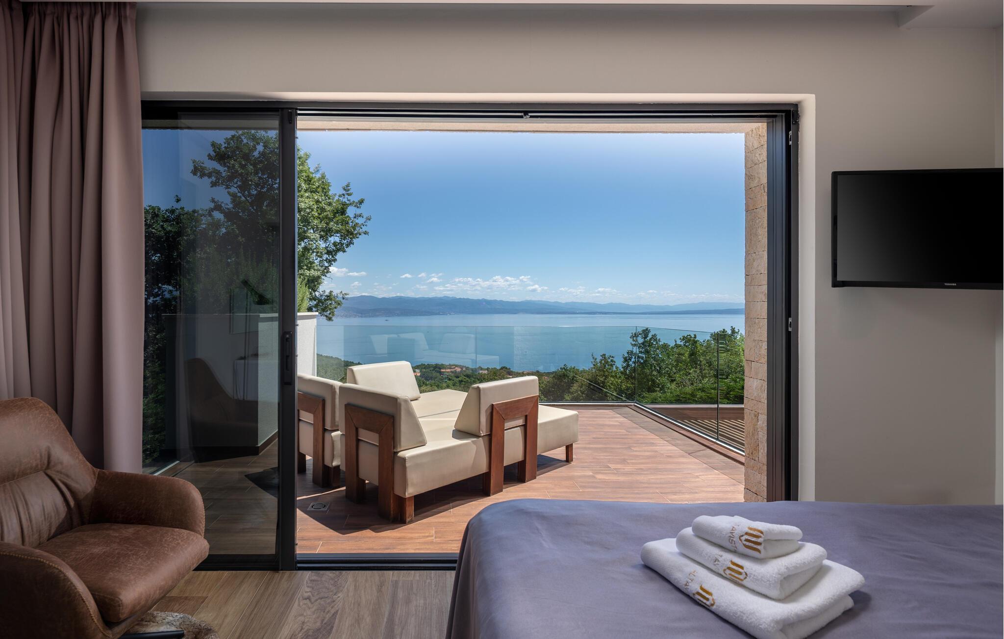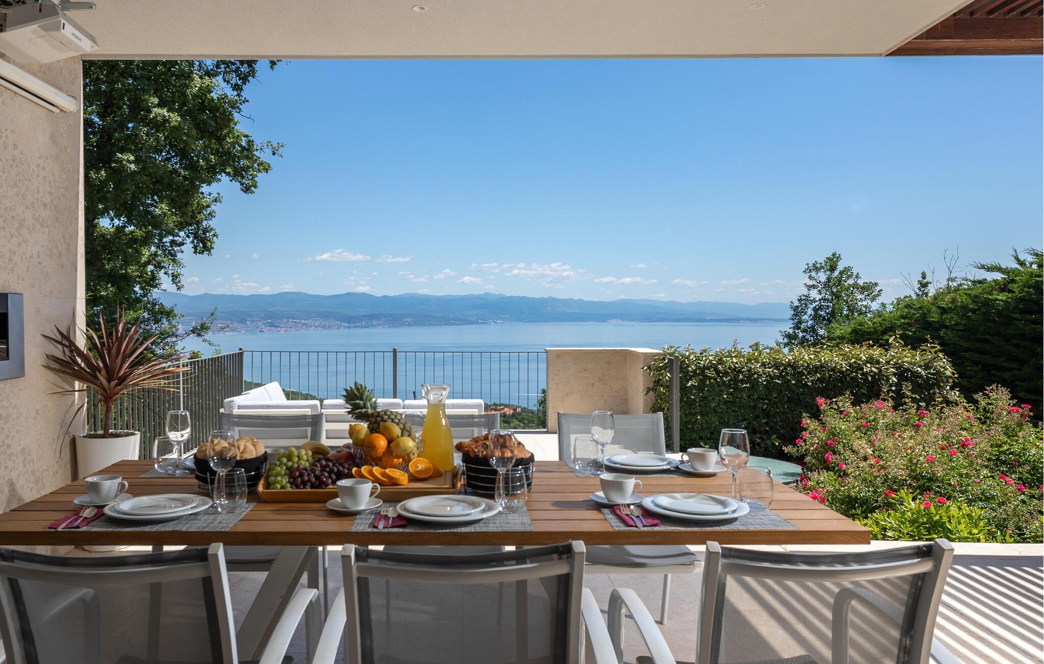 Perfekt placeret på hjørnet af Opatija Riviera med en betagende havudsigt, ligger Villa AltaVista - indbegrebet af moderne luksusliv. Der blev ikke sparet på udgifterne til at skabe denne ekstraordinære villa, der ikke lader noget tilbage at ønske. Hvis du vil vågne op hver morgen til en uovertruffen udsigt og spejlingerne over hele kystlinjen - søg ikke mere. Du har fundet den perfekte villa! Villaen er designet og indrettet med møbler af højeste kvalitet for at sikre en virkelig uforglemmelig oplevelse for gæsterne. Villaen har en moderne stue, et fuldt udstyret køkken, spiseplads, 4 soveværelser med eget badeværelse, et spa-rum samt et underholdningsområde. Hele villaen har et automatisk varme- og kølesystem, Wi-Fi internetforbindelse og lydanlæg i stue og soveværelser. Spa-rummet er det perfekte fristed til at slappe af i den finske sauna eller til at nyde aftenen i spabadet. Villaen byder på en overflod af underholdning med poolbord, airhockey og bueskydningsudstyr. En smuk udsigt over bugten og de nærliggende øer strækker sig ud foran dig fra infinity-poolen med et massagegardinvandfald, som kan opvarmes efter anmodning. Loungen på taget er det perfekte sted at tilbringe dine aftener med at nyde selskabet med din familie og venner eller måske en romantisk aften med din kæreste. :)Icici er en lille landsby spredt over bakker under bjerget Ucka, der adskiller regionerne Istrien og Kvarner, med udsigt over den fantastiske Kvarnerbugt. Icici ligger cirka 8 km syd fra Opatija - Adriaens perle, og mindre end 30 km fra Rijeka, Kroatiens 3. største by. Når du besøger dette område, vil du forelske dig i dets fantastiske beliggenhed, som giver dig mulighed for at opdage det bedste fra begge regioner, Kvarner og Istrien, men også det bedste fra begge - bjerg og hav. Dette område er berømt for sine naturlige fordele og det gavnlige klima, hvilket gør det til et sted, hvor folk kommer for fordelene ved thalassoterapi, medicinsk brug af havvand og luft som en form for terapi. Du vil elske Ucka med dens forskellige vandrestier og betagende udsigt fra toppen af bjerget, hvorfra det på en god dag er muligt at se hele vejen til Venedig, som de lokale siger. Inden for kun 5 km fra Icici finder du mange strande at nyde solen og slappe af på. Hvis du kan lide højsæsonens summen på stenstrande, så gå ikke glip af at besøge strandene Medveja og Moscenicka Draga. Den bedste måde at lære området at kende er at gå gennem Lungo Mare, en 12 km lang promenade langs havet, der forbinder Volosko, en charmerende lille fiskerby på den ene side, med Lovran, den nærmeste by til Icici, på anden side. Du vil elske romantiske gåture om aftenen med udsigt til den maleriske solnedgang eller morgenløbet lige ud til havet. Hvis du vil opdage mere end de nærmeste omgivelser, så gå ikke glip af at besøge en af de storslåede øer i Kvarnerbugten-Cres, Losinj og Krk, eller en af mange charmerende små middelalderbyer i Istrien. Uanset hvad du vælger, vil du blive overrasket.