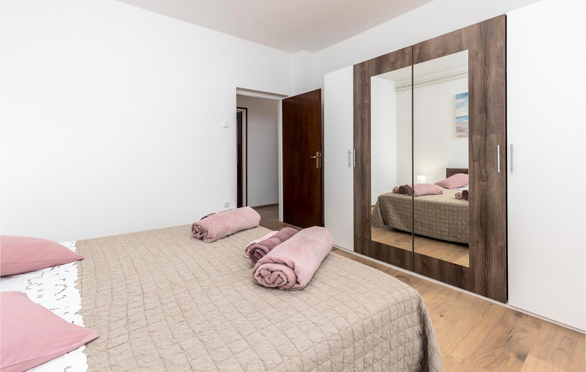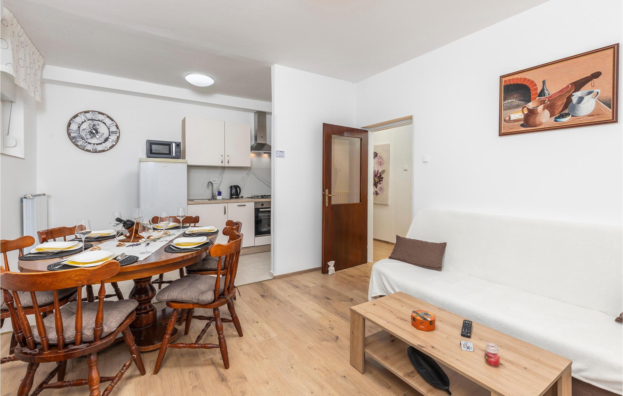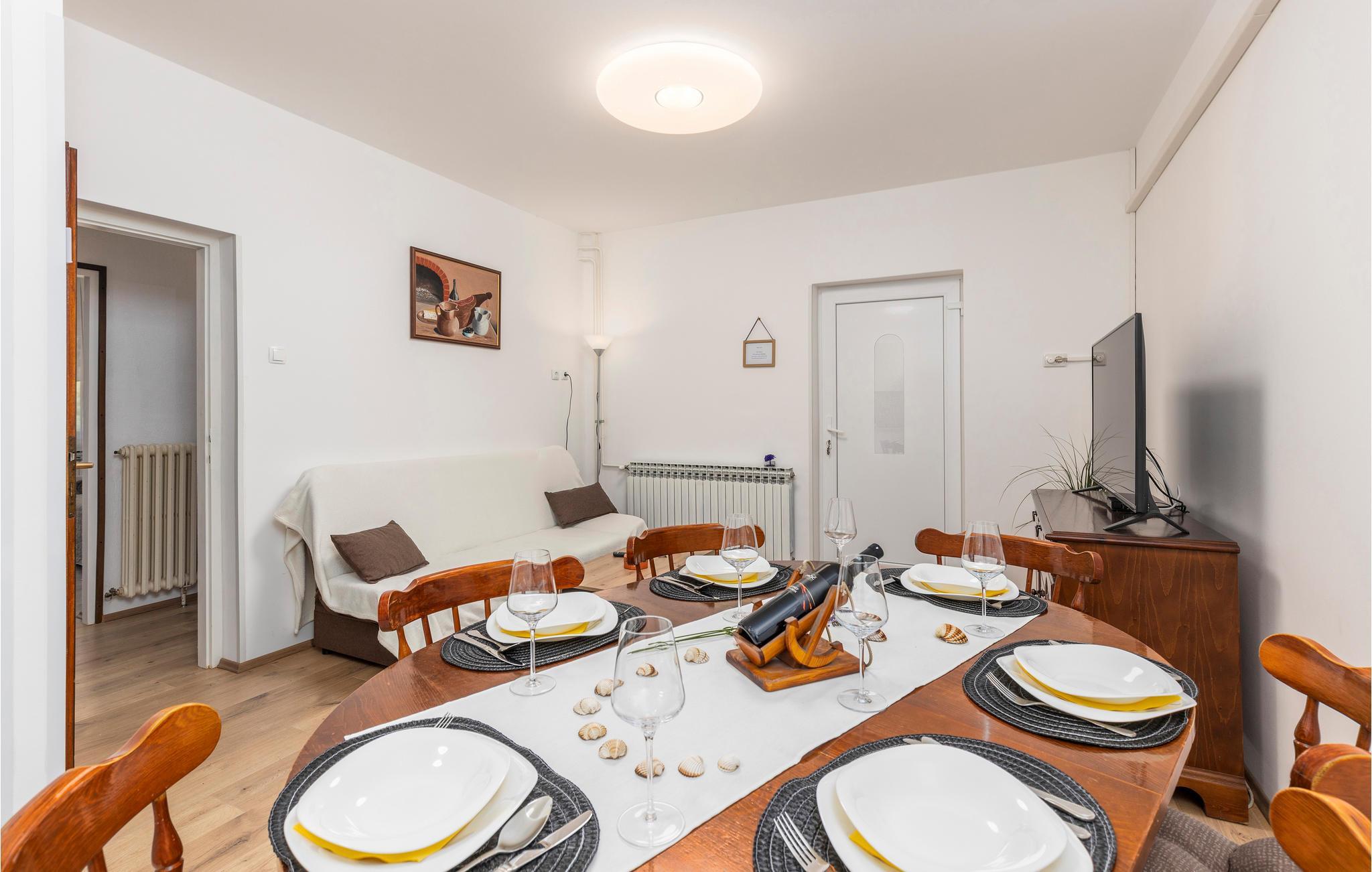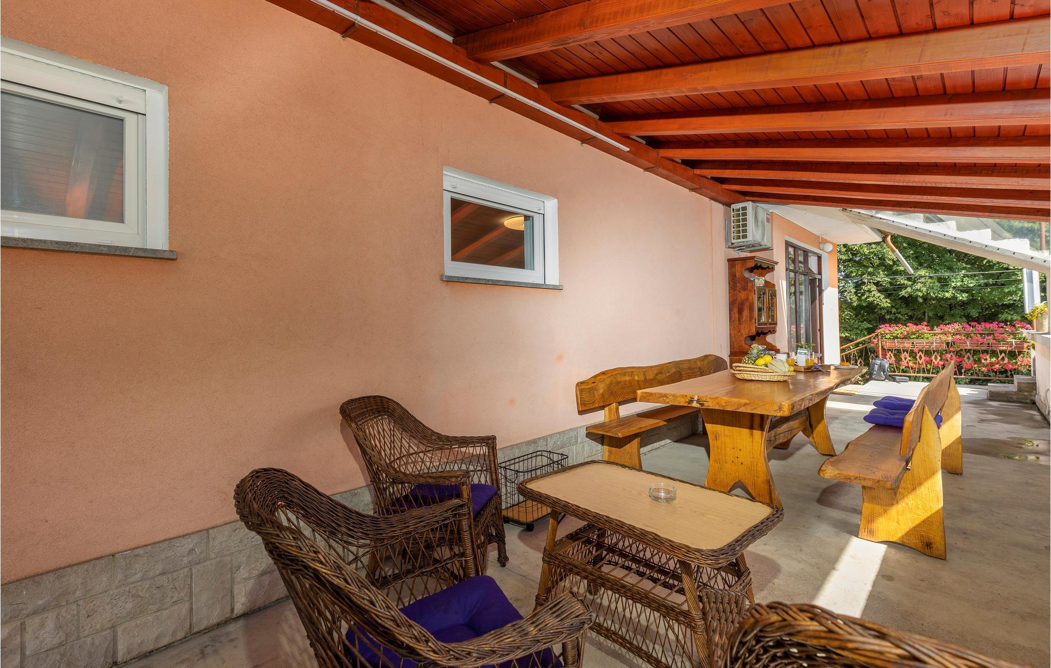 et lille boligområde i Mucici byder denne rummelige lejlighed dig velkommen med en stor overdækket terrasse og udsigt over landskabet. Undslippe din hverdag og nyd denne behagelige lejlighed i en rolig beliggenhed i baglandet af Opatija Riviera. Kom indenfor i lejligheden og glæd dig til lyse og venlige værelser, der er udstyret med alt hvad du behøver til din ubekymrede ferie. Træd ud på balkonen, når du vågner om morgenen, og nyd udsigten over landskabet. Drik din morgenkaffe på terrassen eller spil kort i skyggen om eftermiddagen. Beliggenheden giver dig korte afstande til alle faciliteter, promenader, vandre- og vandrestier i naturen og ved havet. Bo på de smukke strande ved Opatija Riviera og oplev det rige udbud af underholdning og natteliv, sport i naturen og ved havet. Du kan også besøge naturparken Ucka eller, hvis du er eventyrlysten, starte fra flyvepladsen til paragliding og drageflyvning. Oplev de omkringliggende øer og planlæg ture til øerne Krk, Cres og Lošinj, som kan nås med båd fra Opatija!