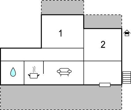Opholdsstue/køkken 22m2 - 1 Soveplads. (Sofa, madras eller lignende).