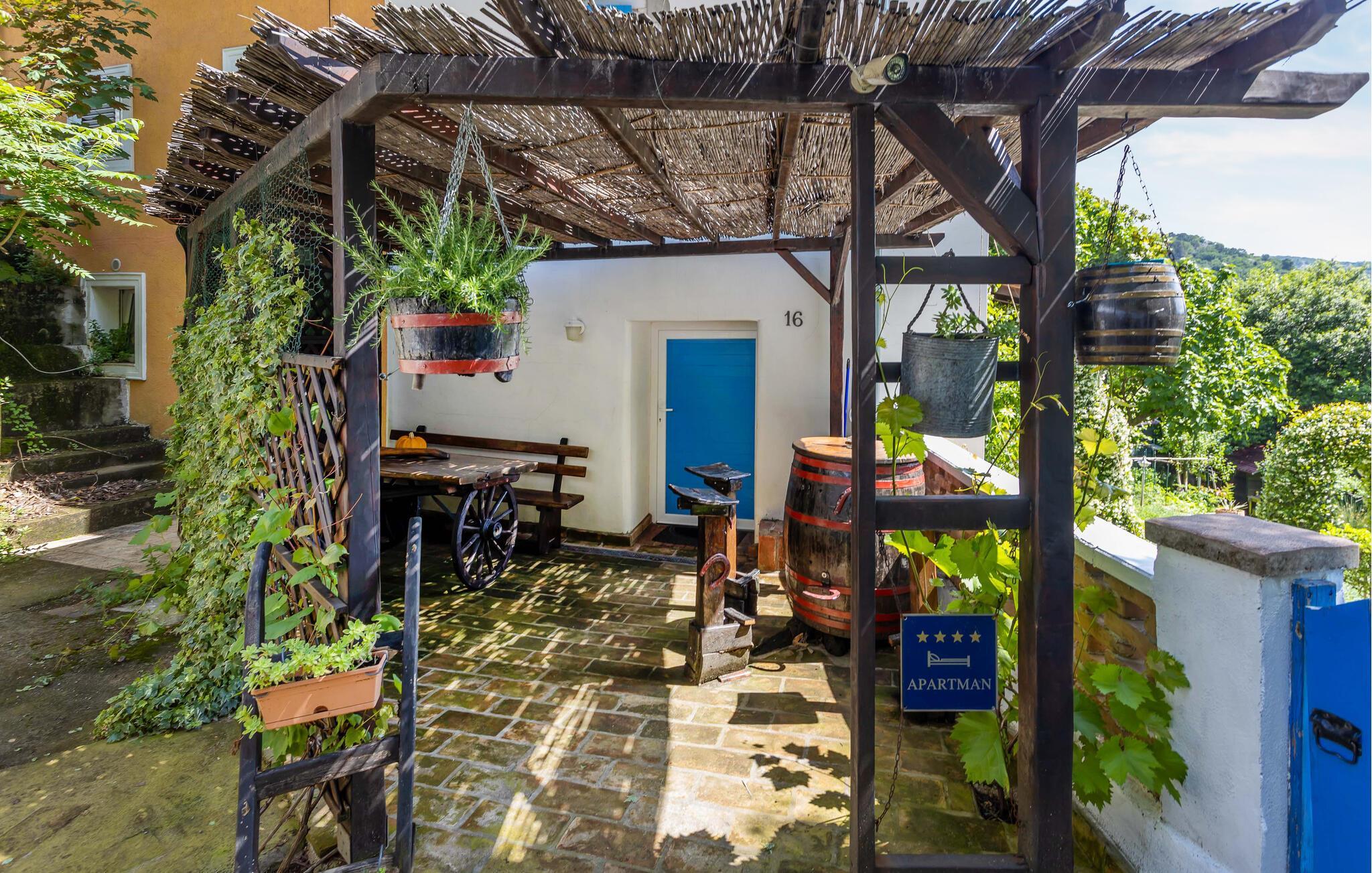 Fra soveværelset i stueetagen har I direkte adgang til den solrige terrasse, som er ideel til afslapning. Den fuldt indhegnede grund giver jer privatliv, mens I nyder naturen. Den korte afstand til Rijekas bycentrum, som kan nås til fods, giver ekstra komfort.