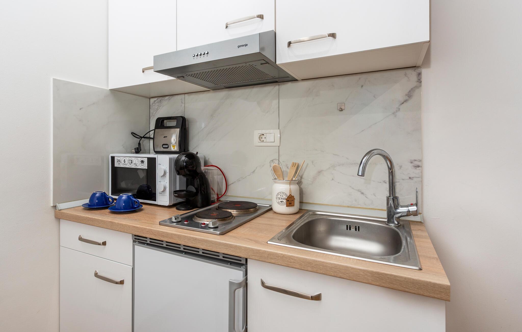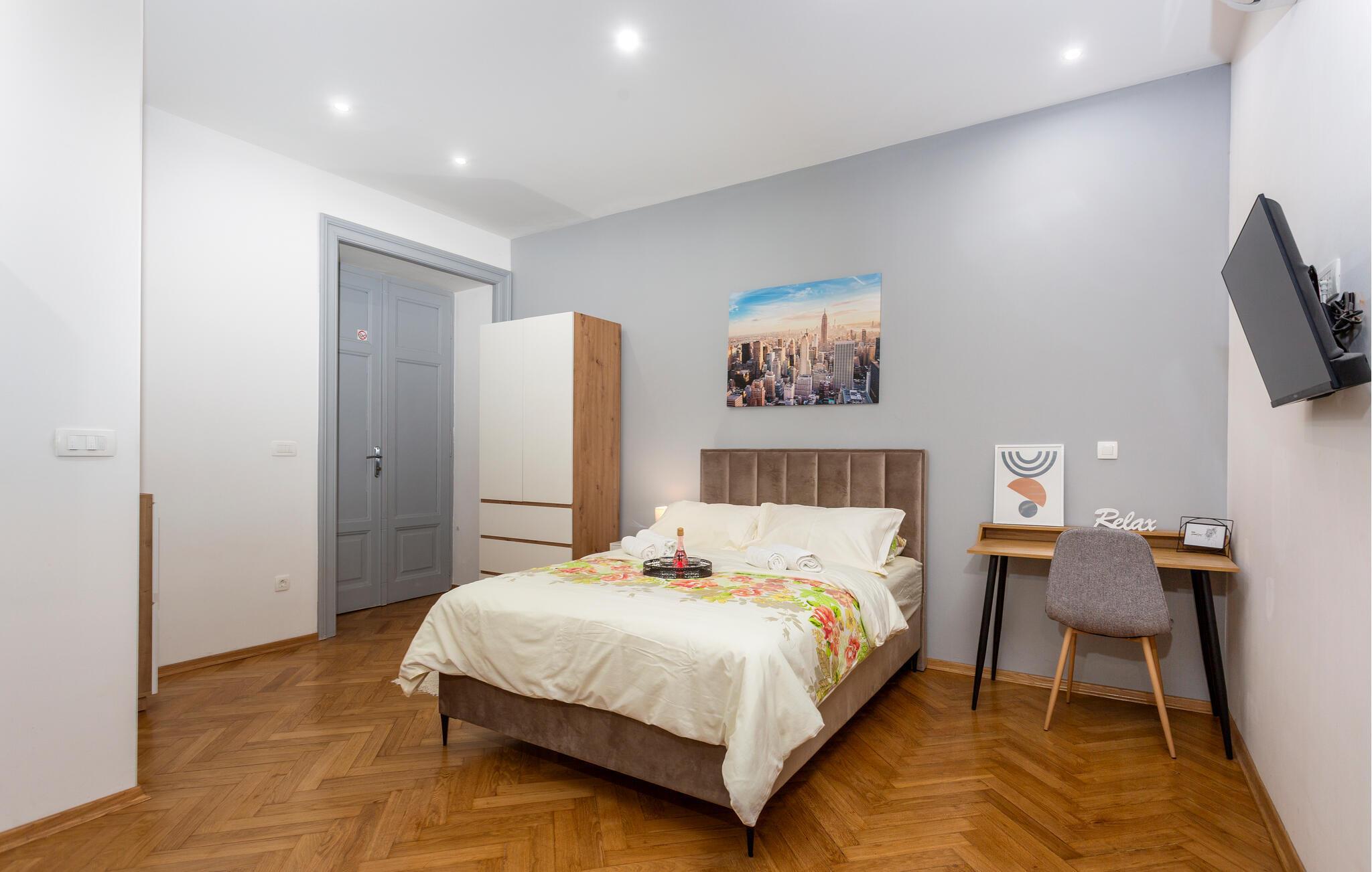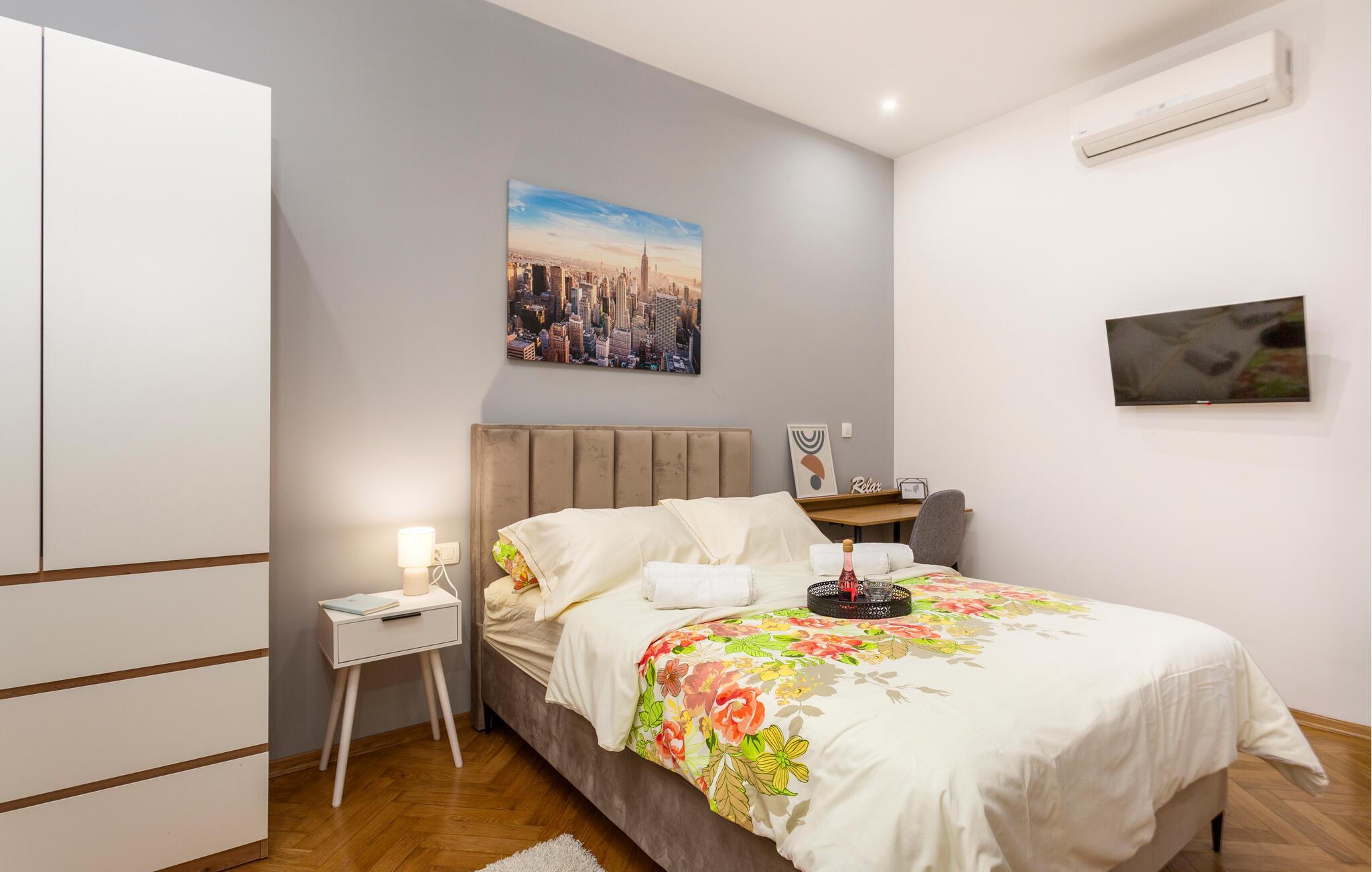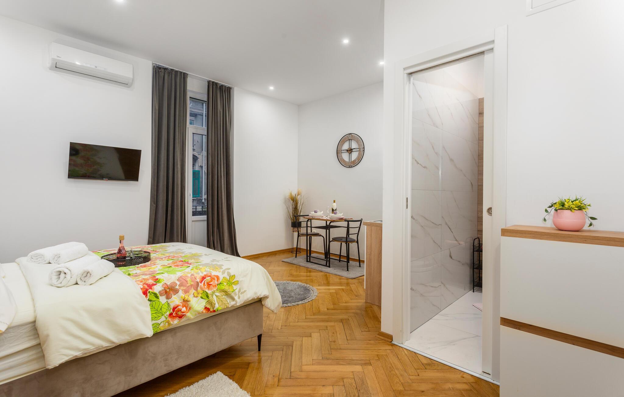 Denne smagfuldt indrettede etværelseslejlighed tilbyder jer et behageligt tilflugtssted, mens I udforsker den fortryllende havneby Rijeka. Begynd dagene med en solid morgenmad, tilberedt i det moderne tekøkken, og nyd jeres måltider i den charmerende spiseplads. Tilbring afslappende aftener med en god film og planlæg kommende udflugter med et glas vin.