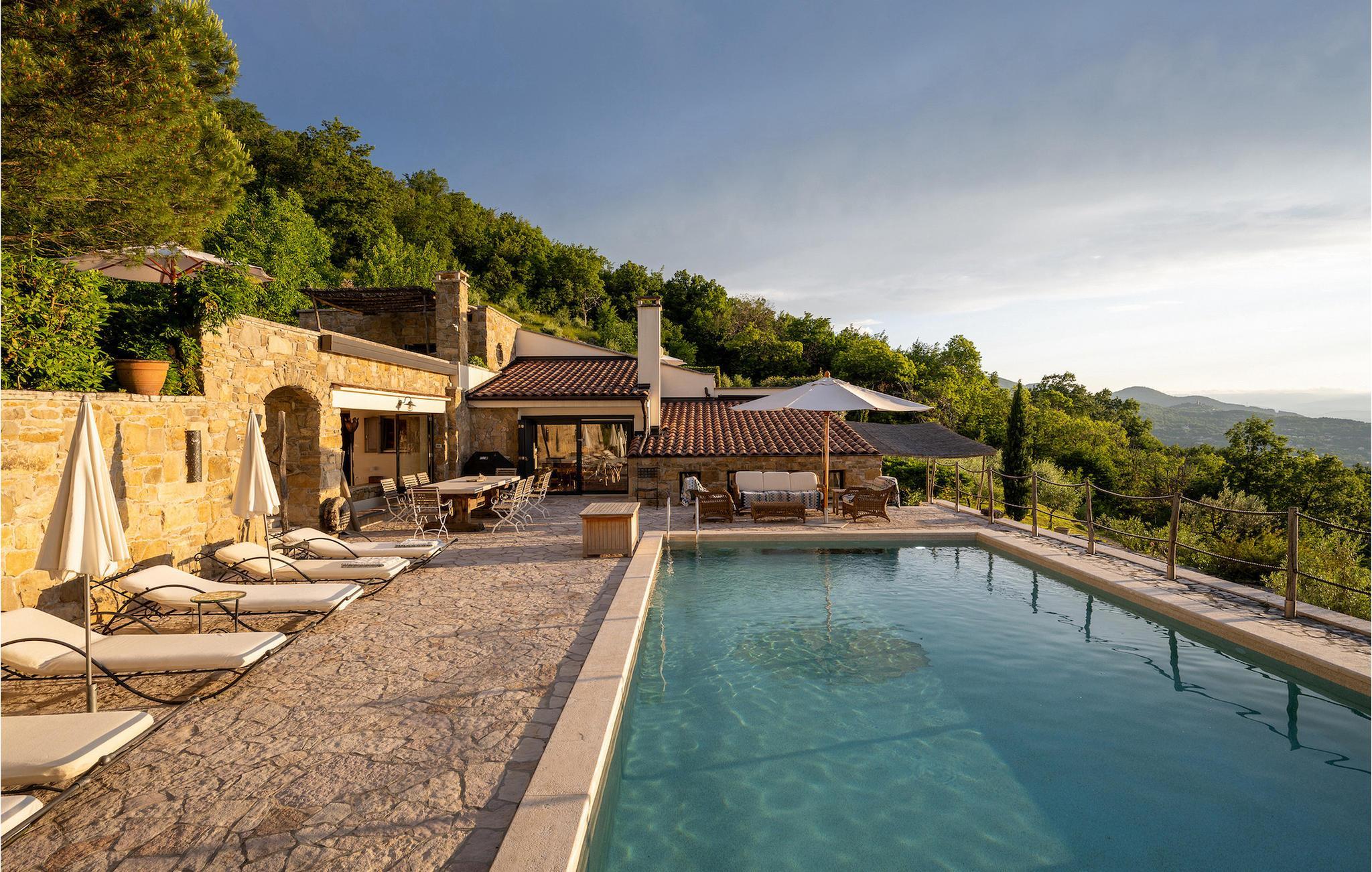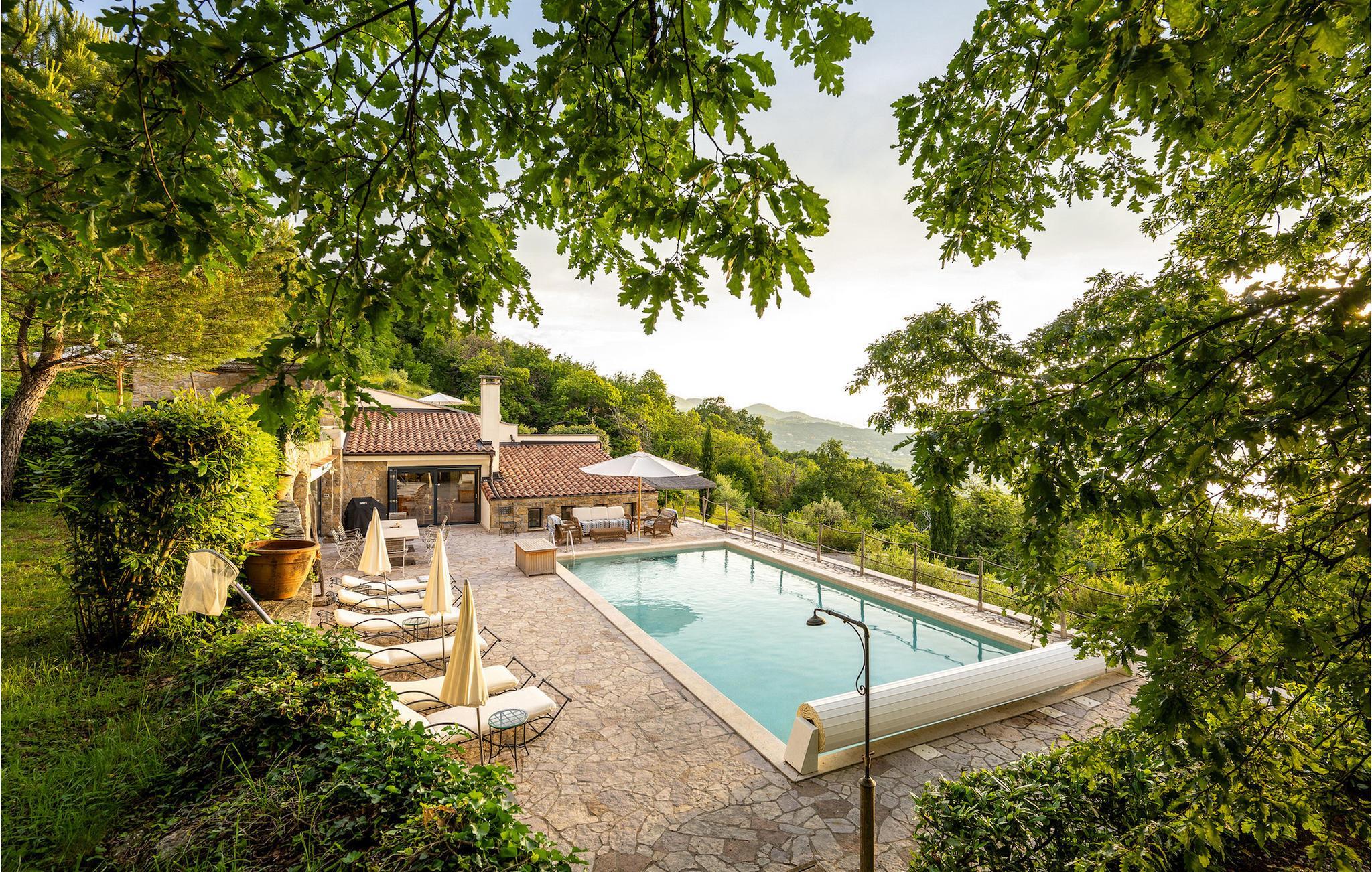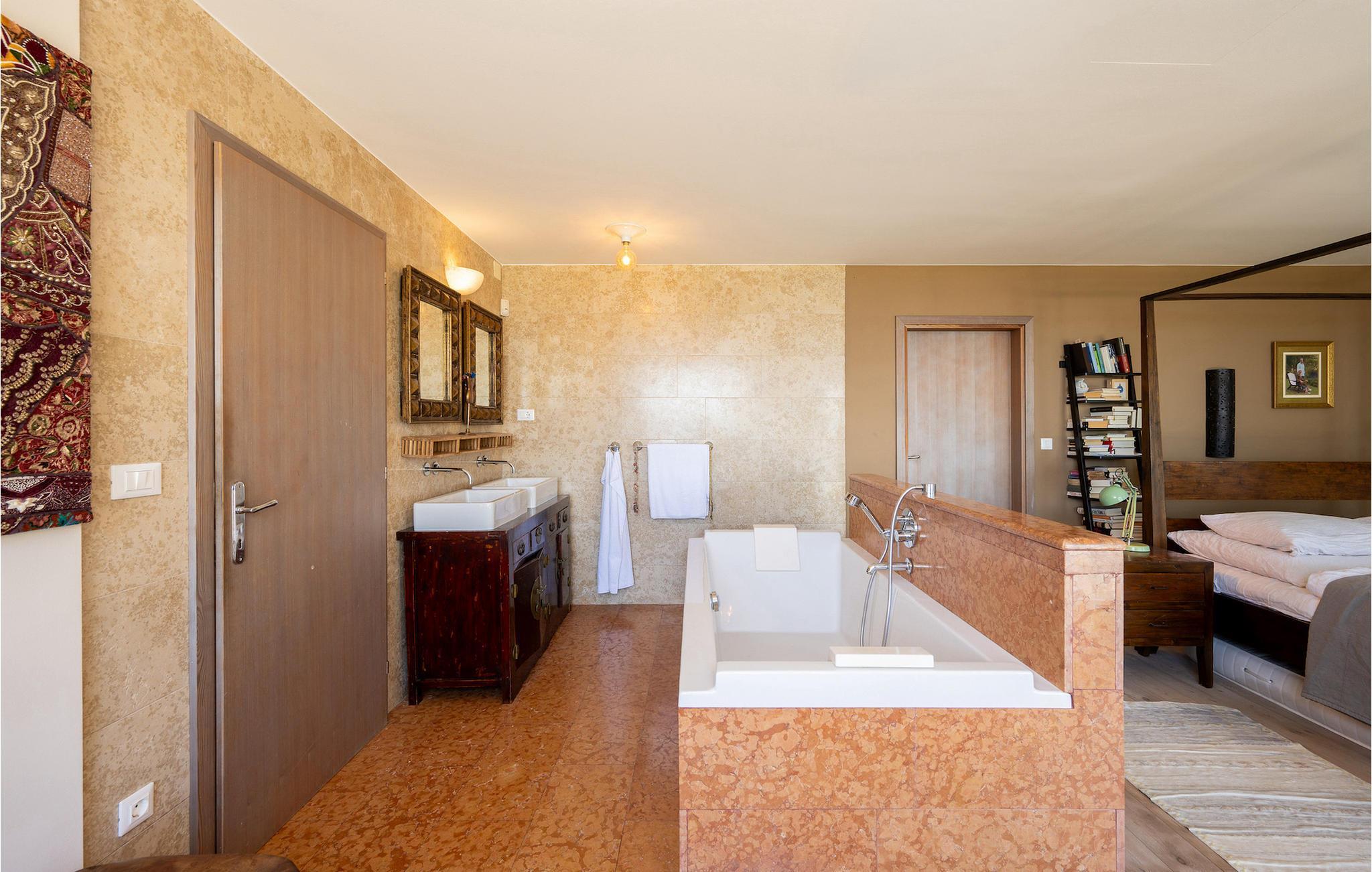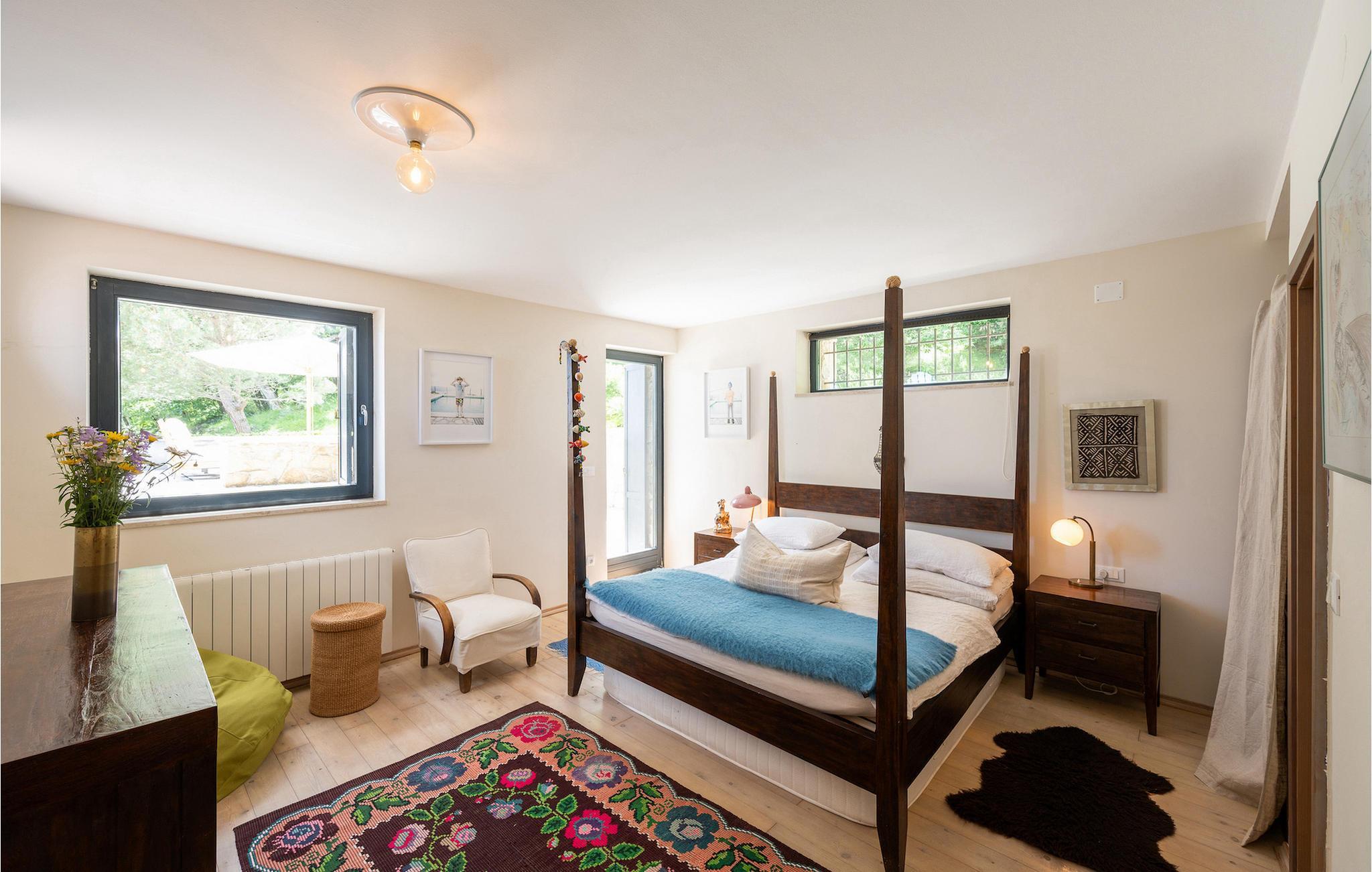 Villa Evelina Eselboeck byder dig velkommen med en idyllisk terrasse, omgivet af natur. Du kan nyde solen fra en af 8 liggestole eller svømme i den forfriskende pool. Ved siden af poolen er loungeområdet perfekt til at nyde kolde drinks, mens du beundrer havudsigten i dit eget lille stykke paradis. Et andet loungeområde tilbyder dig noget tiltrængt skygge efter en lang dag i solen og er perfekt til sjove komsammener sent om aftenen. Endelig er det tredje loungeområde forhøjet og byder på udsigt over både poolen og havet. Ved siden af villaen kan du bruge grillen til at lave et lækkert måltid, og derefter nyde det ved spisebordet til op til 10 personer. Dine børn vil nyde at løbe rundt i den smukke have eller skiftes på gyngen. I stueetagen finder du et komfortabelt dobbeltværelse med eget badeværelse og terrasse. Stuen med TV og pejs og det fuldt udstyrede køkken er på første sal. Her finder du også det andet spisebord til op til 12 personer og udgang til haven. Tre mere komfortable dobbeltværelser er forberedt til dig på denne etage. Hver enkelt har sit eget badeværelse, og et af dem har et badekar med udsigt over havet til det mest afslappende boblebad, du nogensinde har haft. Villa Evelina Eselboeck er den fredfyldte del af himlen, du har brug for til en idyllisk, afslappende ferie, der vil få dig til at glemme bekymringerne i dit travle liv. Villa Evelina Eselboeck ligger i landsbyen Lovran, kun 2 km fra stranden. Den nærmeste restaurant, café og butik ligger inden for 1,1 km derfra. For naturelskere kan du besøge naturparken Ucka, et beskyttet område med vandreruter, der fører til kløfter, vandfald og historiske steder. Villaen ligger tæt på "Adriaterhavets Perle", byen Opatija. For en afslappende spadseretur langs kysten kan du ikke gå glip af Lungomare-promenaden. Mens du går, kan du beundre den fantastiske udsigt over byen og de nærliggende øer , er det det perfekte sted at udforske Opatijas naturlige seværdigheder. Villa Angiolina fra 1800-tallet ligger i en have med eksotiske planter og er hjemsted for det kroatiske turismemuseum. Det samler, undersøger og viser genstande og historier, der repræsenterer den rige historie af turisme i Kroatien. Lidt længere kan du tilbringe en dag i Rijeka. Udforsk Trsat-slottet og nyd et måltid i gårdhaven, som er blevet omdannet til en restaurant. For en mere moderne aktivitet, hvorfor ikke gå og se en udstilling på Museum of Modern and Contemporary Art eller Computer Museum. Temperaturen i den opvarmede swimmingpool er afhængig af eksterne faktorer, herunder vejrforhold, og som sådan kan temperaturen på vandet ikke garanteres.