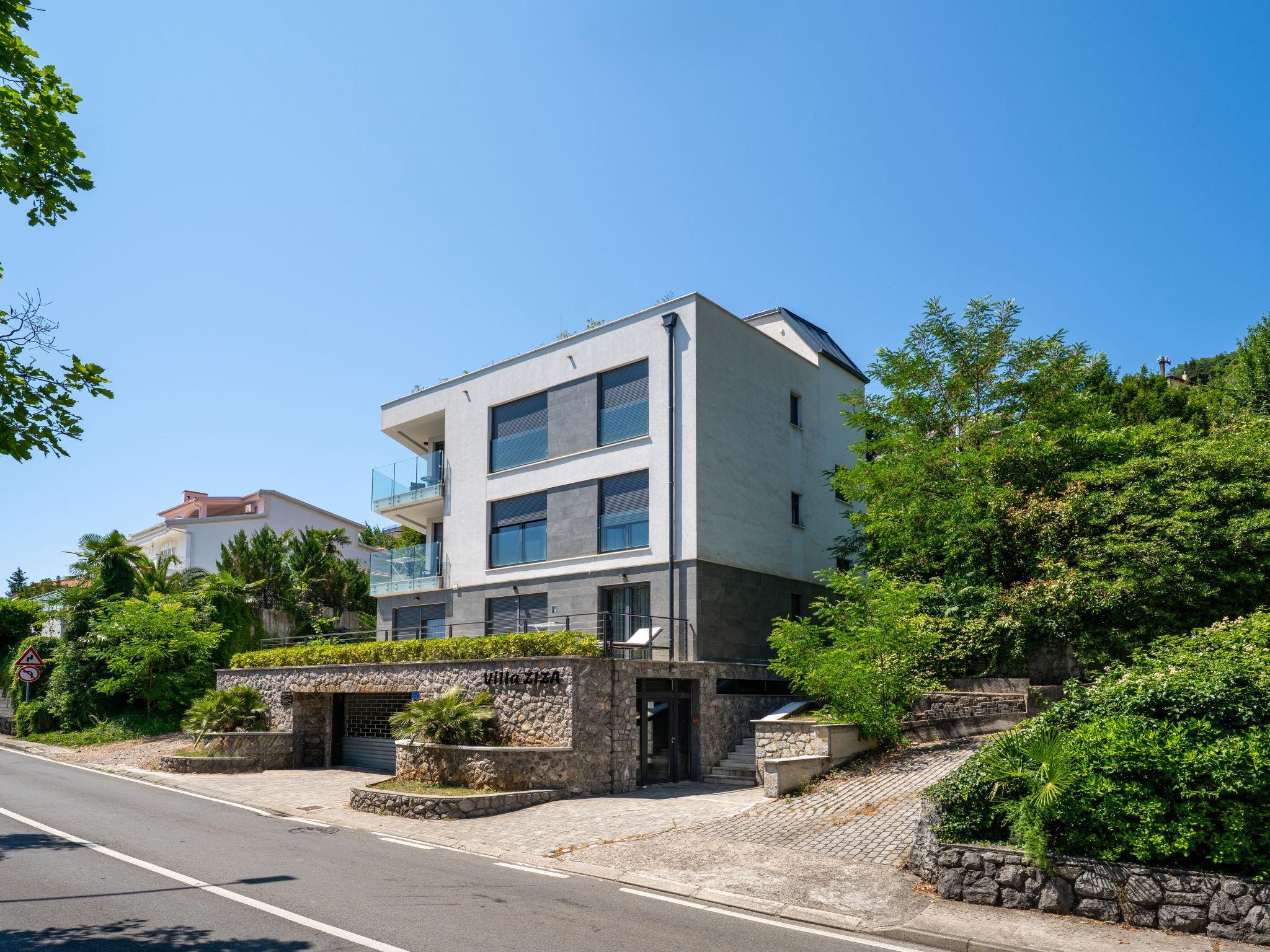 Modern, cosy apartment house "Villa Ziza". 250 m from the centre of Opatija, 600 m from the sea, 600 m from the beach, located by a road. For shared use: property 900 m2 with plants, swimming pool (above ground) heated (5 x 5 m, depth 85 cm, seasonal availability: 01.Jan. - 31.Dec.). Unconventional pool shape. Outdoor shower. In the house: internet access, roof terrace. E-charging station. Supermarket, shopping centre 650 m, restaurant, café, bus stop 500 m, concrete beach 600 m. Walking paths from the house 100 m. Groups of teenagers on request only. The swimming pool is situated on the roof terrace (50 m2, garden furniture).