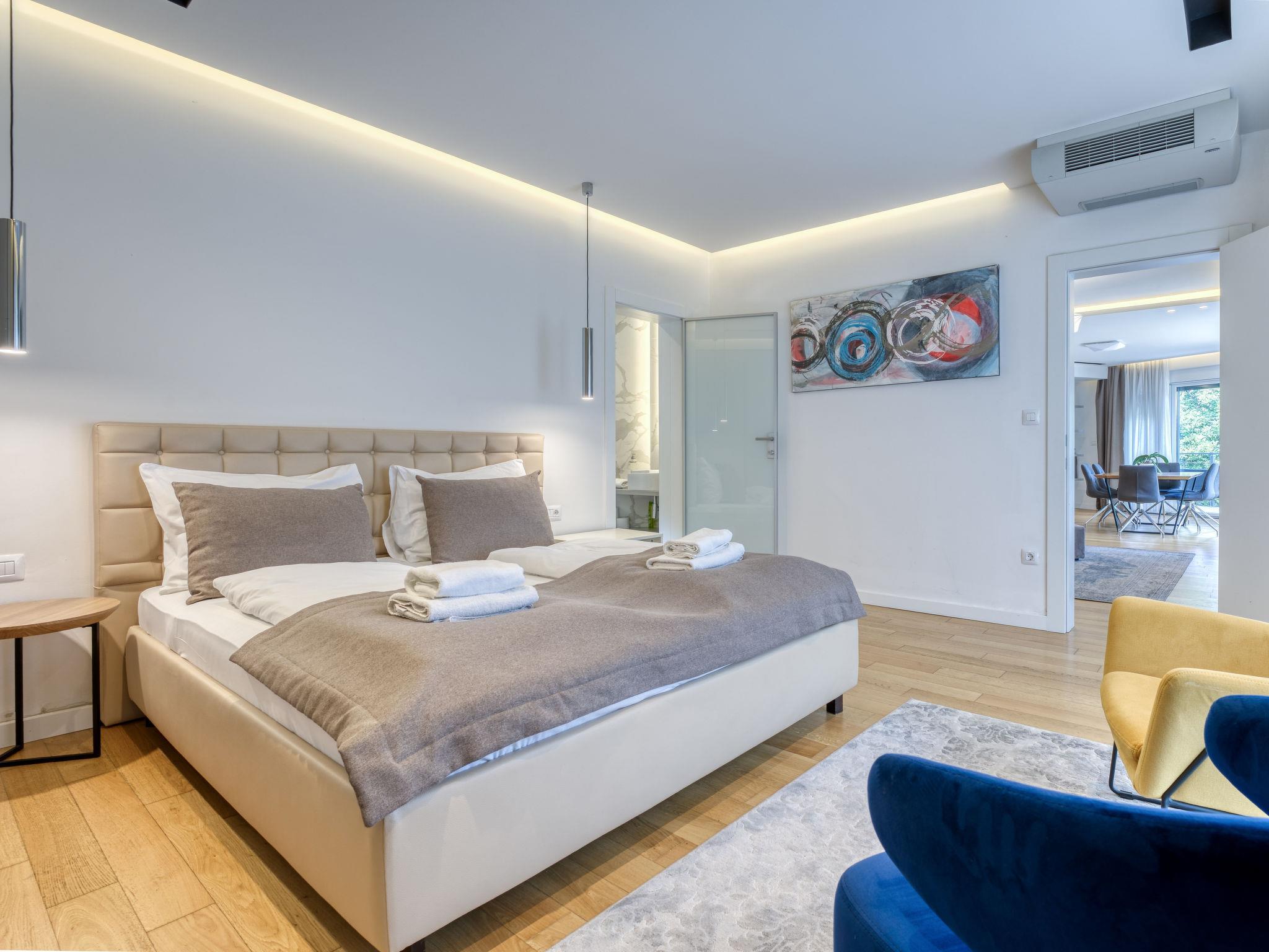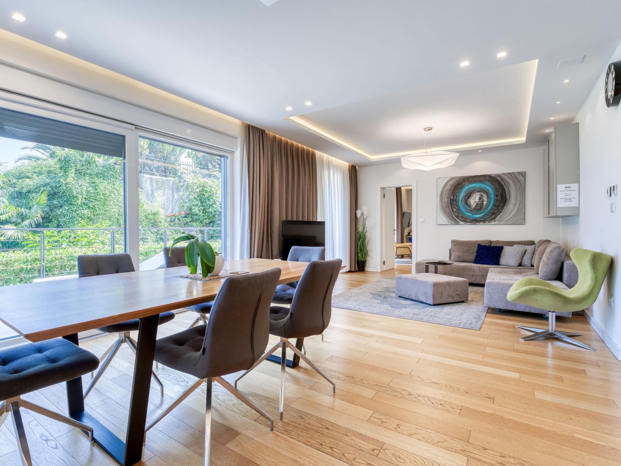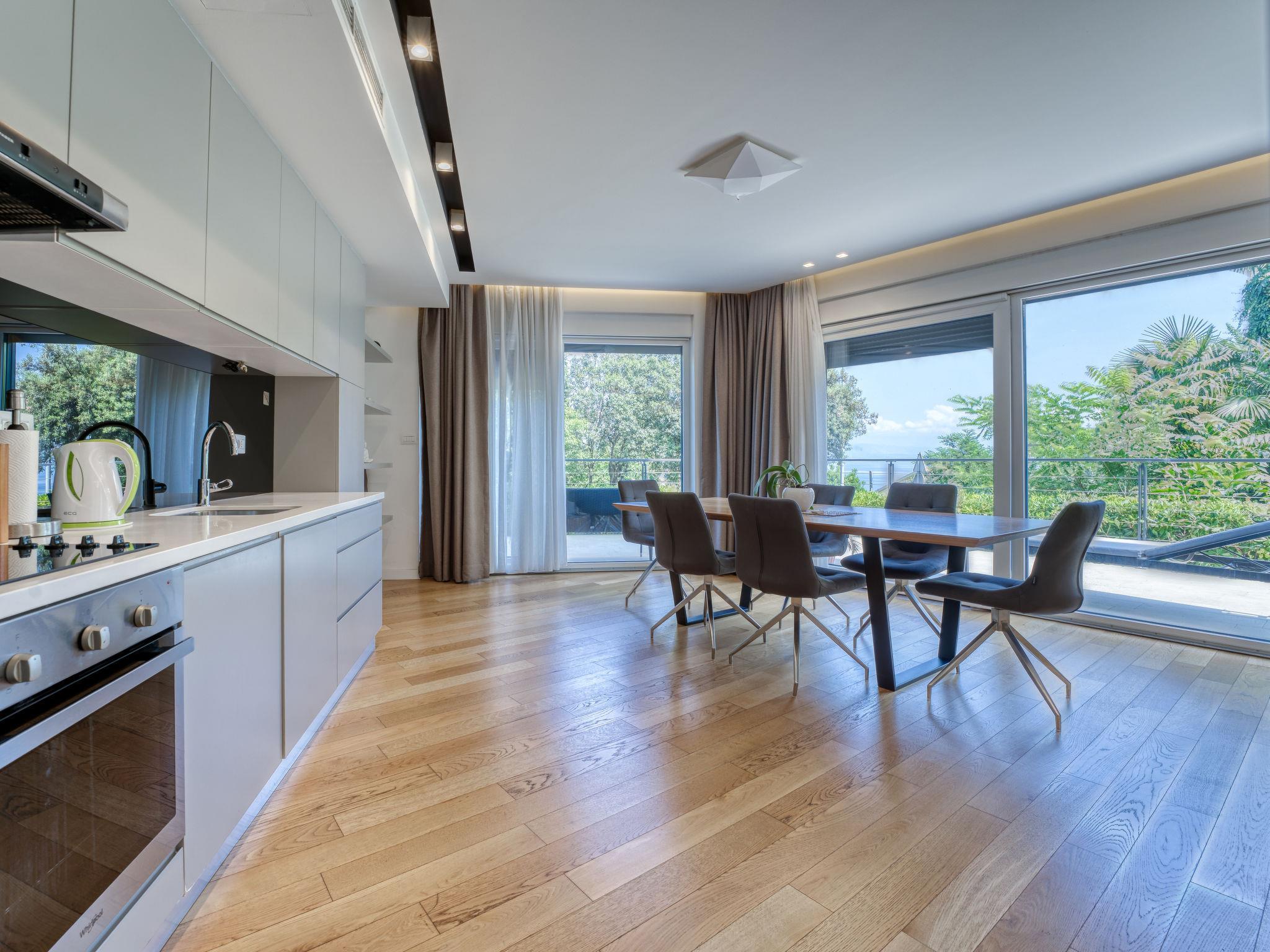 Modern, cosy apartment house "Villa Ziza". 250 m from the centre of Opatija, 600 m from the sea, 600 m from the beach, located by a road. For shared use: property 900 m2 with plants, swimming pool (above ground) heated (5 x 5 m, depth 85 cm, seasonal availability: 01.Jan. - 31.Dec.). Unconventional pool shape. Outdoor shower. In the house: internet access, roof terrace. E-charging station. Supermarket, shopping centre 650 m, restaurant, café, bus stop 500 m, concrete beach 600 m. Walking paths from the house 100 m. Groups of teenagers on request only. The swimming pool is situated on the roof terrace (50 m2, garden furniture).