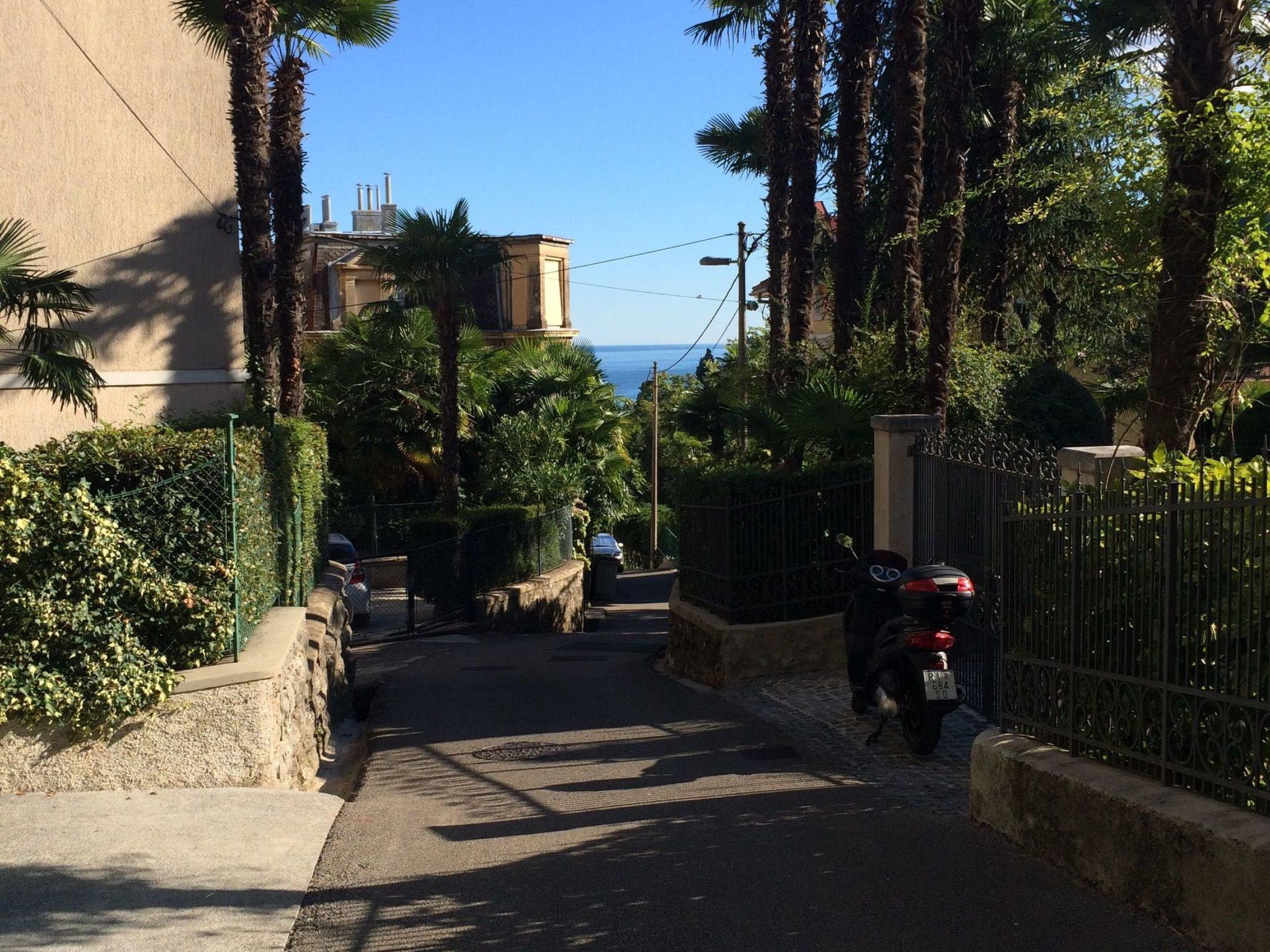 The holiday apartment is in a historical villa in a quiet and sunny location on a slope on a cul-de-sac in Opatija, just 50 metres from the beach and from the town centre.