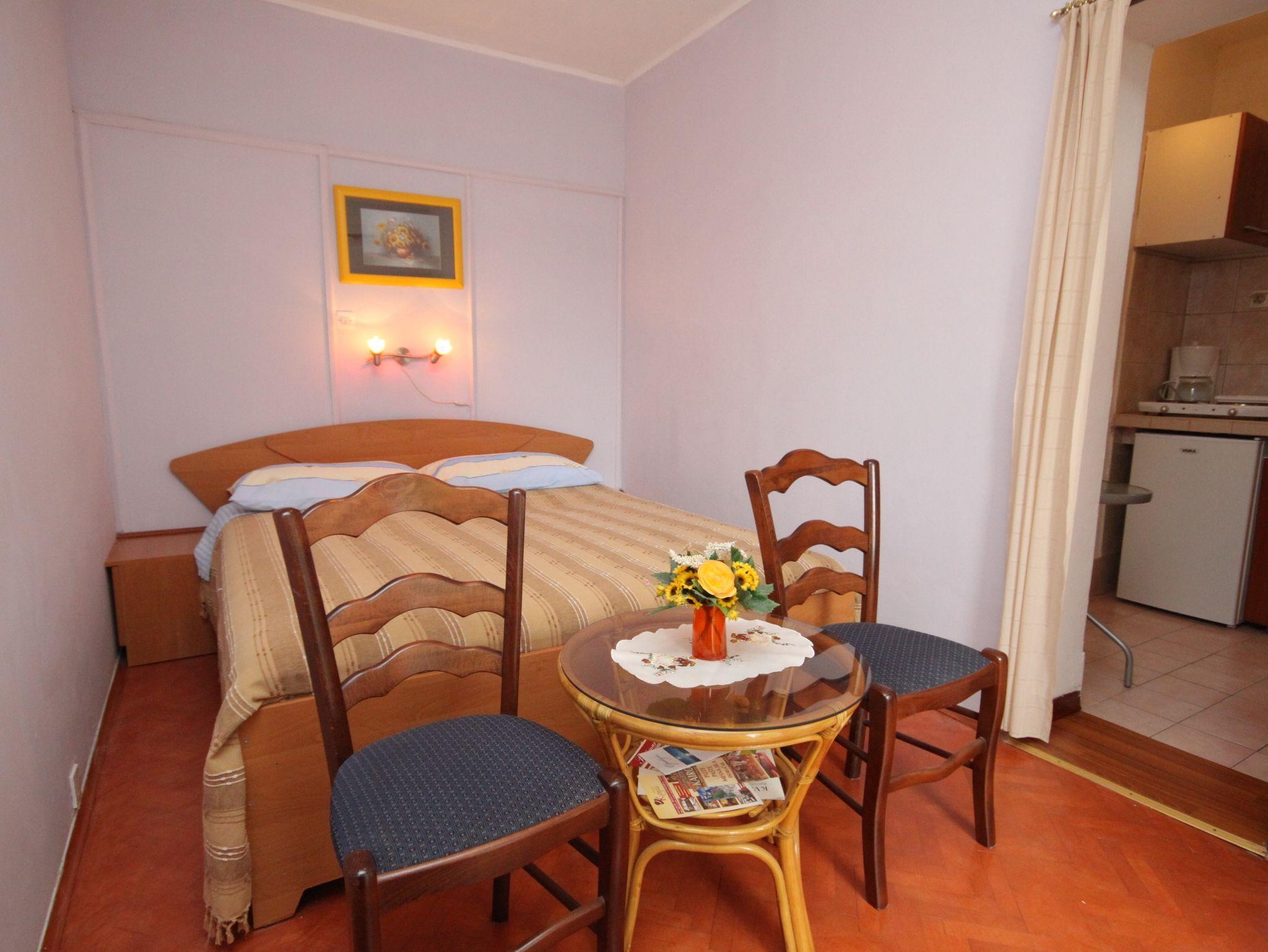 Studio bietet Platz für 2 Gäste. Die Betten sind in Schlafzimmern, die es 1 gibt, innerhalb einer Gesamtfläche von 17m2, angeordnet. Die Gäste haben eine eigene Terrasse zur Verfügung, auf der sie in warmen Sommernächten genießen können. Das Studio-Apartment bietet Meerblick. Es ist erlaubt, Speisen auf dem Gemeinschafts-Grill vorzubereiten. IM PREIS INBEGRIFFEN: Kurtaxe, Endreinigung, Parkplatz, Internet, Bügeleisen, Bügelbrett, Föhn. VERBINDLICHE ZUSÄTZLICHE KOSTEN: Aufzahlung für Kurzaufenthalte (prozentualer Zuschlag pro Nächtigungsanzahl: 30% - 1, 20% - 2, 10% - 3). UNVERBINDLICHE ZUSÄTZLICHE KOSTEN: Wäschewaschen (5,00 € Waschen). Die Verfügbarkeit zusätzlicher Dienstleistungen in Ihrem reservierten Termin und die Preise derselben (falls nicht aufgeführt) müssen im Voraus überprüft werden. Zusätzliche Dienstleistungen die in der Zahlungsaufforderung nicht aufgeführt sind werden direkt beim Vermieter bezahlt, angenommen der Gast nutzt auch diese.
