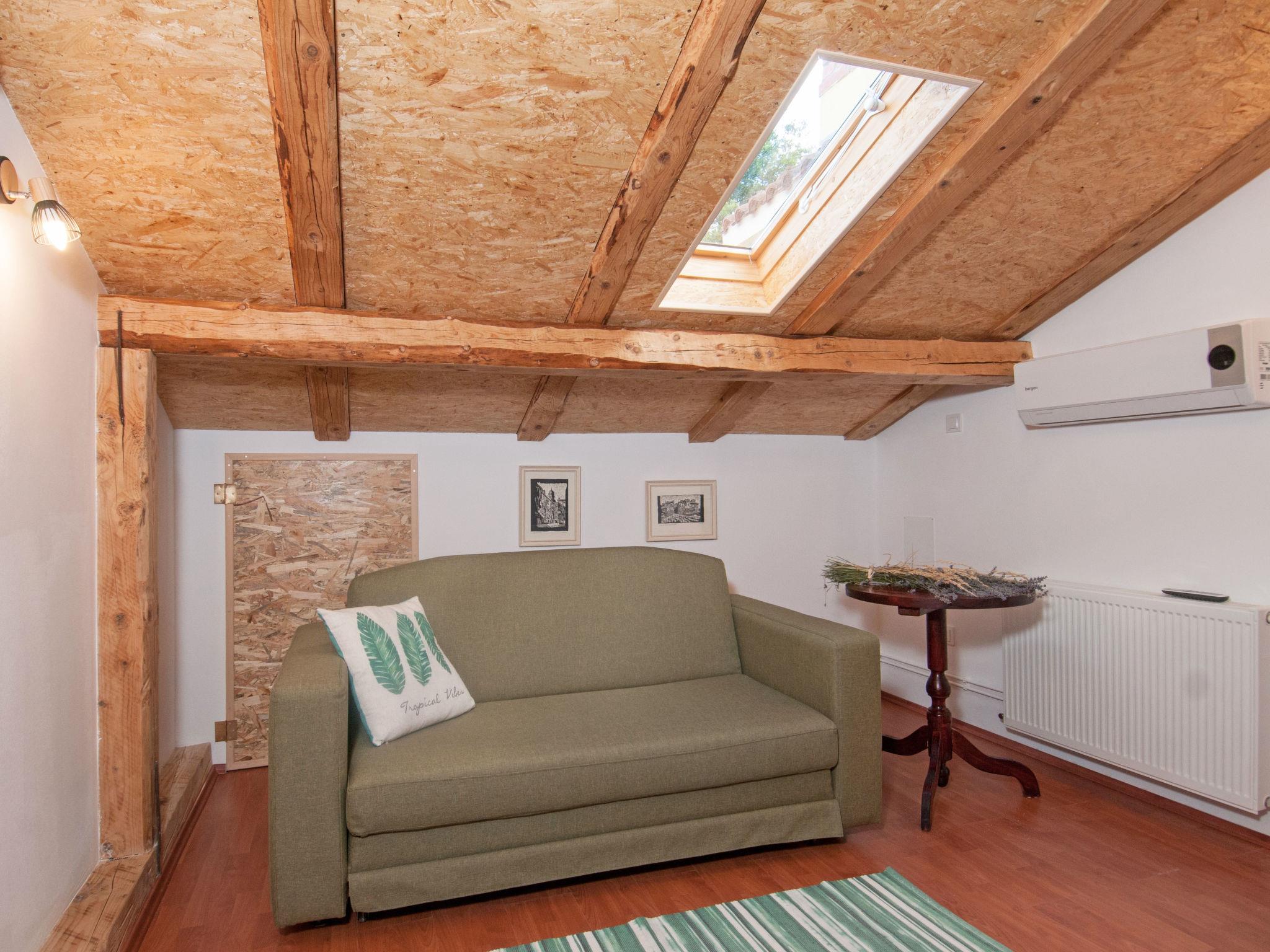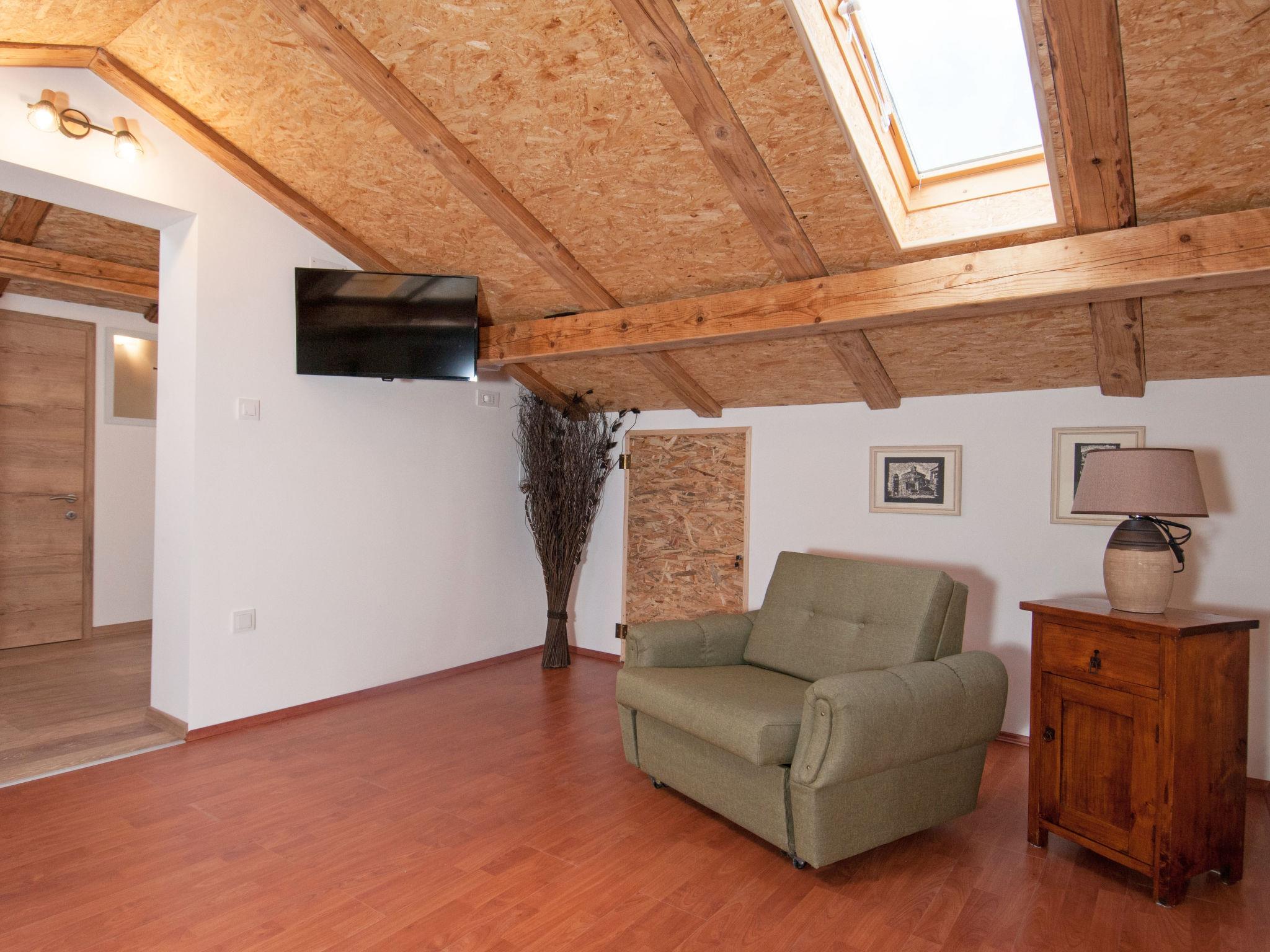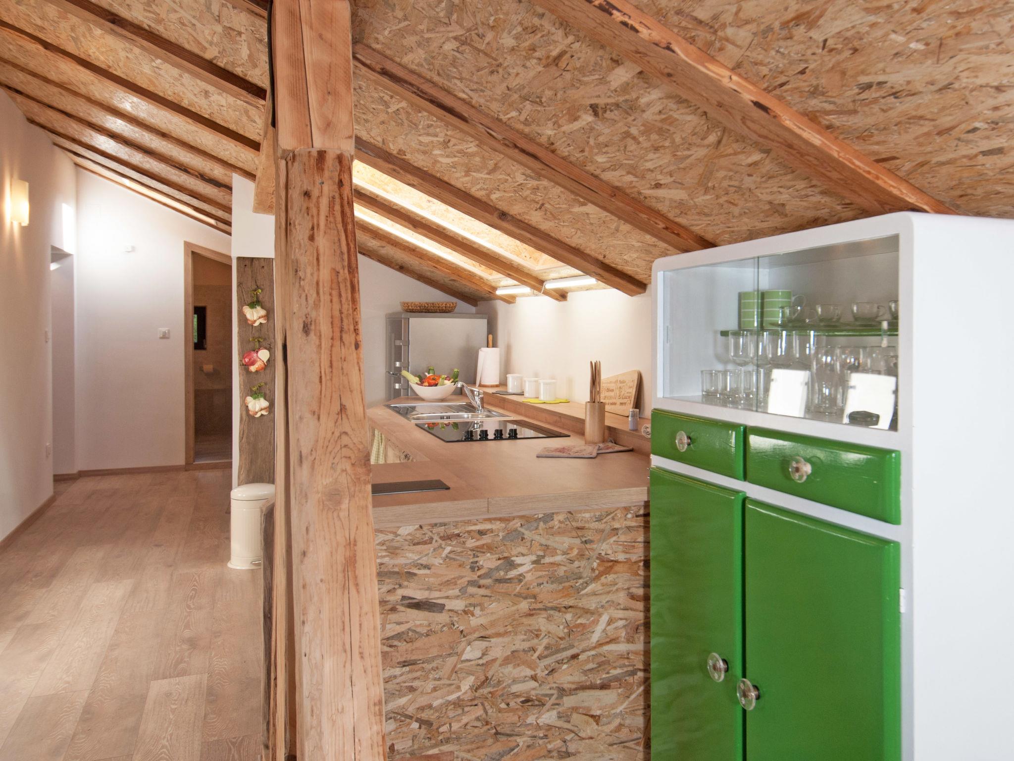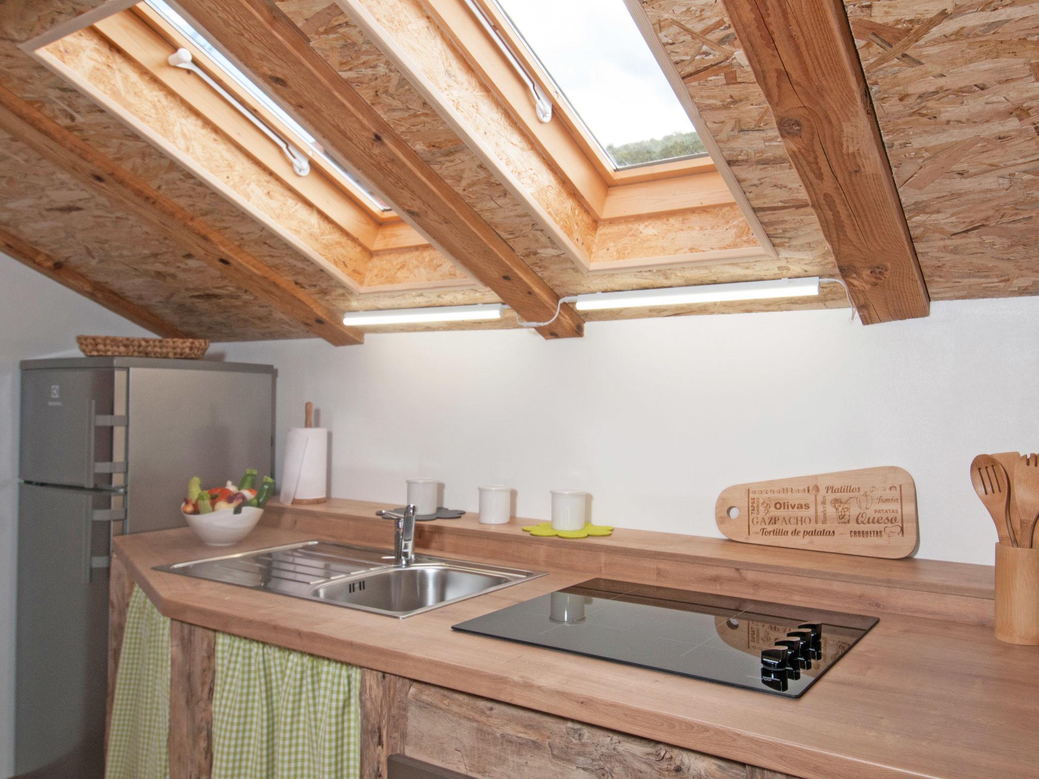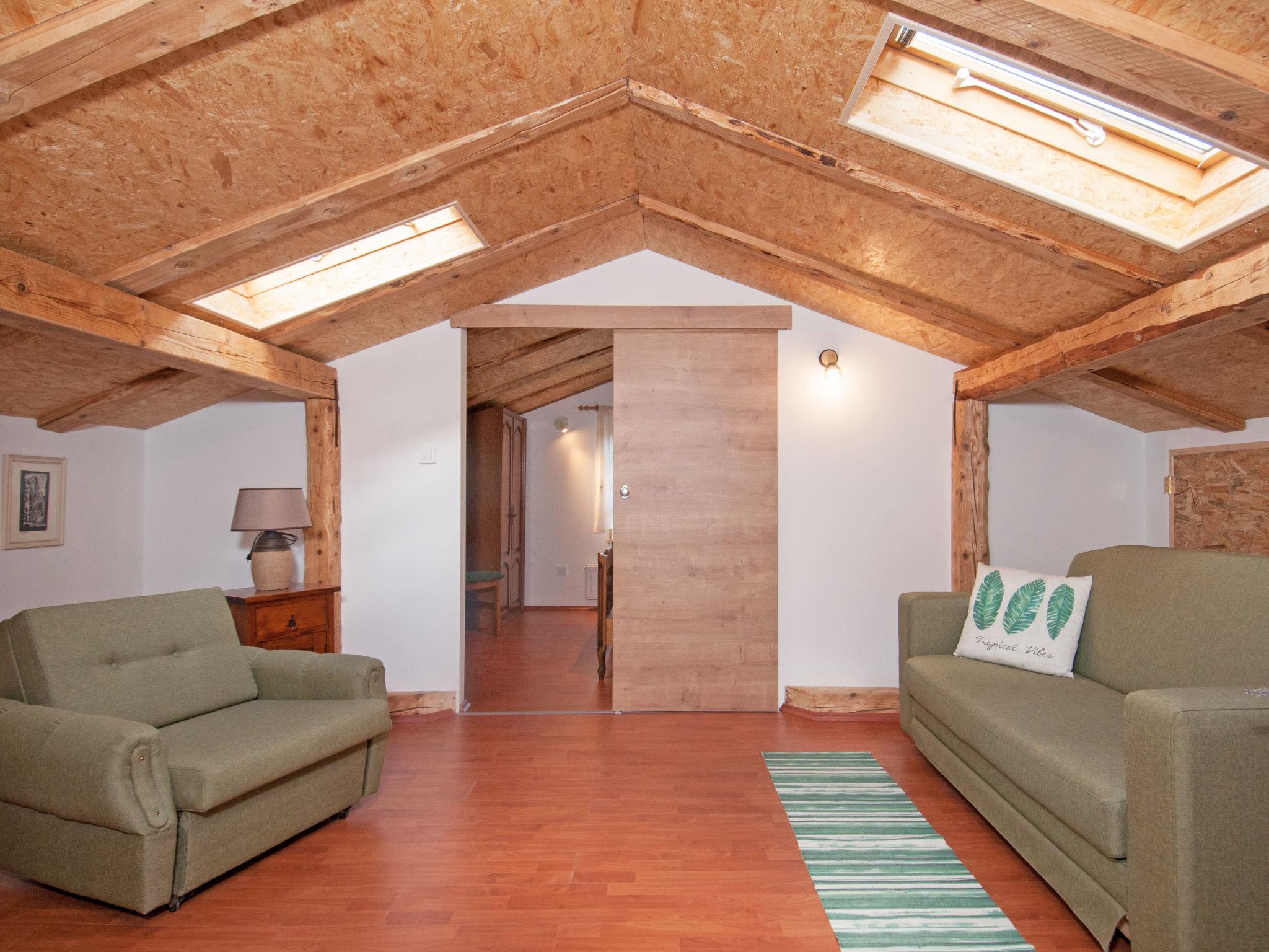 2-room apartment 70 m2, on the top floor. Living/dining room 50 m2, with sloping ceilings, ceiling height 135 - 230 cm with rooflight with 1 double sofabed (140 cm, length 200 cm), satellite TV (flat screen), air conditioning. Exit to the terrace. 1 room with sloping ceilings, ceiling height 135 - 230 cm with 1 double bed (2 x 90 cm, length 200 cm). With sloping ceilings, open kitchen (oven, 4 ceramic glass hob hotplates, freezer, electric coffee machine), ceiling height 150 - 270 cm. Shower/WC. Heating (extra). Terrace 7 m2. Terrace furniture, barbecue (portable), deck chairs. View of the countryside. Facilities: washing machine, safe, baby cot, hair dryer. Internet (WiFi, free). Please note: non-smoking house. Maximum 1 pet/ dog allowed. Private entrance.