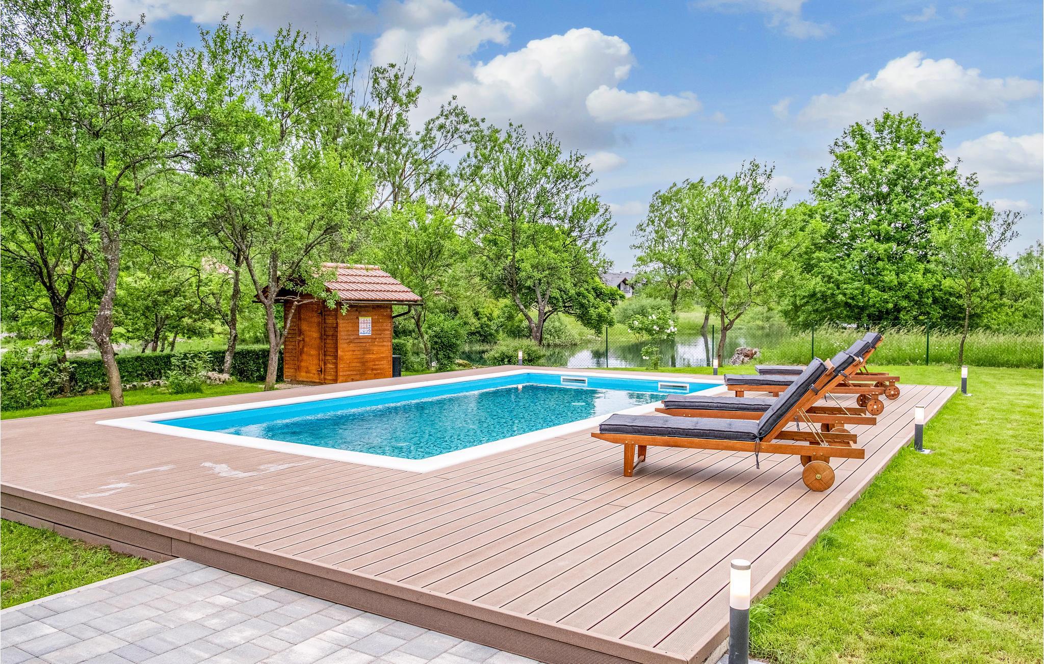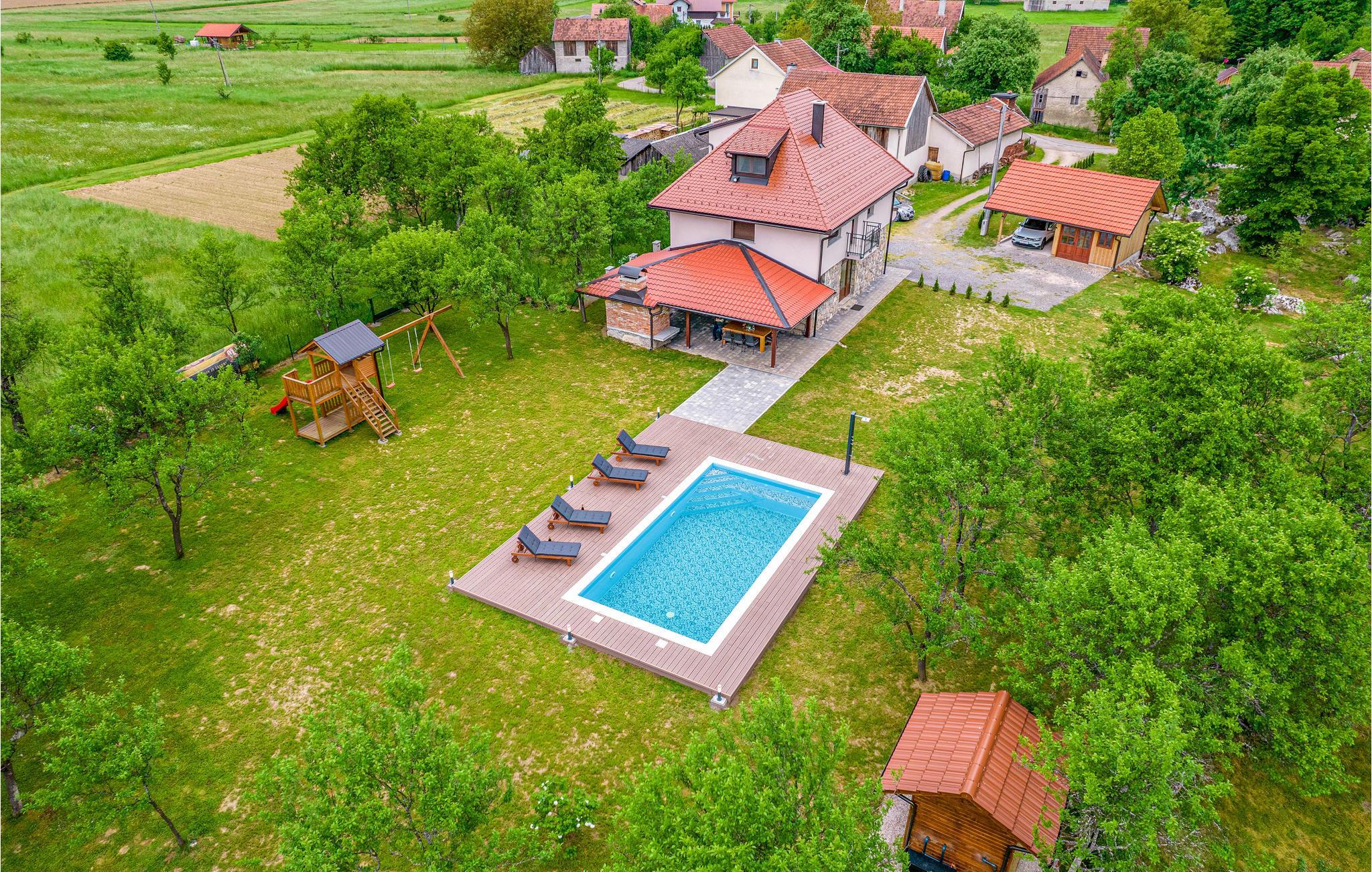 Ikke langt fra centrum af Otocac ligger dette smukke hus ved floden Gacka med en privat strand ved floden. Det moderne og rummelige hus er ideelt til en eller to familier. Det komplette udstyr giver jer mulighed for at nyde en ubekymret ferie. Lad børnene lege på legeredskaberne, ved åen og på den store grønne grund, mens I slapper af på liggestolene med udsigt over det fortryllende landskab. Om aftenen kalder I til en lækker grillmiddag fra stengrillen, som I kan nyde på den overdækkede terrasse.