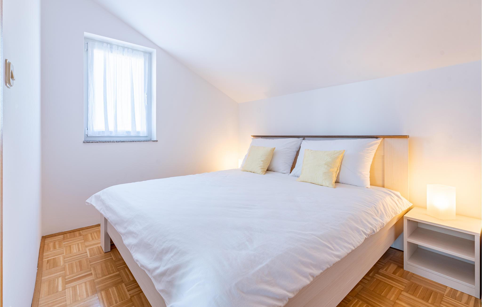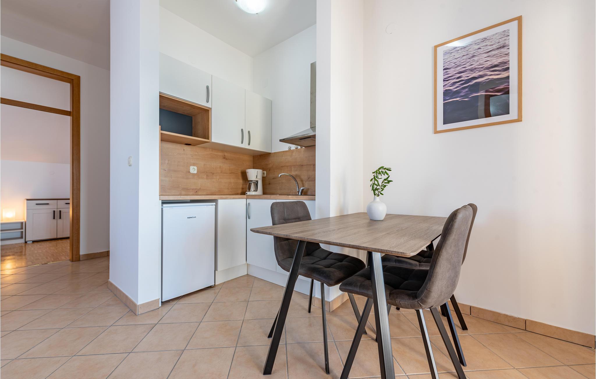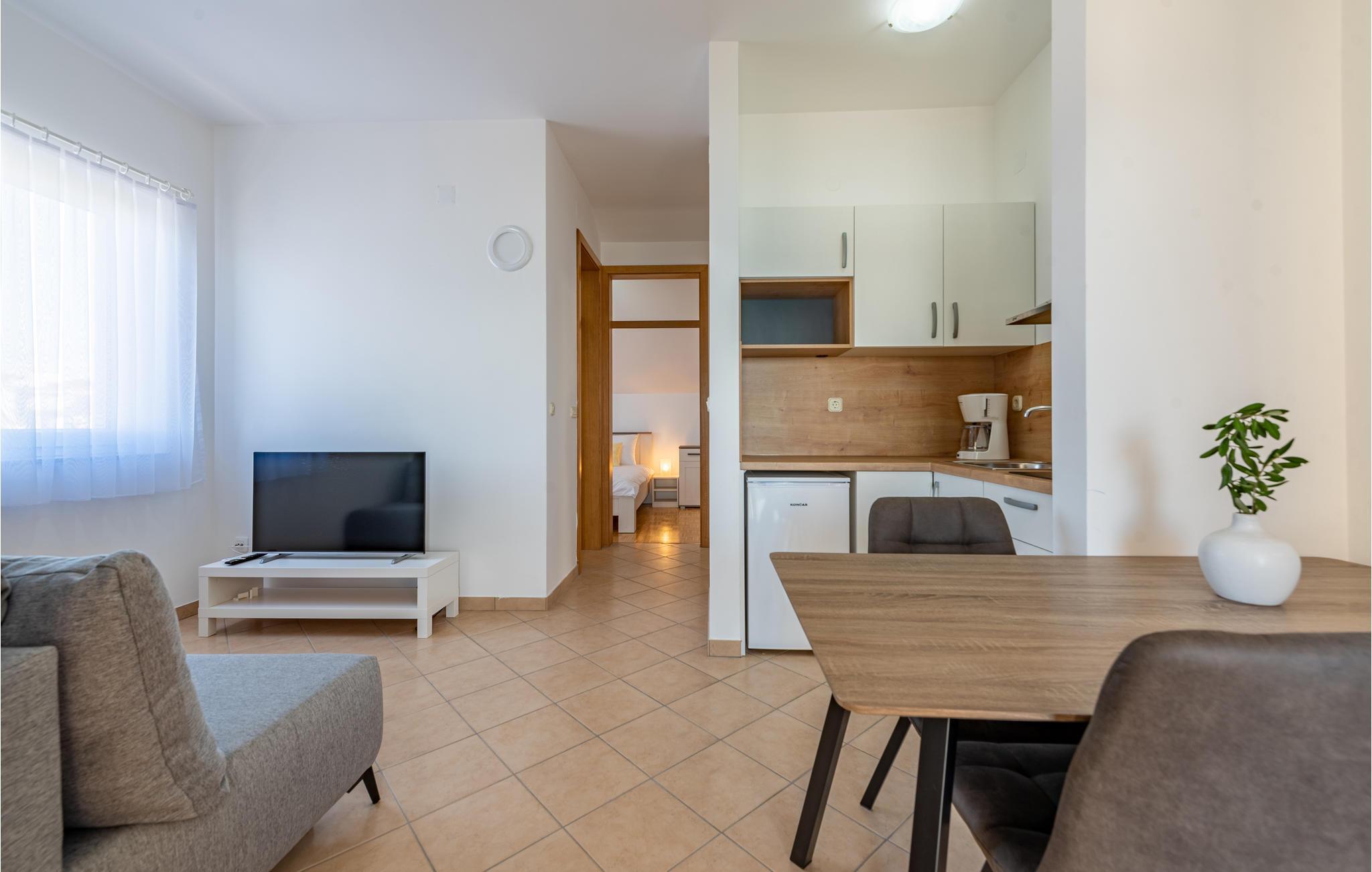 Denne skønne ferielejlighed er placeret i en moderne etageejendom. Her rykker I ind i en bolig, som emmer af stilfuld minimalisme og giver jer optimale rammer til at slappe af efter jeres ture rundt på øen Pag. I kan tilbringe aftenerne på den skyggefulde balkon og se de smukke solnedgange over havet. Her er der alt det, I skal bruge for at slappe af og have det rart, og I har desuden adgang til et fælles, lukket lokale, som I deler med husets øvrige gæster til socialt samvær og grillaftener.