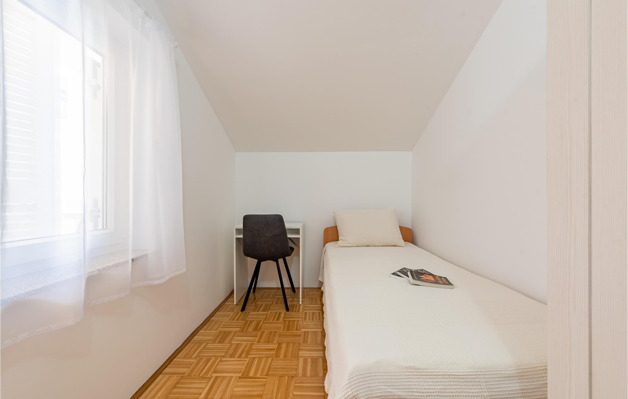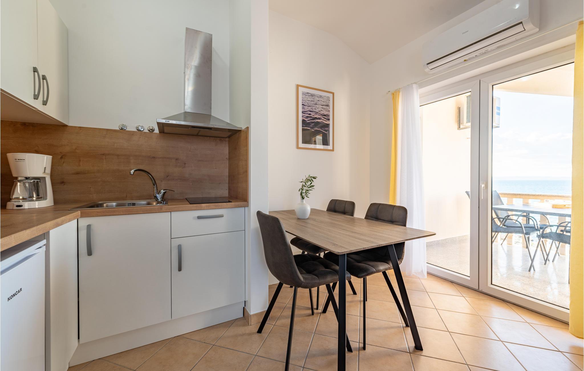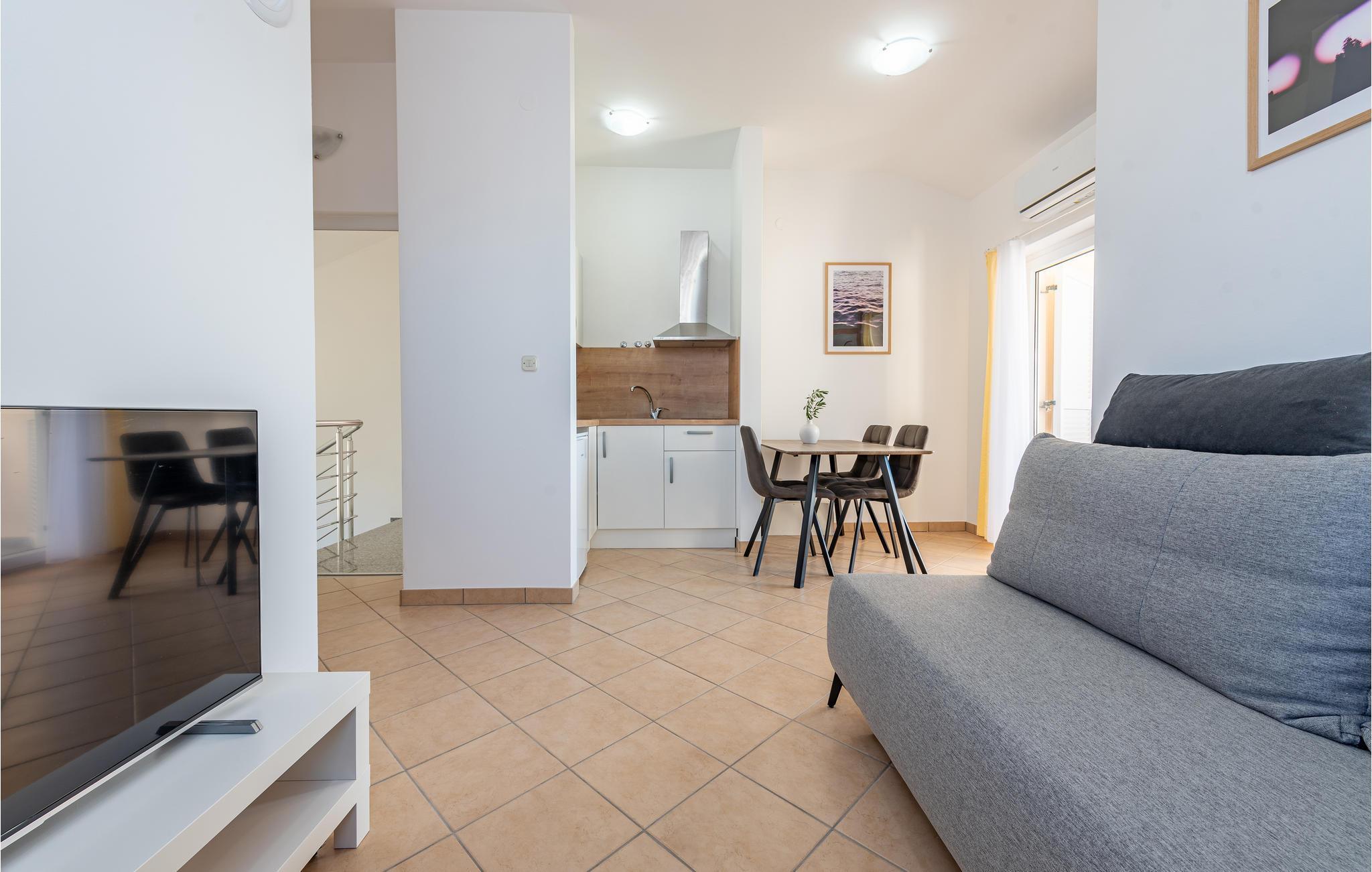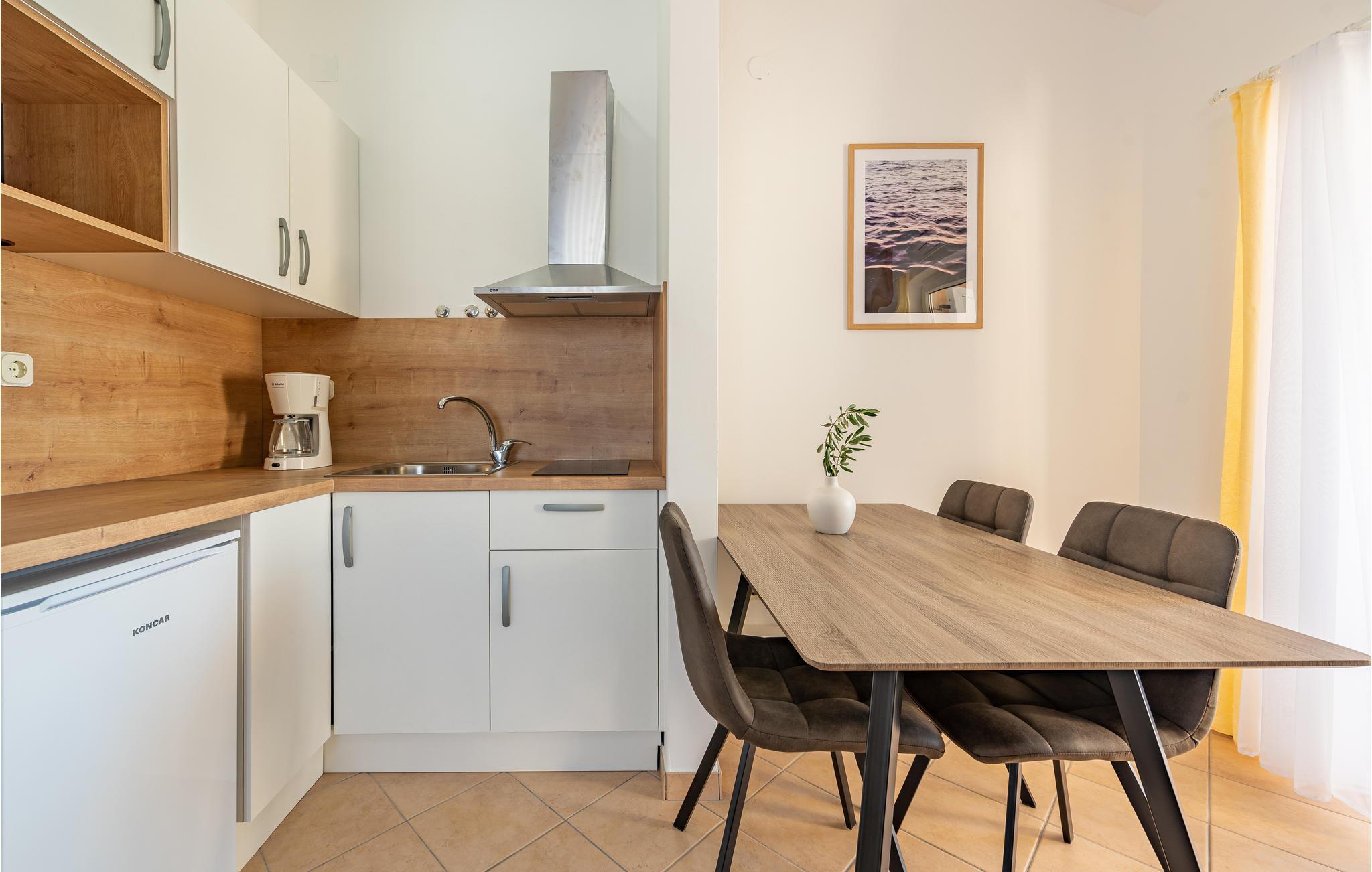 Denne skønne ferielejlighed er placeret i en moderne etageejendom. Her rykker I ind i en bolig, som emmer af stilfuld minimalisme og giver jer optimale rammer til at slappe af efter jeres ture rundt på øen Pag. I kan tilbringe aftenerne på den skyggefulde balkon og se de smukke solnedgange over havet. Her er der alt det, I skal bruge for at slappe af og have det rart, og I har desuden adgang til et fælles, lukket lokale, som I deler med husets øvrige gæster til socialt samvær og grillaftener.