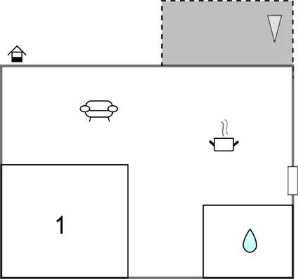 Opholdsstue/køkken 20m2 - 1 Soveplads. (Sofa, madras eller lignende).
