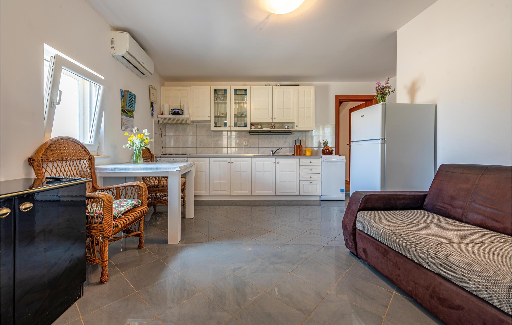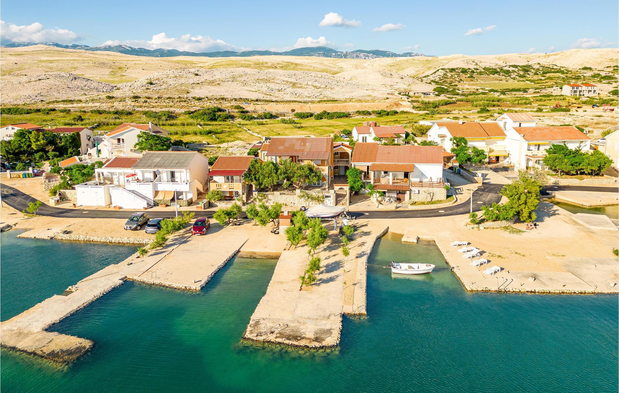 Nyd dette veludstyrede og venlige feriehus på øen Pag. Her kan I føle jer hjemme med familien og nyde soveværelserne med private badeværelser. Slap af fra jeres hektiske hverdag og drik jeres morgenkaffe på jeres overdækkede terrasse og planlæg jeres aktiviteter og ture. Om aftenen kan I tilberede lækre måltider på fællesgrillen og komme i snak med gæsterne i lejlighedshuset, som også ligger på ejendommen.