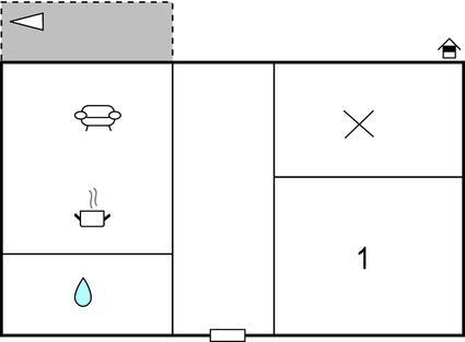 Opholdsstue/køkken 18m2 - 1 Soveplads. (Sofa, madras eller lignende).