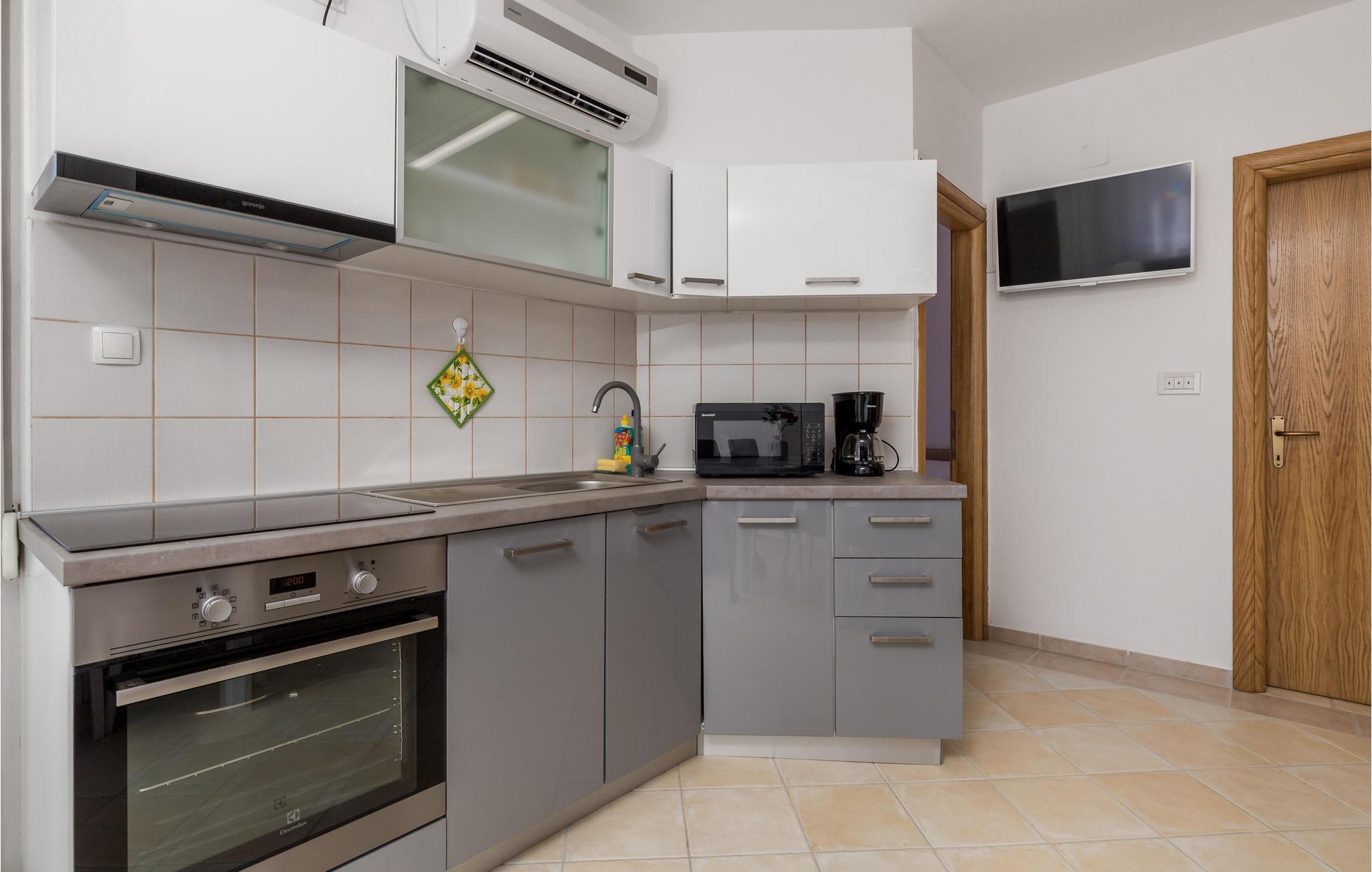 Tag familien med til dette dejlige feriehus for et behageligt ophold på den kroatiske ø Pag. Her kan I straks føle jer hjemme, da lejligheden er udstyret med alt hvad I behøver. Udnyt balkonen til at spise morgenmad i den friske luft, mens I nyder udsigten over havet, og planlægger dagens aktiviteter. Om aftenen kan I se solnedgangen over havet med et glas vin.