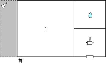 Badeværelse (nr. 1) - WC. Varmt og koldt vand. Bruser