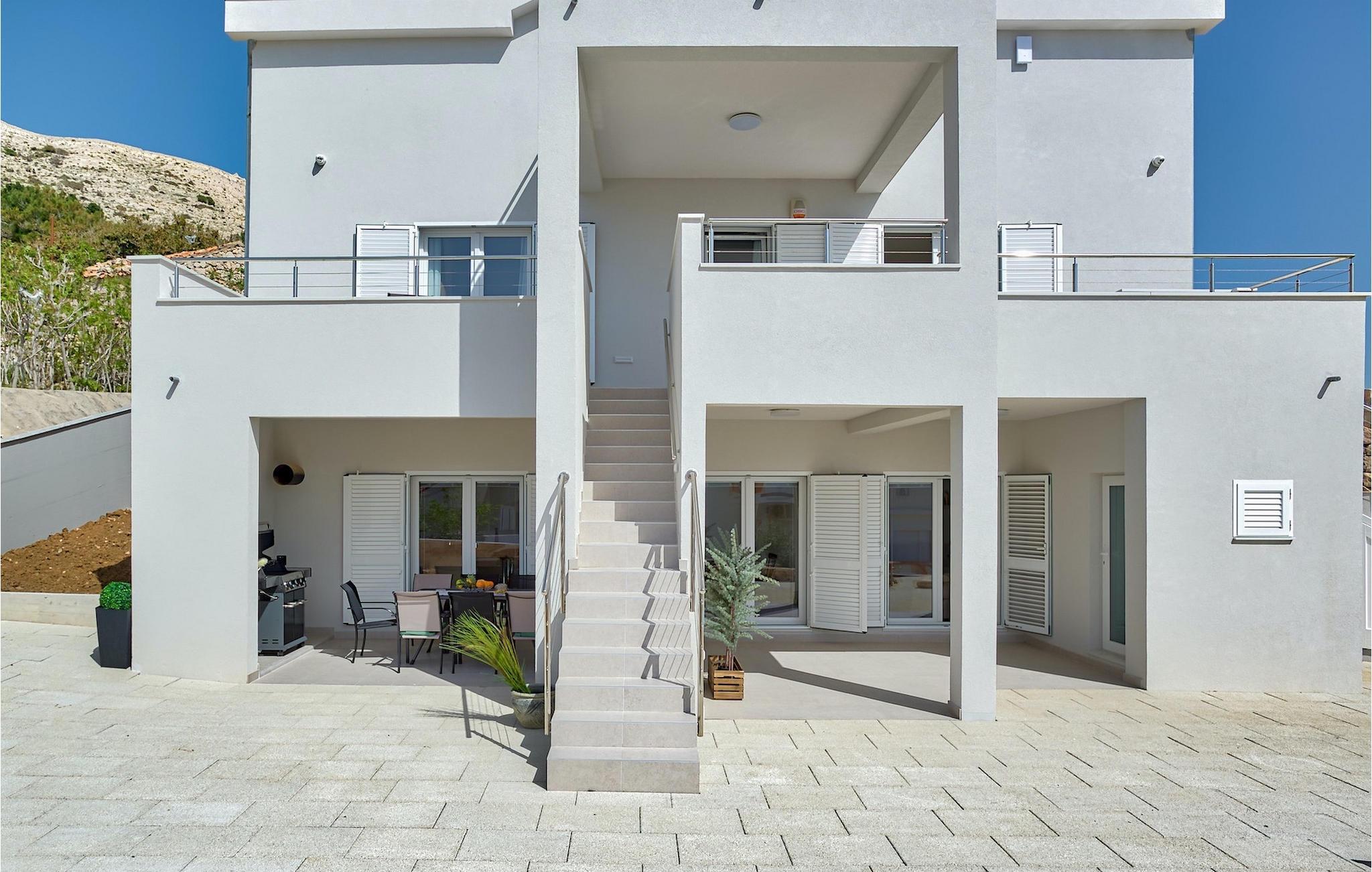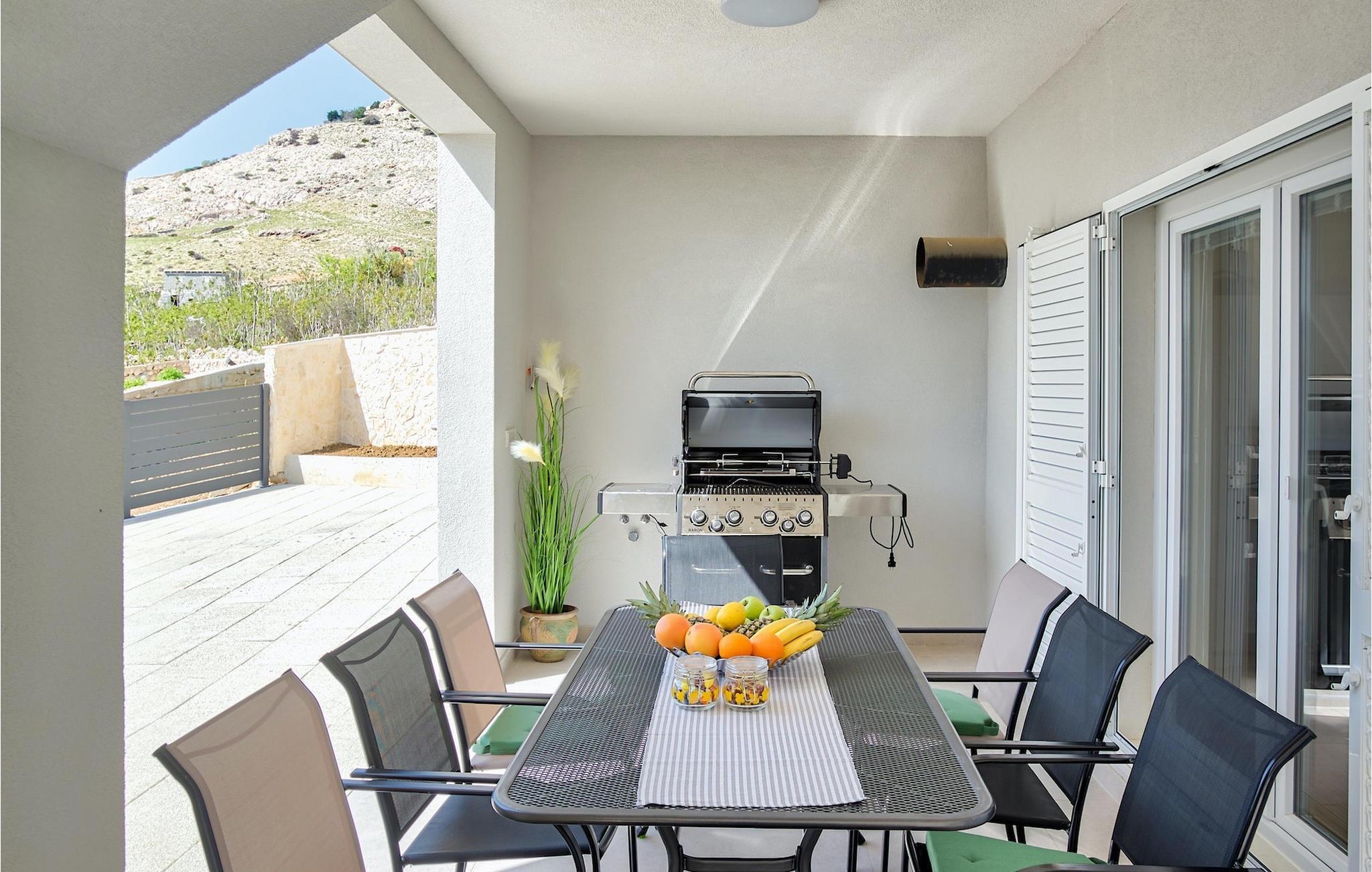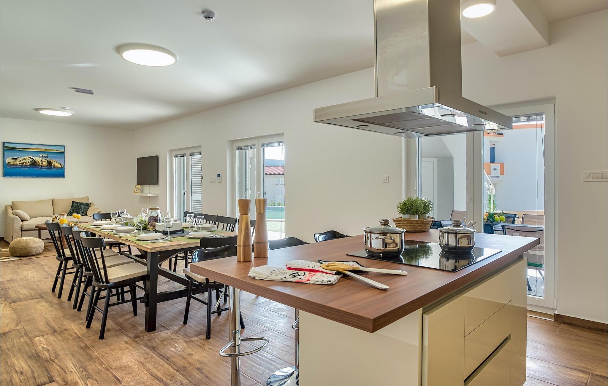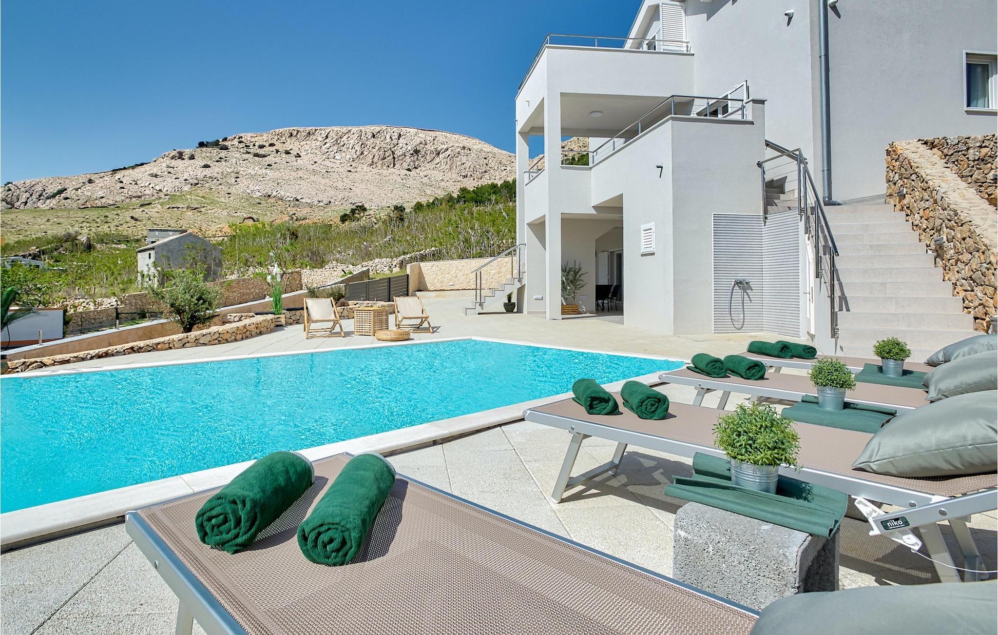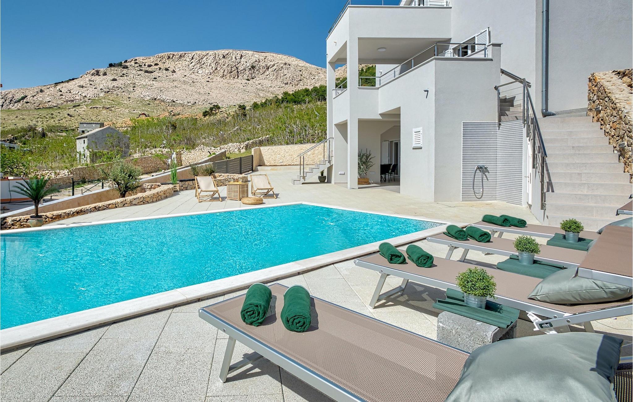 Die charmante Villa Katarina befindet sich im kleinen Ort Metajna auf der Insel Pag. Mit der guten Lage, nähe der Bars, Geschäfte hat diese Villa noch viel anzubieten. Der wunderschöne Blick auf das Meer und die Insel von den Terassen und dem Außenbereich wird Sie erholen und Ihnen den entspannten Urlaub ermöglichen. Wenn Sie auf der ersten Etage in die Villa hereinkommen, erwartet Sie ein geräumiges Ess-und-Wohnzimmer mit der komplett ausgestatteten Küche verbunden. Schöne Gemälde mit Meer-Motiven geben der Villa einen zusätzlichen mediterranen Flair. Grillen Sie gerne, können Sie auch auf der Terrasse Ihre Lieblingsgerichte vorbereiten. Auf der zweiten Etage finden Sie die angenehmen Schlafzimmer dekoriert in natürlichen Farben, jedes mit privaten Badezimmer. Aus allen Schlafzimmern kommen Sie zur Terrasse aber auch zum Poolbereich. Hier können Sie sich ausruhen und in den Pool eintauchen während Sie auf die Familienmahlzeit im Offenen warten. Hier stehen Ihnen Liegestühle, Sonnenschirme und eine Dusche im Offenen zur Verfügung, sowie ein privater Parkplatz. Verwöhnen Sie sich auf dieser besonderen Insel, nur ein paar Minuten vom Strand entfernt und tauchen Sie mit Freude in Ihren Urlaub ein! Die schöne und moderne Villa Catherine erwartet Sie!