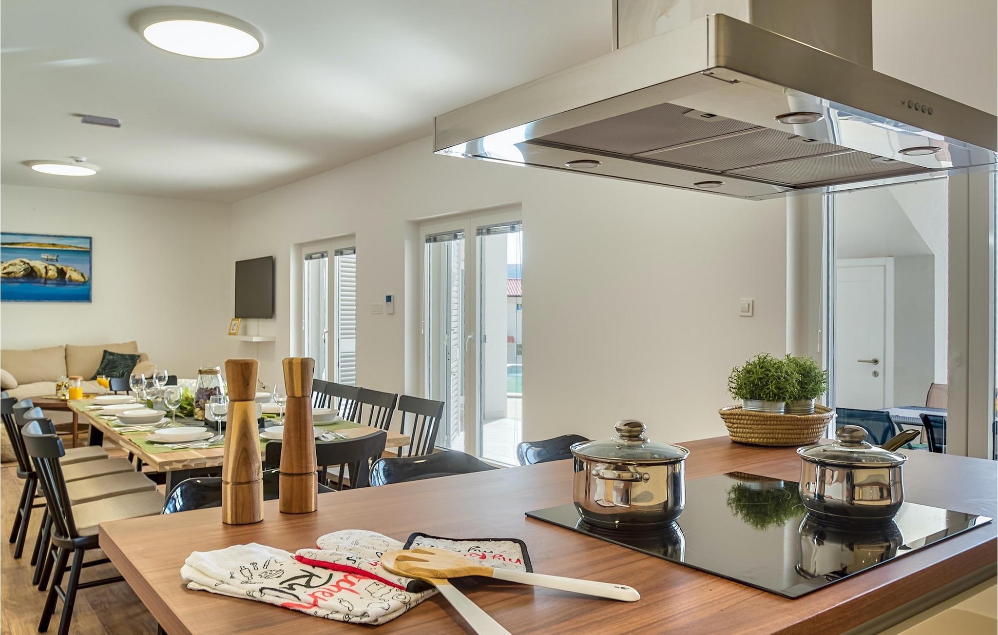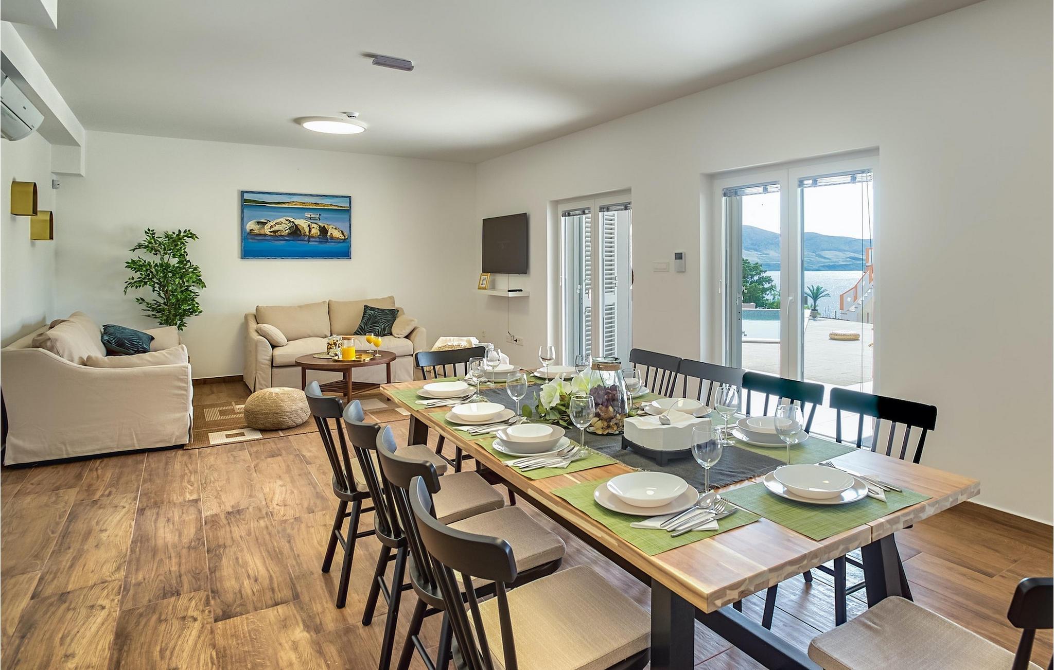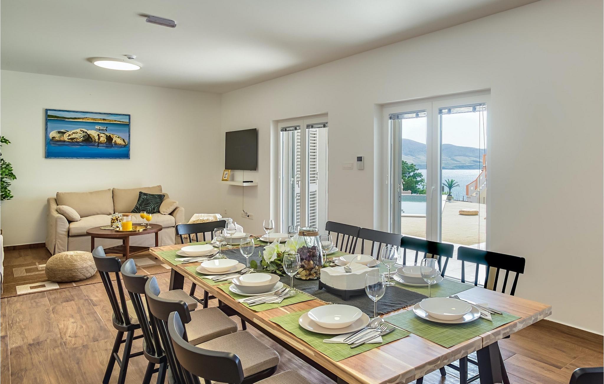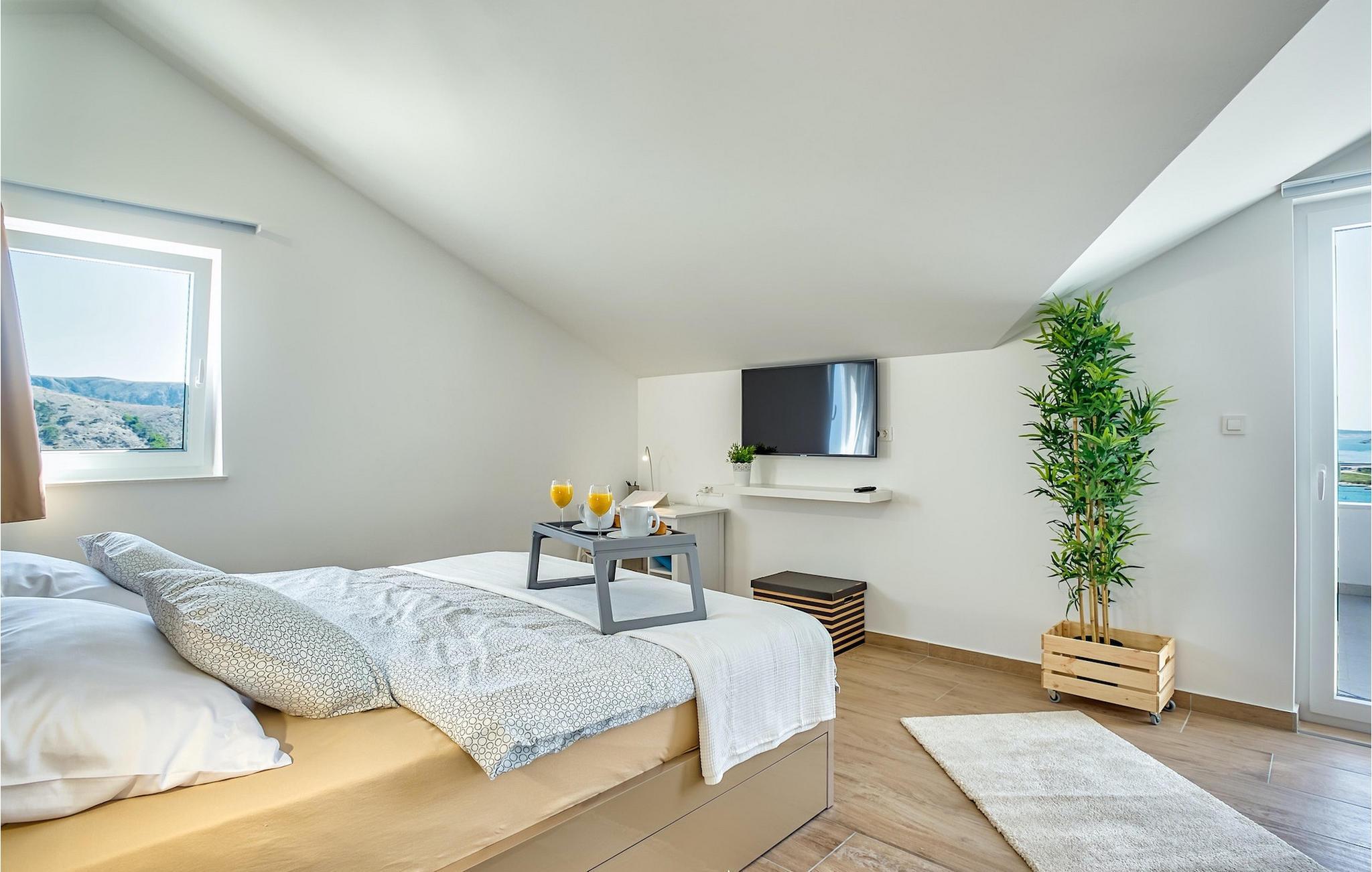 Die charmante Villa Katarina befindet sich im kleinen Ort Metajna auf der Insel Pag. Mit der guten Lage, nähe der Bars, Geschäfte hat diese Villa noch viel anzubieten. Der wunderschöne Blick auf das Meer und die Insel von den Terassen und dem Außenbereich wird Sie erholen und Ihnen den entspannten Urlaub ermöglichen. Wenn Sie auf der ersten Etage in die Villa hereinkommen, erwartet Sie ein geräumiges Ess-und-Wohnzimmer mit der komplett ausgestatteten Küche verbunden. Schöne Gemälde mit Meer-Motiven geben der Villa einen zusätzlichen mediterranen Flair. Grillen Sie gerne, können Sie auch auf der Terrasse Ihre Lieblingsgerichte vorbereiten. Auf der zweiten Etage finden Sie die angenehmen Schlafzimmer dekoriert in natürlichen Farben, jedes mit privaten Badezimmer. Aus allen Schlafzimmern kommen Sie zur Terrasse aber auch zum Poolbereich. Hier können Sie sich ausruhen und in den Pool eintauchen während Sie auf die Familienmahlzeit im Offenen warten. Hier stehen Ihnen Liegestühle, Sonnenschirme und eine Dusche im Offenen zur Verfügung, sowie ein privater Parkplatz. Verwöhnen Sie sich auf dieser besonderen Insel, nur ein paar Minuten vom Strand entfernt und tauchen Sie mit Freude in Ihren Urlaub ein! Die schöne und moderne Villa Catherine erwartet Sie!