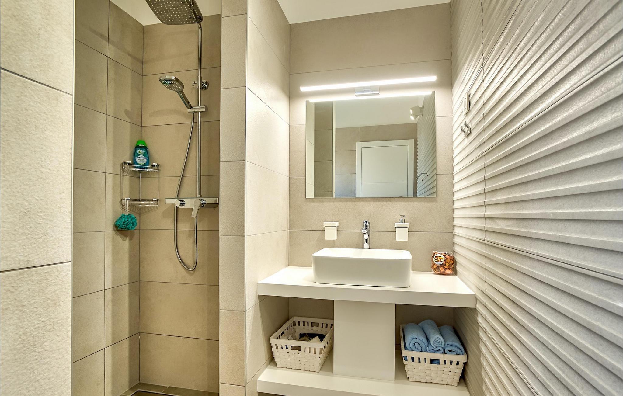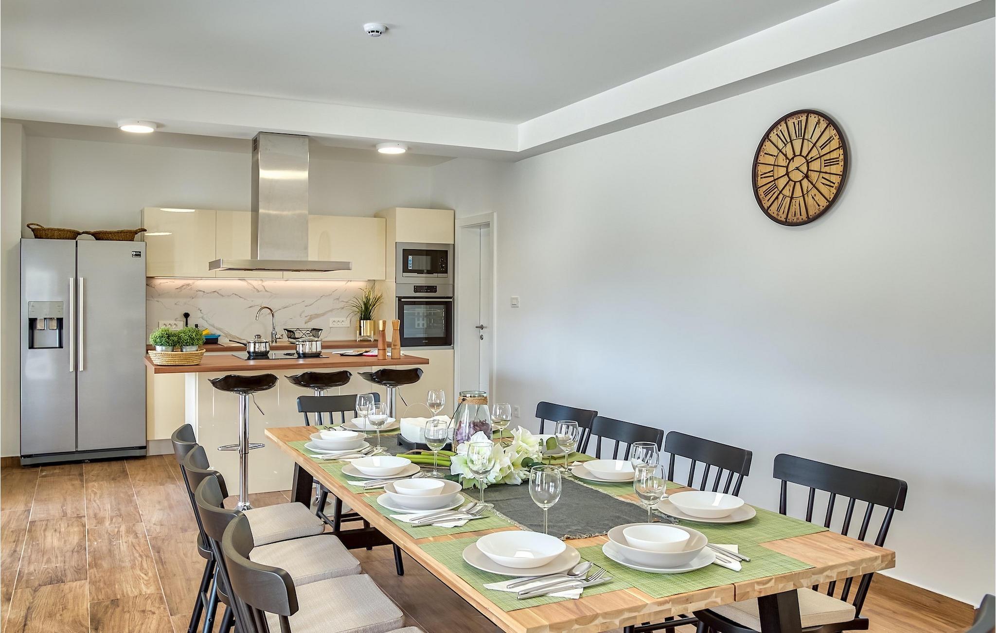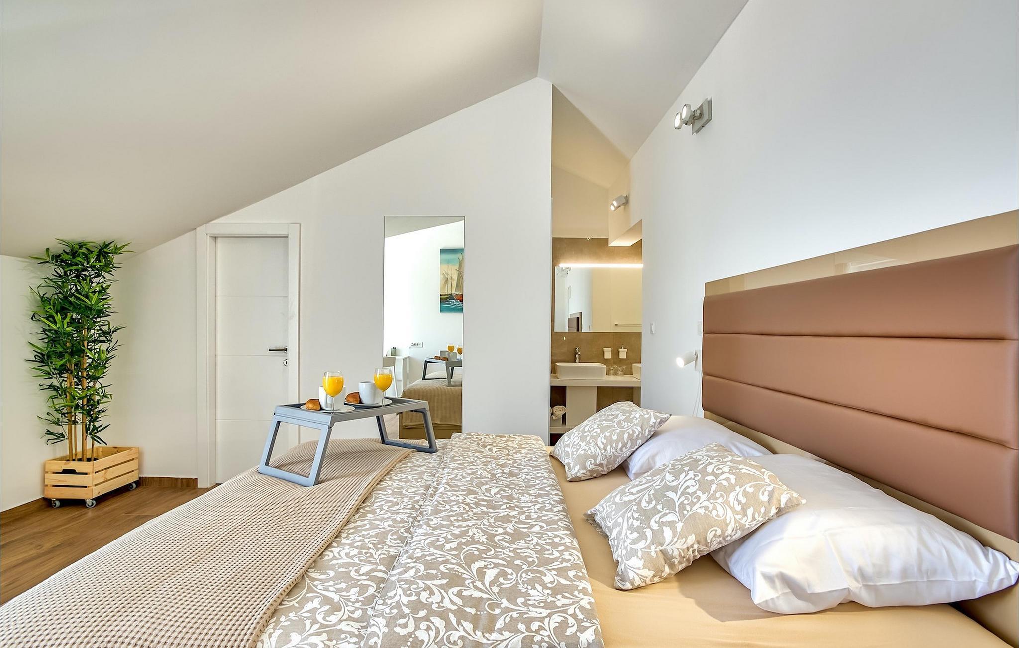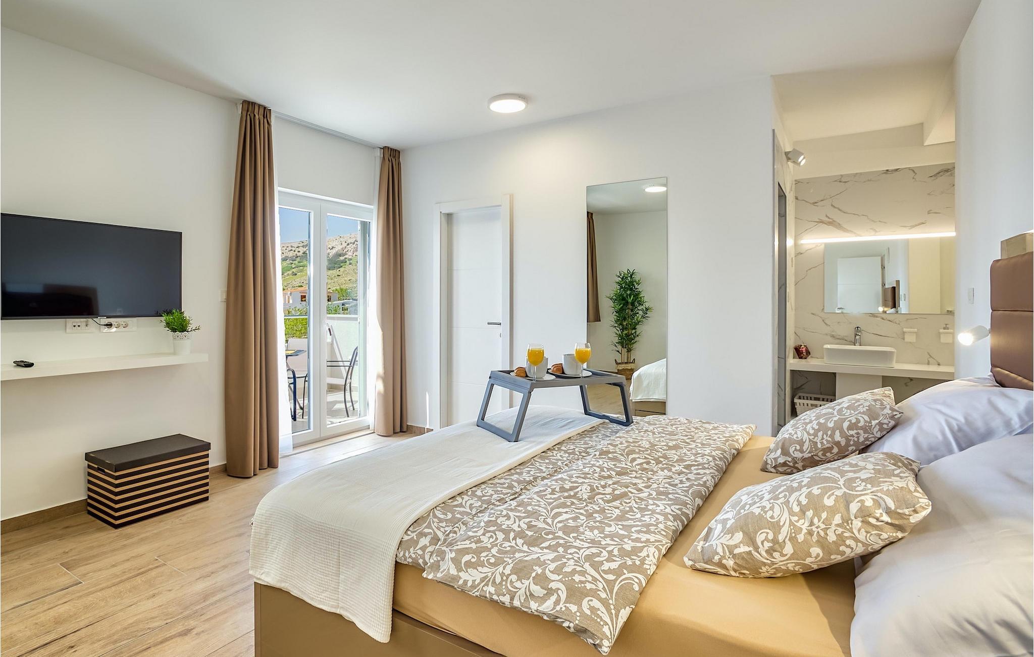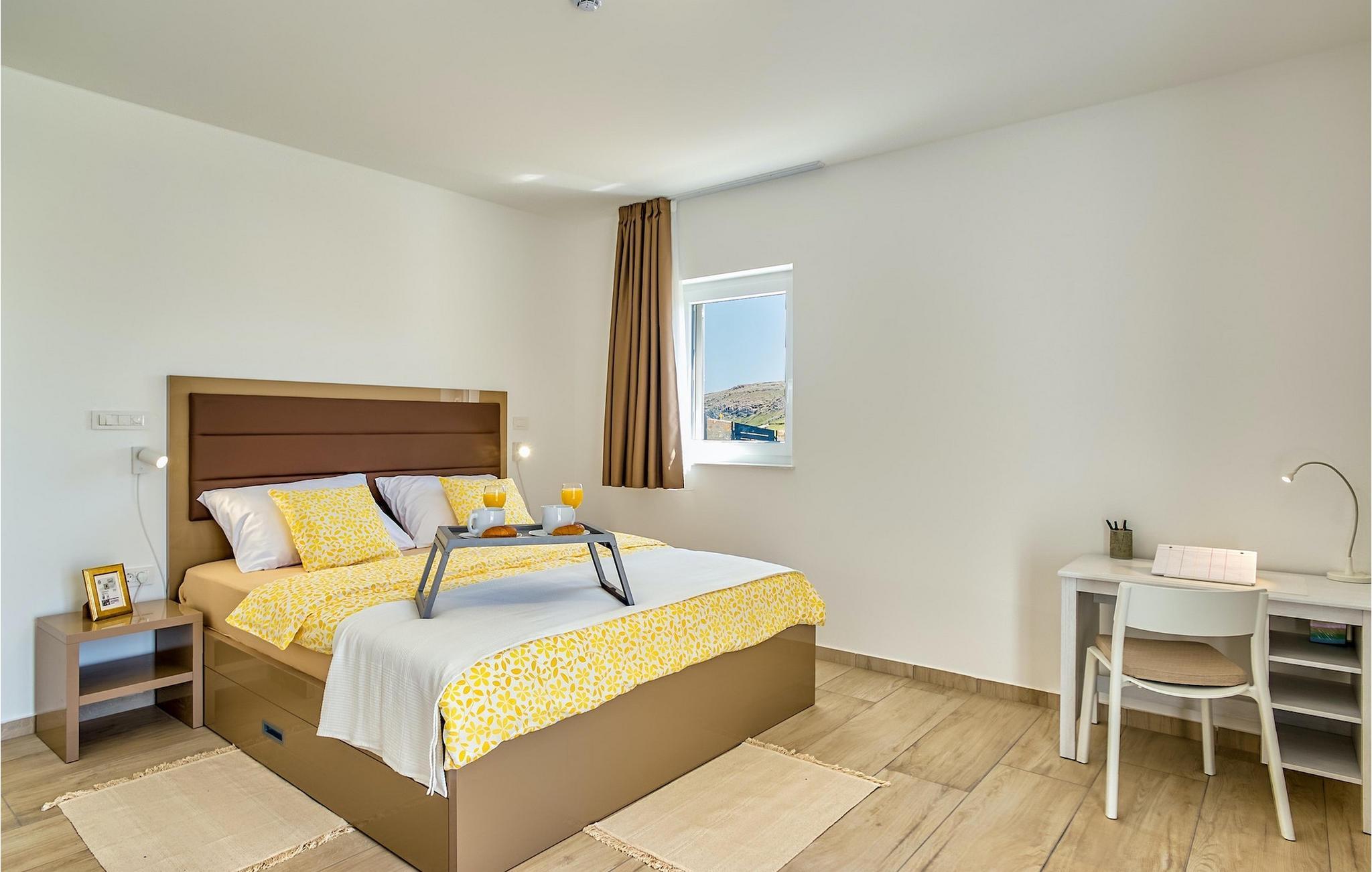 Die charmante Villa Katarina befindet sich im kleinen Ort Metajna auf der Insel Pag. Mit der guten Lage, nähe der Bars, Geschäfte hat diese Villa noch viel anzubieten. Der wunderschöne Blick auf das Meer und die Insel von den Terassen und dem Außenbereich wird Sie erholen und Ihnen den entspannten Urlaub ermöglichen. Wenn Sie auf der ersten Etage in die Villa hereinkommen, erwartet Sie ein geräumiges Ess-und-Wohnzimmer mit der komplett ausgestatteten Küche verbunden. Schöne Gemälde mit Meer-Motiven geben der Villa einen zusätzlichen mediterranen Flair. Grillen Sie gerne, können Sie auch auf der Terrasse Ihre Lieblingsgerichte vorbereiten. Auf der zweiten Etage finden Sie die angenehmen Schlafzimmer dekoriert in natürlichen Farben, jedes mit privaten Badezimmer. Aus allen Schlafzimmern kommen Sie zur Terrasse aber auch zum Poolbereich. Hier können Sie sich ausruhen und in den Pool eintauchen während Sie auf die Familienmahlzeit im Offenen warten. Hier stehen Ihnen Liegestühle, Sonnenschirme und eine Dusche im Offenen zur Verfügung, sowie ein privater Parkplatz. Verwöhnen Sie sich auf dieser besonderen Insel, nur ein paar Minuten vom Strand entfernt und tauchen Sie mit Freude in Ihren Urlaub ein! Die schöne und moderne Villa Catherine erwartet Sie!