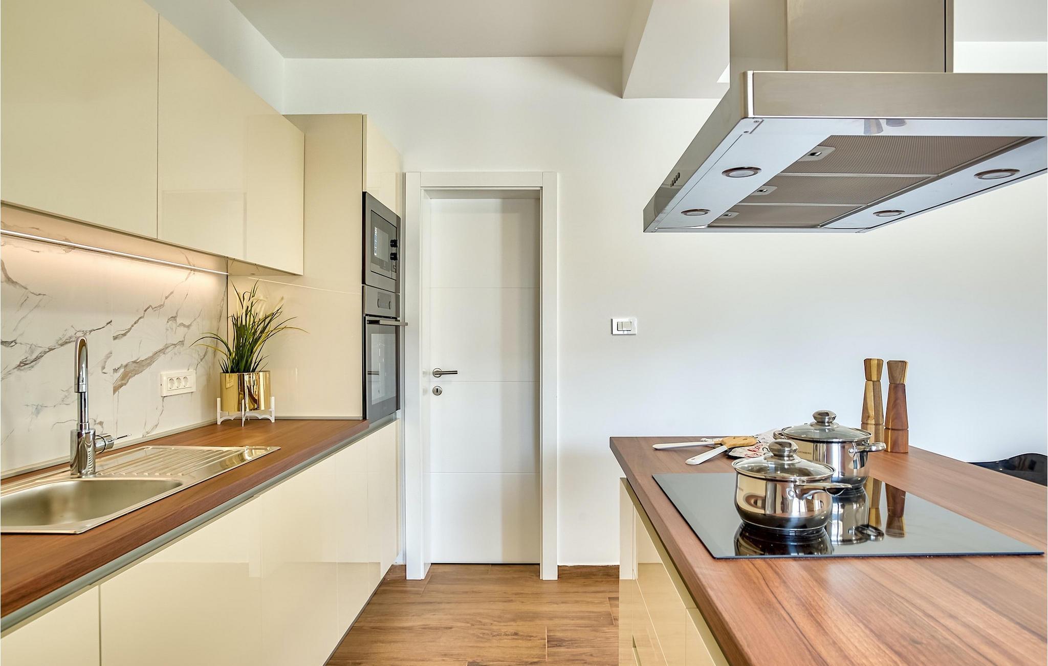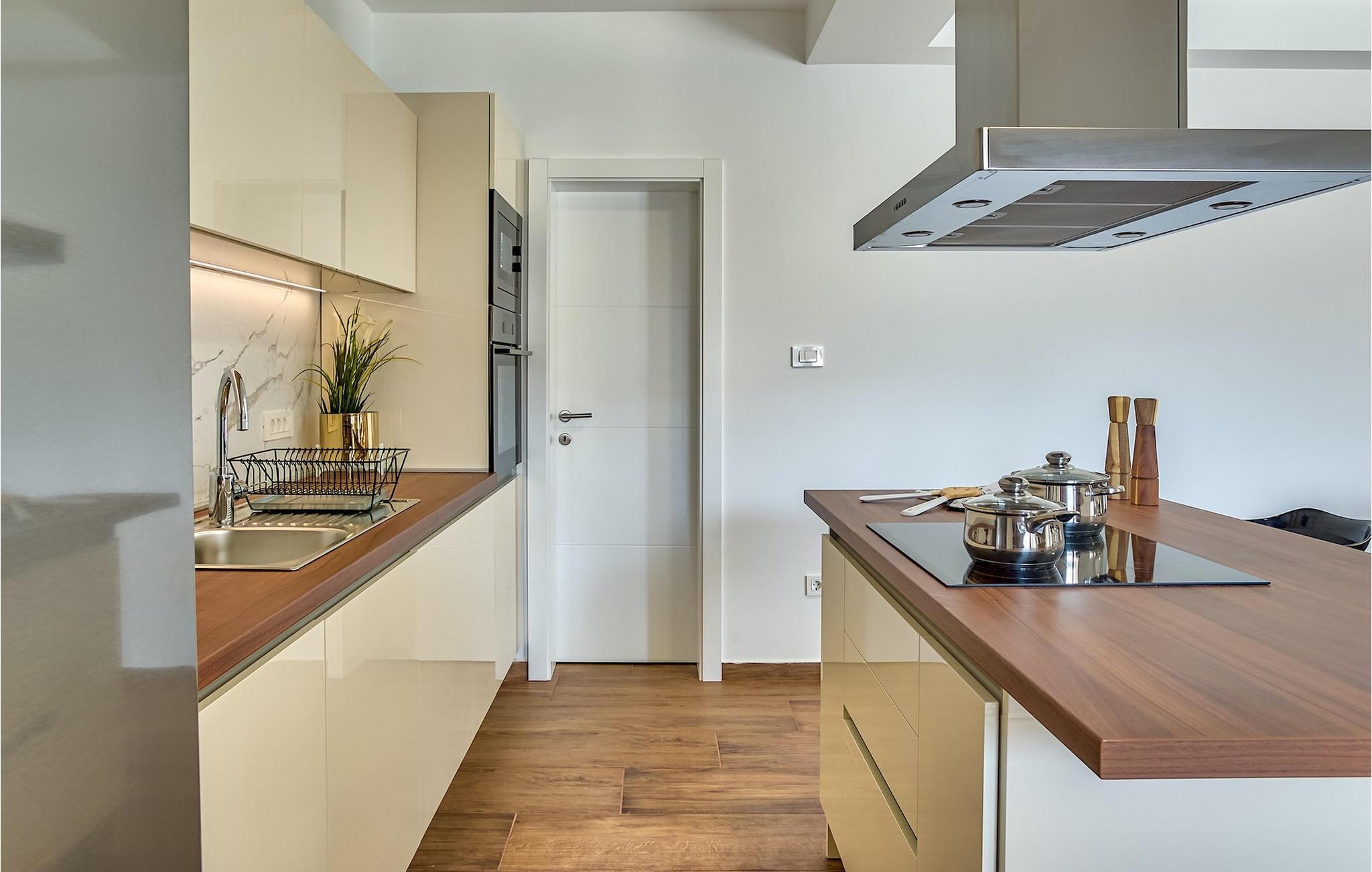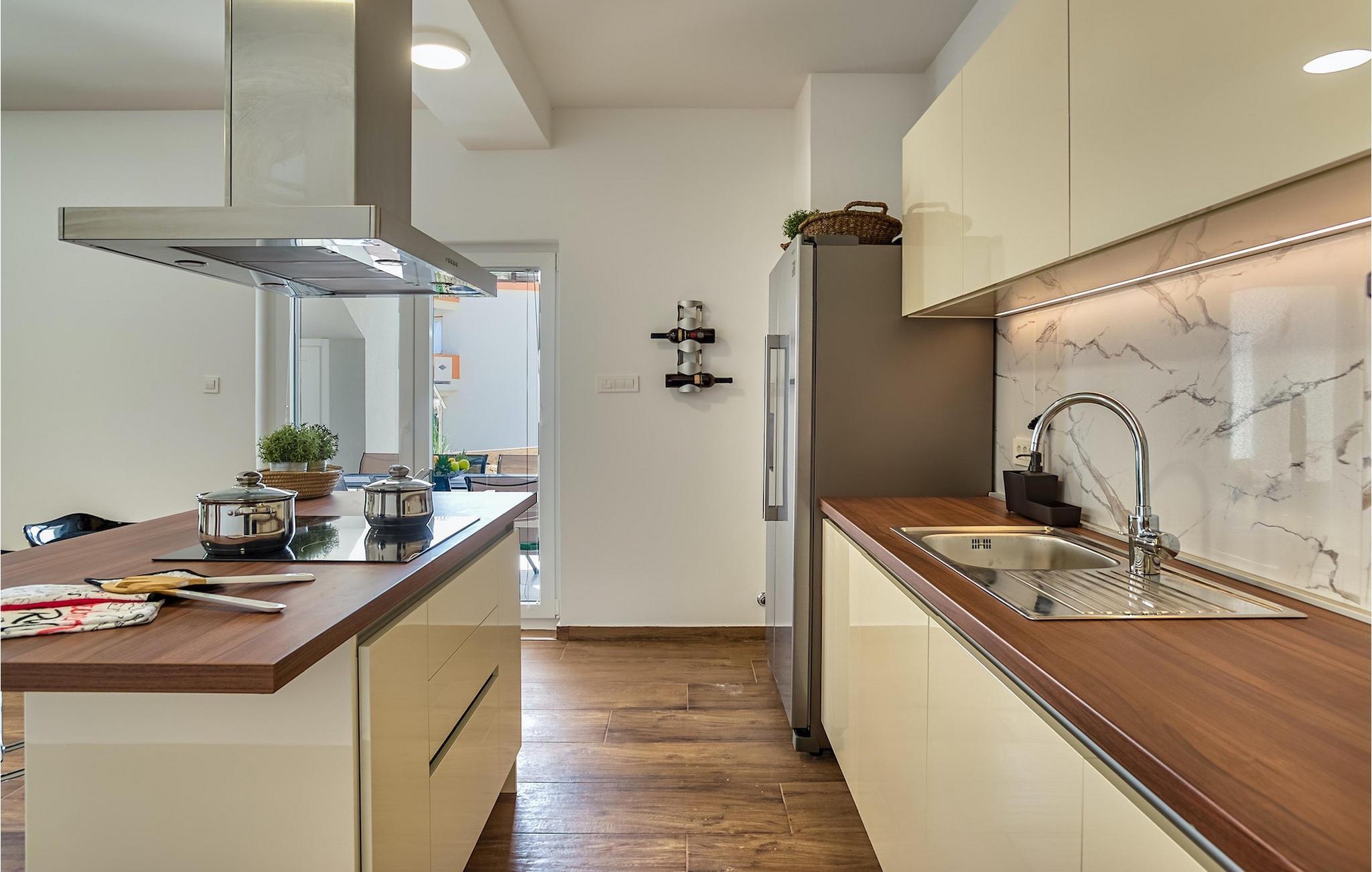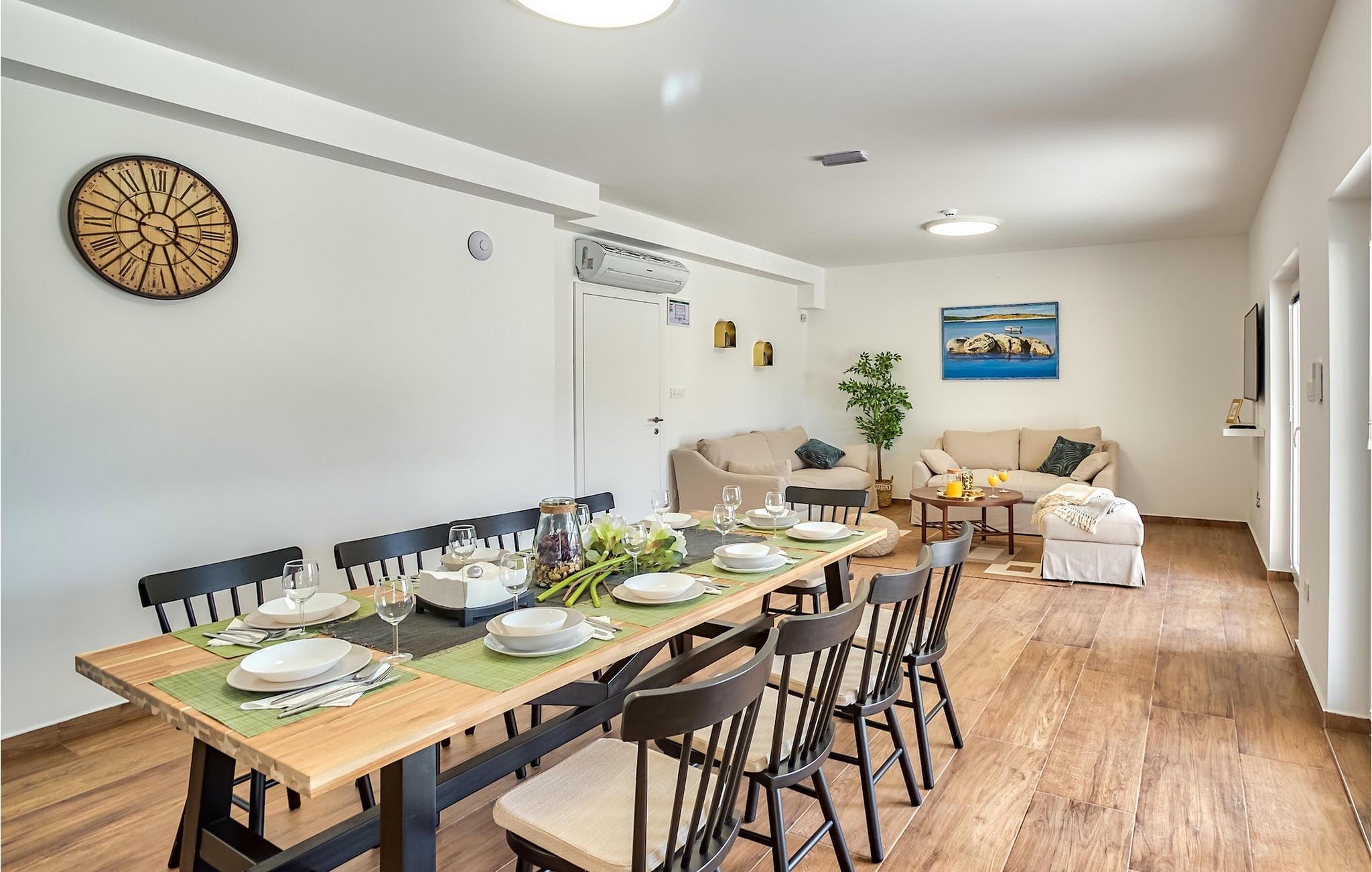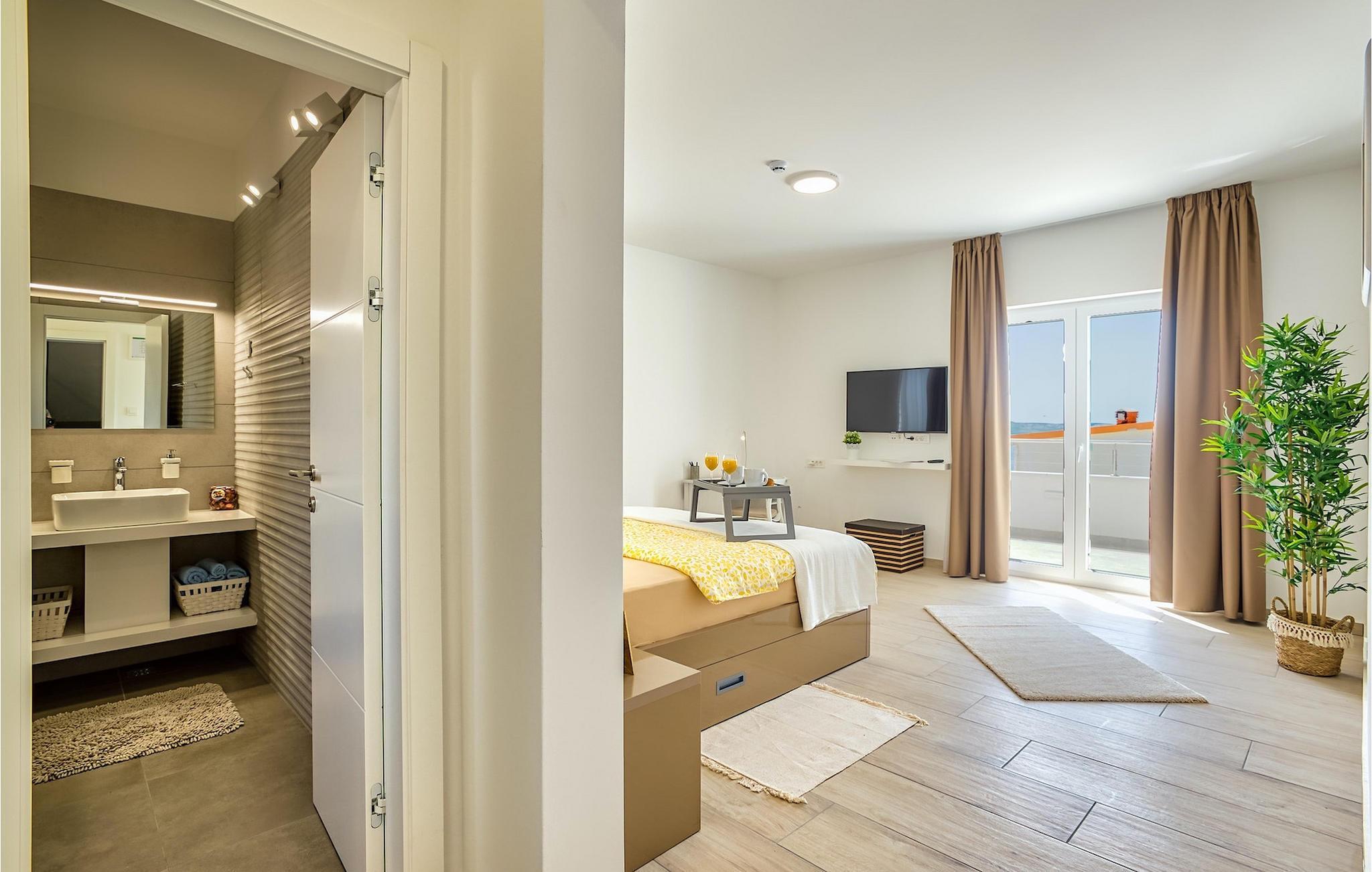 Die charmante Villa Katarina befindet sich im kleinen Ort Metajna auf der Insel Pag. Mit der guten Lage, nähe der Bars, Geschäfte hat diese Villa noch viel anzubieten. Der wunderschöne Blick auf das Meer und die Insel von den Terassen und dem Außenbereich wird Sie erholen und Ihnen den entspannten Urlaub ermöglichen. Wenn Sie auf der ersten Etage in die Villa hereinkommen, erwartet Sie ein geräumiges Ess-und-Wohnzimmer mit der komplett ausgestatteten Küche verbunden. Schöne Gemälde mit Meer-Motiven geben der Villa einen zusätzlichen mediterranen Flair. Grillen Sie gerne, können Sie auch auf der Terrasse Ihre Lieblingsgerichte vorbereiten. Auf der zweiten Etage finden Sie die angenehmen Schlafzimmer dekoriert in natürlichen Farben, jedes mit privaten Badezimmer. Aus allen Schlafzimmern kommen Sie zur Terrasse aber auch zum Poolbereich. Hier können Sie sich ausruhen und in den Pool eintauchen während Sie auf die Familienmahlzeit im Offenen warten. Hier stehen Ihnen Liegestühle, Sonnenschirme und eine Dusche im Offenen zur Verfügung, sowie ein privater Parkplatz. Verwöhnen Sie sich auf dieser besonderen Insel, nur ein paar Minuten vom Strand entfernt und tauchen Sie mit Freude in Ihren Urlaub ein! Die schöne und moderne Villa Catherine erwartet Sie!