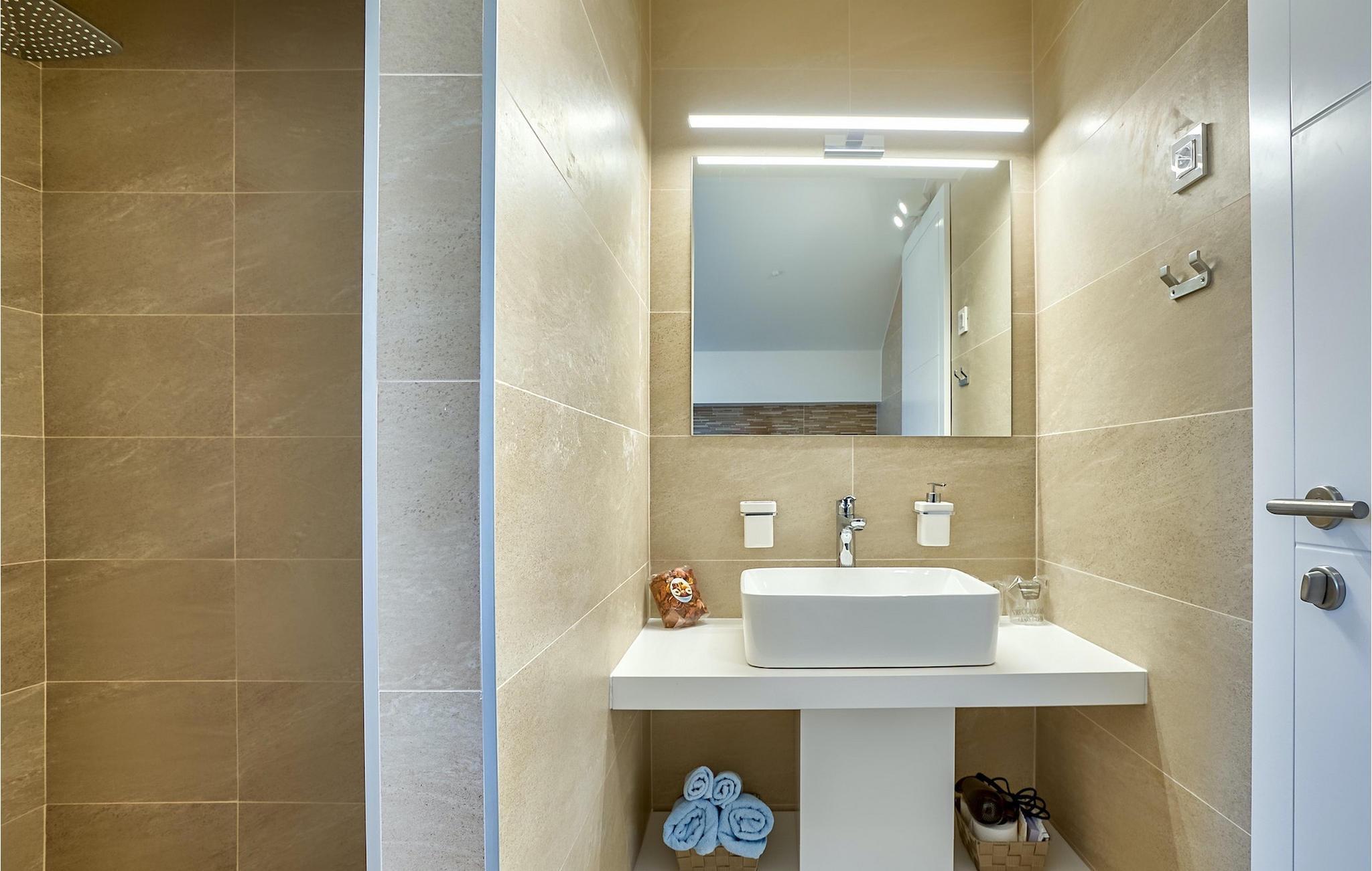 Badezimmer (nr. 2) - WC. Warmes und kaltes Wasser. Dusche