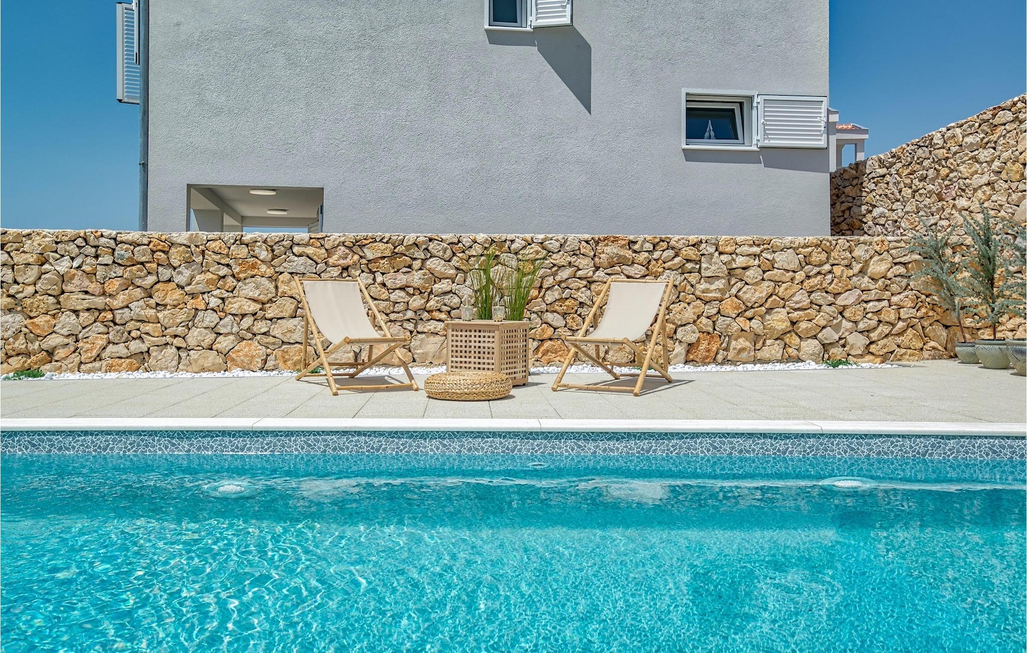 Udenfor venter den smukke private pool omgivet af den rummelige terrasse, der både inviterer dig til at slappe af og slappe af, uanset om du vil have det meste ud af den fortryllende udsigt, køle af og svømme et par omgange eller bare slappe af med en god bog eller en forfriskende drink.