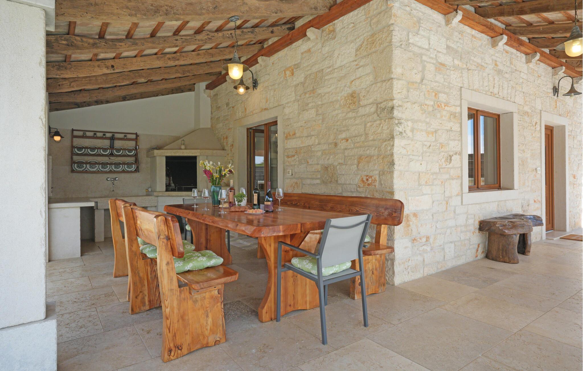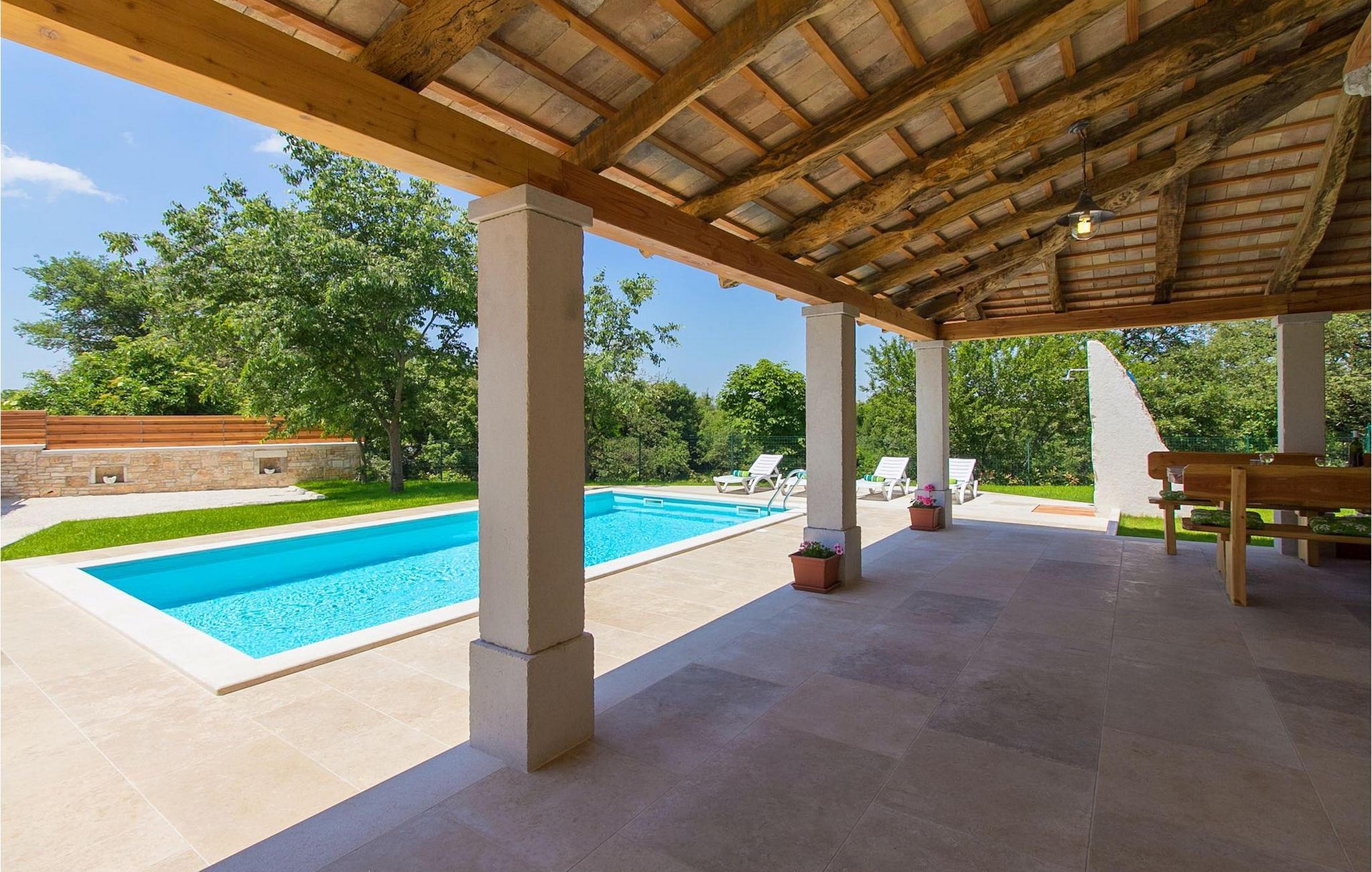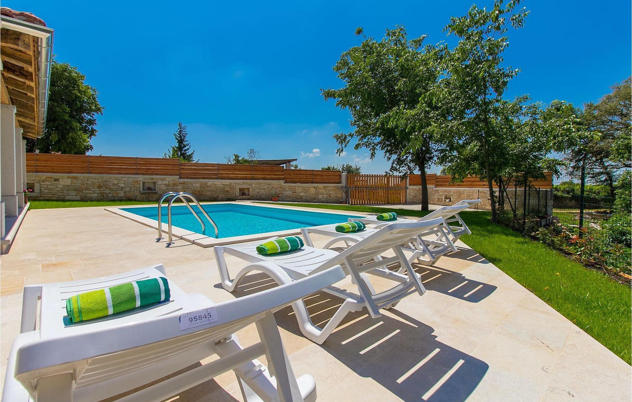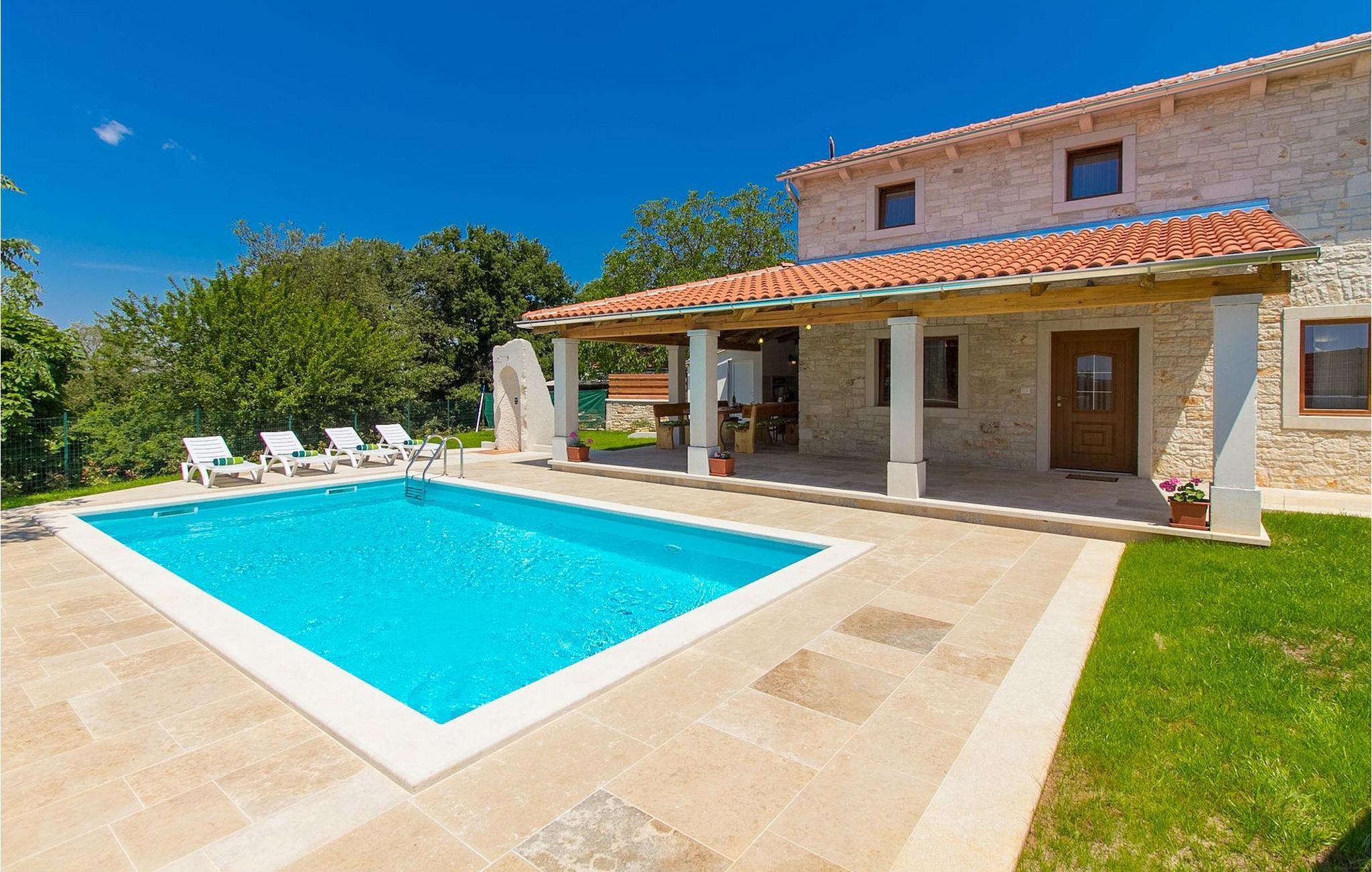 Den smukke familievilla Ladonja ligger i Sveti Petar u Šumi, en meget malerisk landsby i det centrale Istrien. Den charmerende villa er nedsænket i det grønne i det landlige Istrien, hvor du helt sikkert kan nyde en afslappende ferie med din familie og stadig være tæt på alle turistdestinationer. Denne fuldt indhegnede villa har en swimmingpool, hvor du kan svømme og forfriske dig på varme sommerdage, eller du kan solbade på liggestolene og nyde solens stråler. Ønsker I at tilberede frokost til jeres familie i det fri, er der grill, terrasse og overdækket spiseplads til jeres rådighed. Når du træder ind i villaen i stueetagen, er der et fuldt udstyret og moderne køkken, der har alt hvad du behøver for at tilberede en række delikatesser, en spiseplads og en stue. På første sal er der to soveværelser med hver sit badeværelse. Villa Ladonja har Wi-Fi internet og privat parkering til to biler. Book din villa til tiden og nyd en fredelig grøn oase med din familieVilla Ladonja er beliggende i den lille istriske by kaldet Sveti Petar u Šumi, i det centrale Istrien. Det er roligt og afslappende, men alligevel er det travle turistcenter Porec og Rovinj med deres strande og krystalklare Adriaterhav og seværdigheder kun en kort køretur væk. Det centrale Istrien er kendt for et landskab af små, maleriske middelalderbyer, der minder om Toscana eller Provence. Det byder også på rester af kulturarv. Istrien med sine cykelveje er perfekt cykeldestination. Vejforbindelserne er fremragende med adgang til en hurtig motorvej til Pula eller Trieste lufthavne.