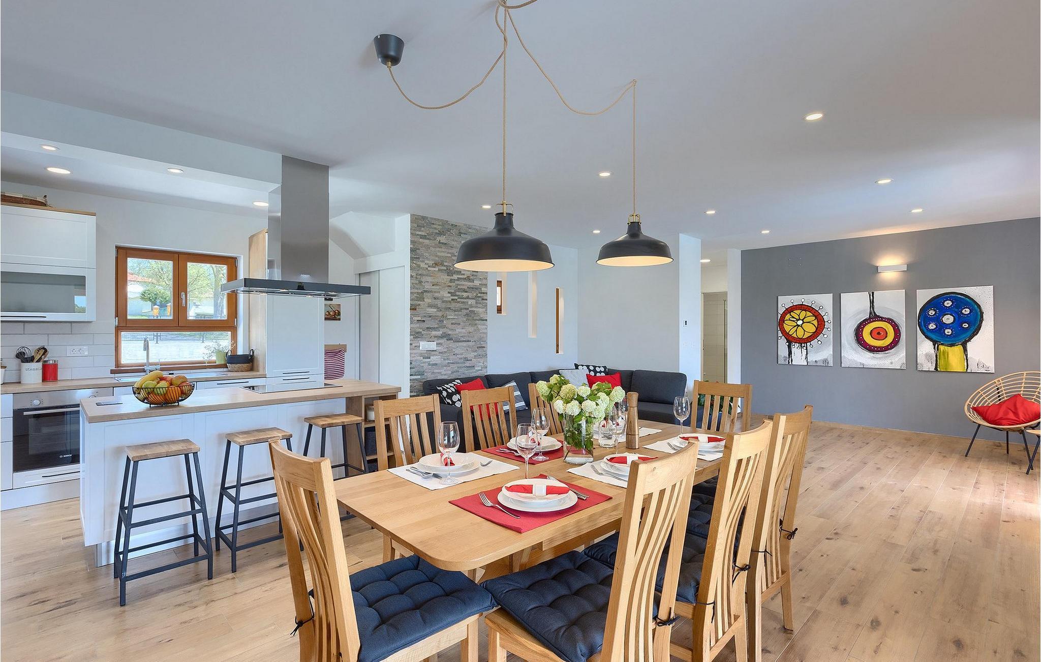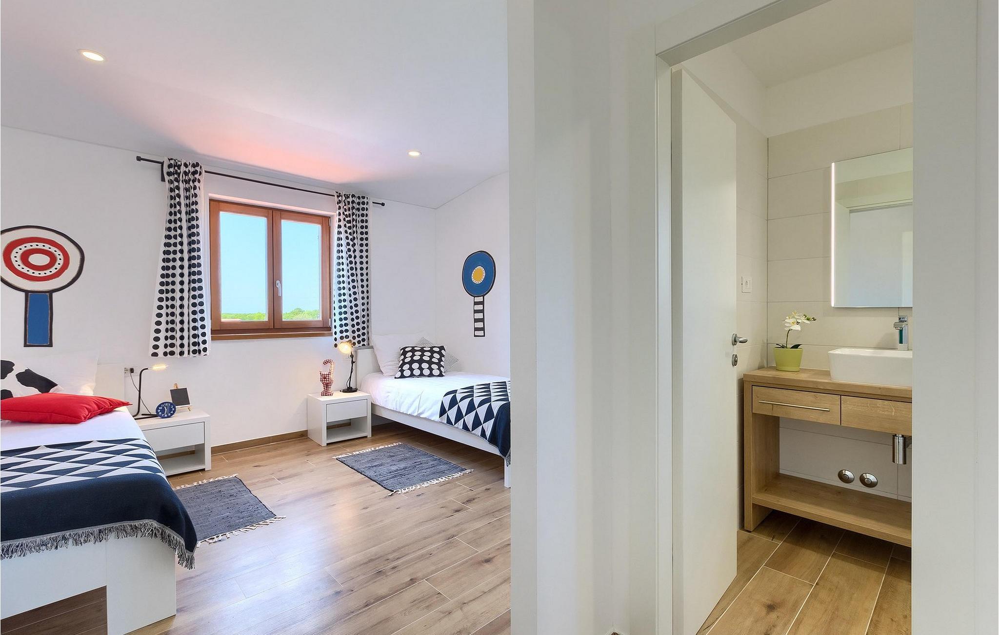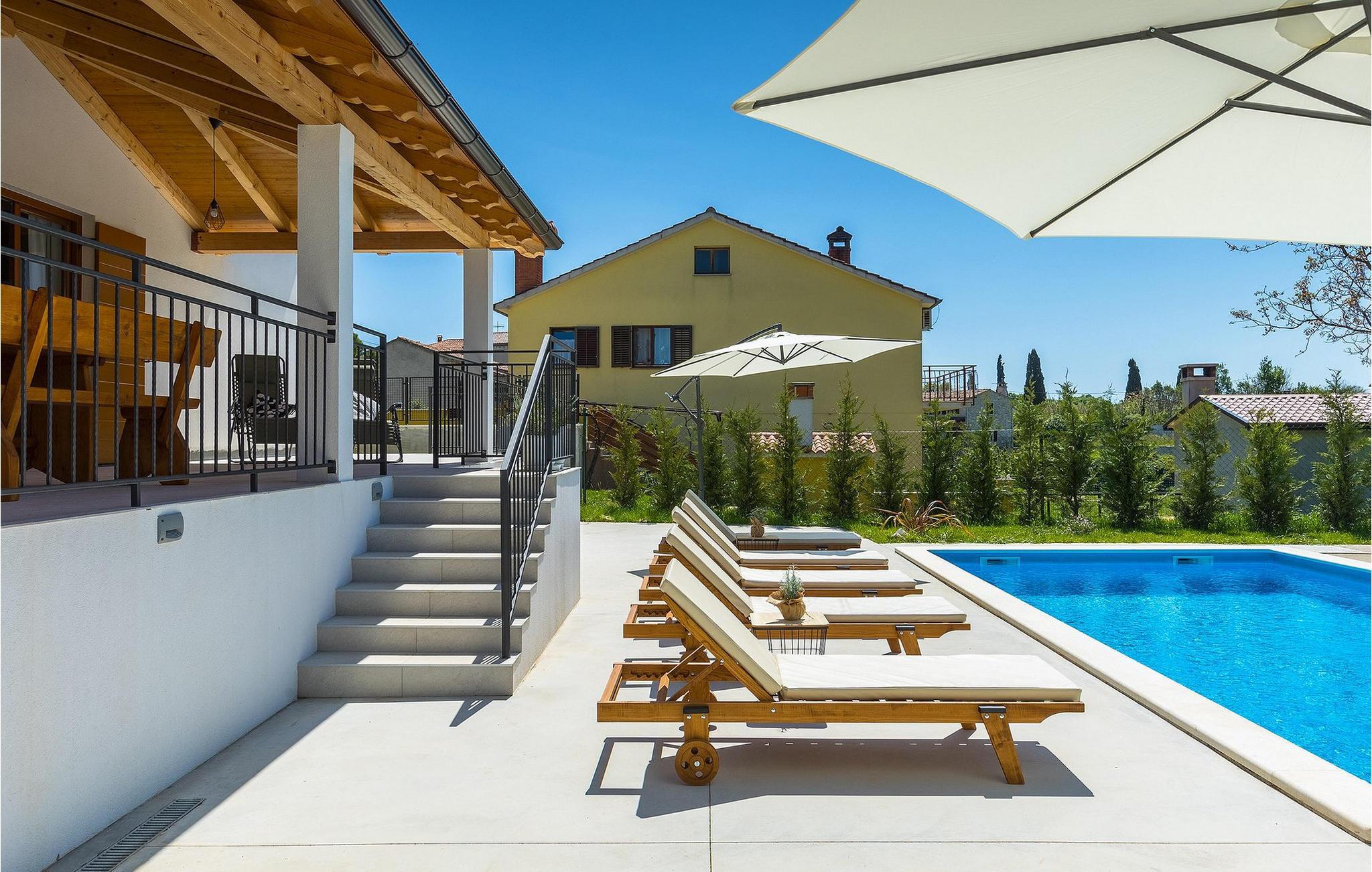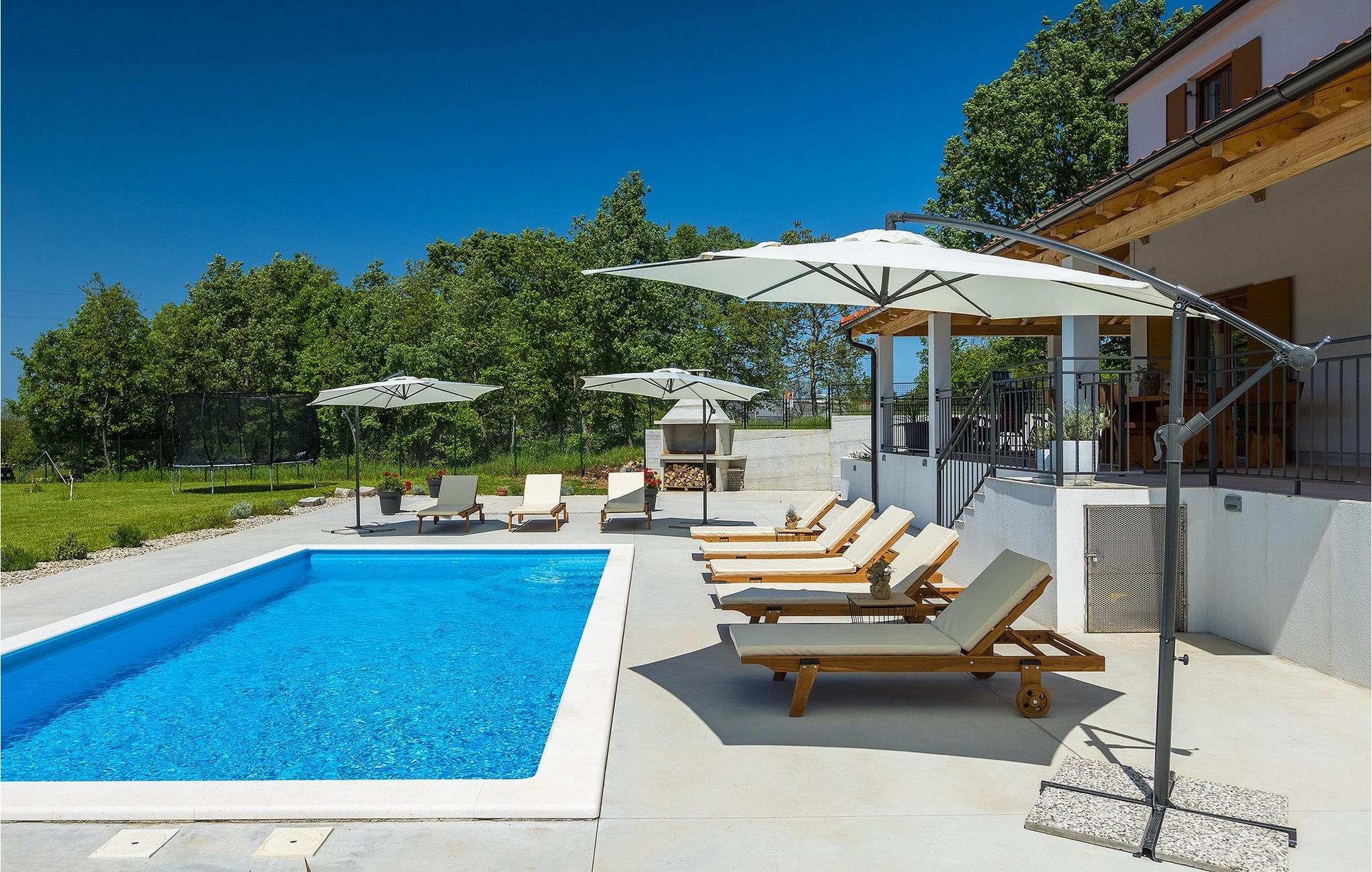 Villa Roza-Dolinci ligger i hjertet af Istrien, i den rolige landsby Dolinci, Sveti Petar u Sumi. Det er bygget i traditionel istrisk stil og inviterer dig til fuldstændig fred og afslapning. Stueetagen af villaen består af en hyggelig stue, en spisestue, et fuldt udstyret køkken med en kogeø, hvor alle kan nyde charmen ved at lave mad, og et pænt indrettet soveværelse, et badeværelse og et separat toilet. Ovenpå er de andre 3 soveværelser, hvoraf to har to enkeltsenge, der kan kombineres, og et værelse med dobbeltseng. Alle værelser har eget badeværelse, Smart TV og aircondition. Stuen og soveværelserne er dekoreret med abstrakte malerier af lokale kunstnere. Huset er stilfuldt designet i istrisk ånd, lavet af naturmaterialer, med mange trædele såsom en overdækket terrasse, hvor der er en udendørs spiseplads og en kulgrill. Foran villaen er der en 32m2 pool, som er et ideelt sted for forfriskning på de varme sommerdage. Stueetagen (stue, soveværelse og badeværelse), området omkring huset, terrassen og solterrassen ved siden af poolen er velegnet til gæster med begrænset mobilitet og kørestolsbrugere. Poolen og terrassen vender mod syd, så du kan nyde solen hele dagen lang. Ved siden af poolen ligger et poolhus med et opholdsområde, hvor du kan slappe af og nyde pooludsigten. Villaen har trampolin og dart til sjove stunder for hele familien. Hvis du vil udforske omgivelserne, betyder villaens beliggenhed i det centrale Istrien, at du meget hurtigt kan nå de mangfoldige og talrige manifestationer og begivenheder i alle dele af Istrien. Nyd en ferie sammen i villaen og skab uforglemmelige minder, som du vil huske i lang tid!Sveti Petar u Sumi blev opkaldt efter et benediktinerkloster fra begyndelsen af det 12. århundrede, men i århundreder tilhørte det de paulinske fædre - de hvide munke. Det er et usædvanligt sted i Istrien. I modsætning til andre byer og byer i Istrien, hvor landsbyerne ligger på et bjerg, er Sv. Petar u Sumi ligger på et kuperet plateau omgivet af gamle skove. I det omkringliggende område er der en 18 km lang cykelsti, der fører besøgende gennem uberørt natur. Også attraktiv er den 4,2 km lange vandresti Križni put med 14 stationer med stenskulpturer af sakrale motiver. Talrige begivenheder finder sted i Sveti Petar u Sumi, som tiltrækker mange besøgende hvert år. Det mest kendte er pølsemarkedet, hvor mesterskabet i traditionel pølsefyld finder sted. Ikke langt fra villaen er der talrige taverner, hvor du kan smage de fineste istriske delikatesser. Vi anbefaler at besøge andre turistdestinationer, såsom byerne Pula og Rovinj ved kysten og middelalderbyerne Motovun og Buzet i det centrale Istrien.