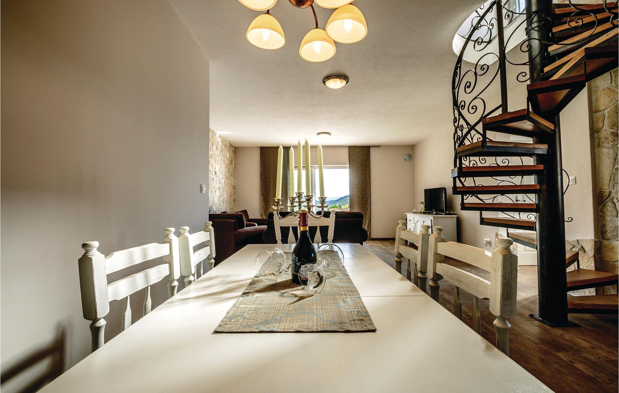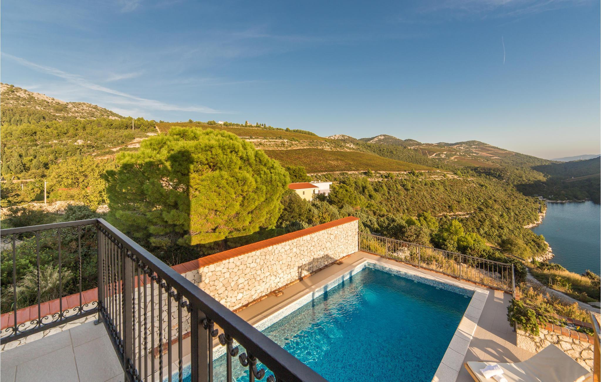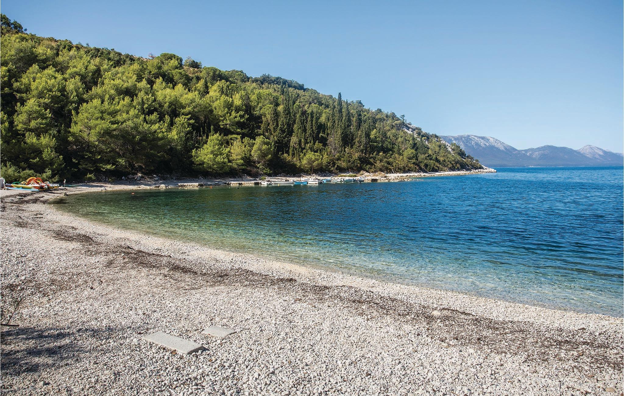 Denne moderne villa, der er bygget i den typisk dalmatiske stil, ligger i den lille by Kremena og er det rigtige valg for en afslappet ferie. Huset strækker sig over to etager, der er forbundet både med en indendørs vindeltrappe og en udendørs trappe. I stueetagen ligger opholdsområdet med køkken og spisestue samt et toilet og et badeværelse med douche. På den øverste etage ligger der tre soveværelser og et badeværelse. Den skønne, store terrasse med pool og den flotte panoramaudsigt over havet gør ferien perfekt. Ved siden af huset er der også en legeplads og en overdækket terrasse med grill. Kisel- og klippestranden når I på 5 minutter i bil. Det kan anbefales at tage dagsture til Dubrovnik og Korcula, der har et rigt kulturliv.