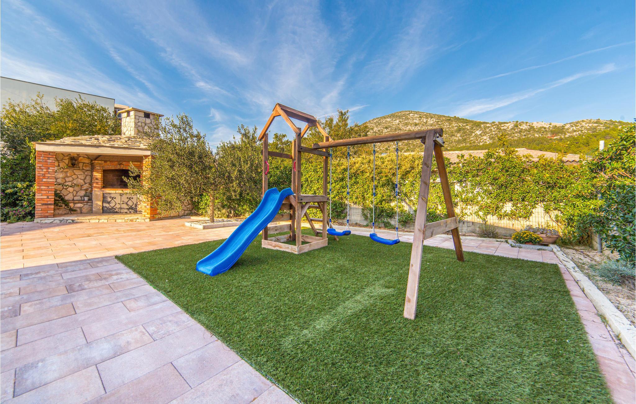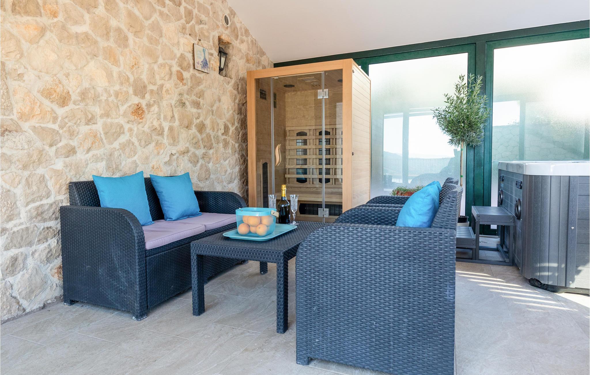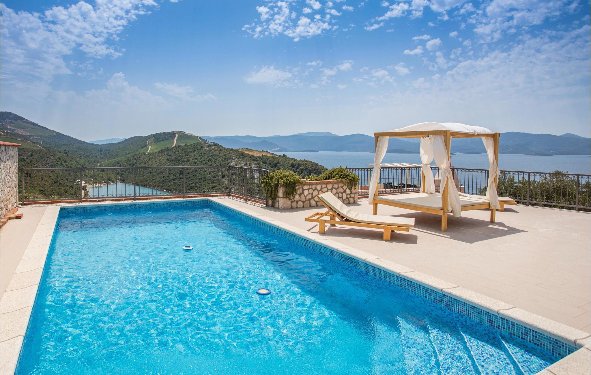 Denne moderne villa, der er bygget i den typisk dalmatiske stil, ligger i den lille by Kremena og er det rigtige valg for en afslappet ferie. Huset strækker sig over to etager, der er forbundet både med en indendørs vindeltrappe og en udendørs trappe. I stueetagen ligger opholdsområdet med køkken og spisestue samt et toilet og et badeværelse med douche. På den øverste etage ligger der tre soveværelser og et badeværelse. Den skønne, store terrasse med pool og den flotte panoramaudsigt over havet gør ferien perfekt. Ved siden af huset er der også en legeplads og en overdækket terrasse med grill. Kisel- og klippestranden når I på 5 minutter i bil. Det kan anbefales at tage dagsture til Dubrovnik og Korcula, der har et rigt kulturliv.
