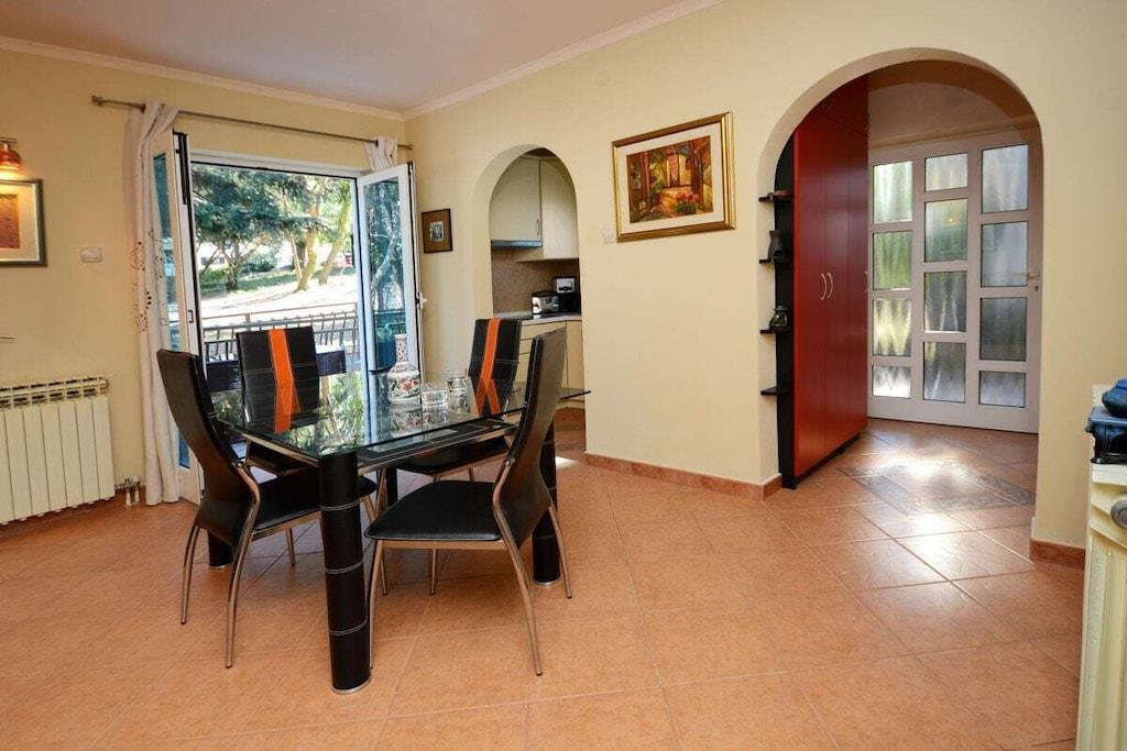 Lejligheden Sale ligger i Porec, cirka 400 meter fra Porec centrum og 500 meter fra stranden. Lejligheden består af en stue og køkken, et soveværelse med dobbeltseng, et badeværelse med badekar og en balkon. Der er privat parkering foran huset.