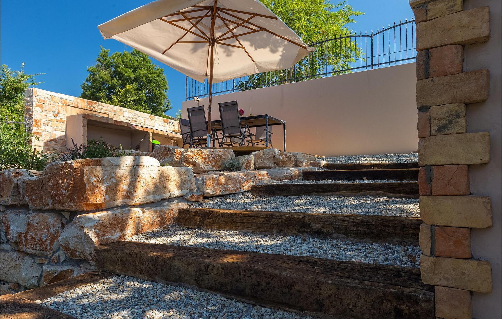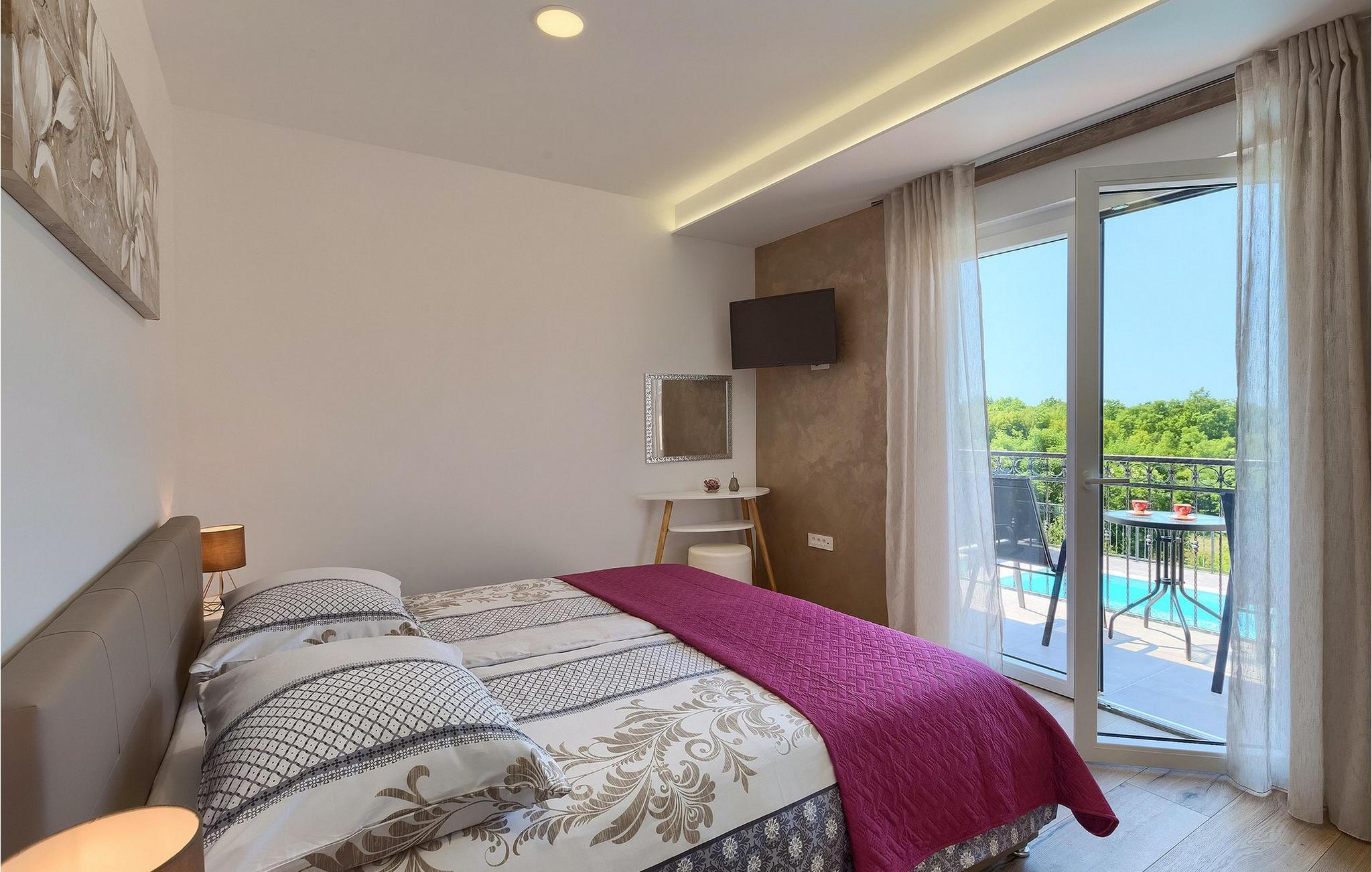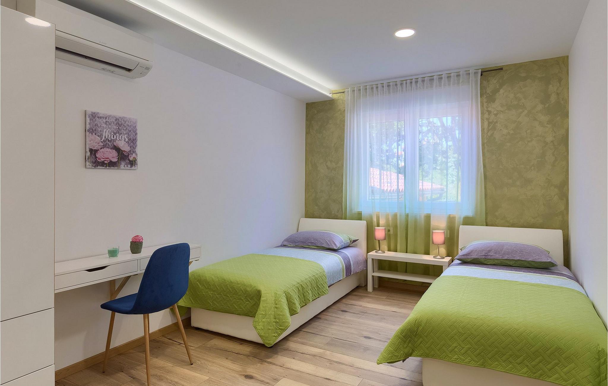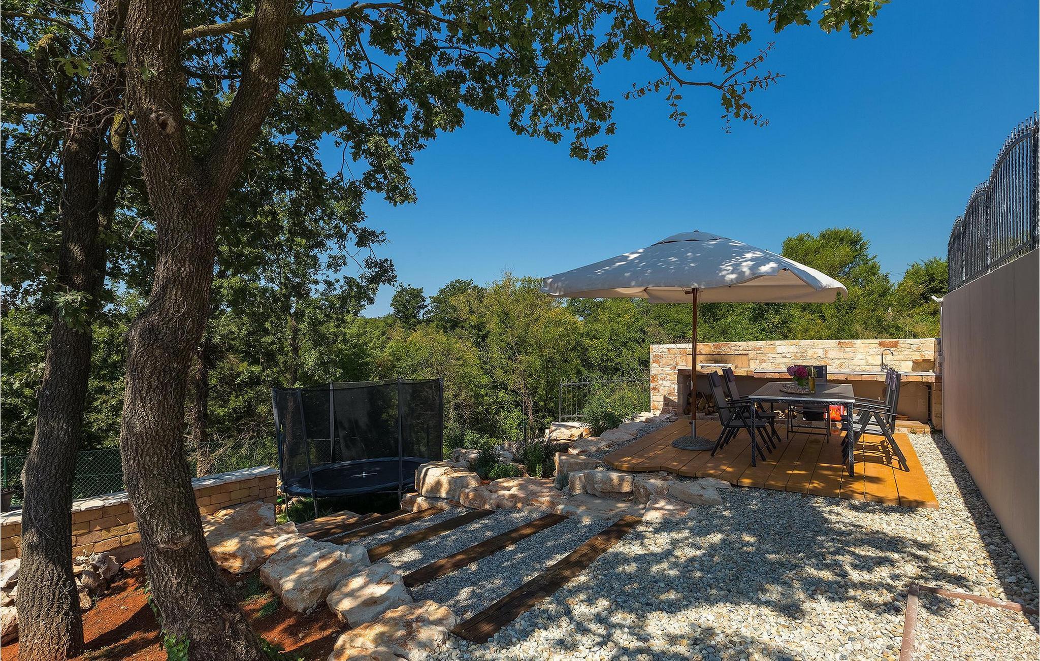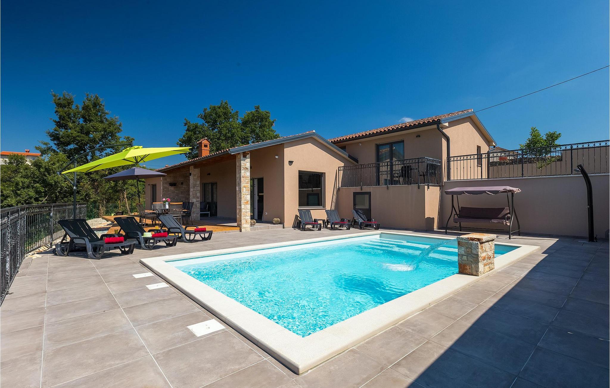 Navnet forklarer det hele - Villa Gloria er en virkelig herlig ejendom! Villaen er beliggende i en lille landsby i Istrien, ikke langt fra Pula, som er det perfekte sted for alle dem, der gerne vil tilbringe en fredelig ferie i Kroatien. Villa Gloria er forudset til max. på 6 gæster, hvilket gør den ideel til en familieferie. Den har 2 niveauer. På det nederste niveau, som har direkte adgang til poolen, finder du en hyggelig stue med SAT-TV, et fuldt udstyret køkken med spiseplads og et soveværelse med en komfortabel dobbeltseng. Et af badeværelserne er også placeret på det nederste niveau. Tag trappen til det øverste niveau, hvor du finder endnu et badeværelse, samt 2 resterende soveværelser. Et af soveværelserne har 2 enkeltsenge og det ene er udstyret med en dobbeltseng. Soveværelset med dobbeltseng har en terrasse, hvor du kan nyde din morgenkaffe. Villa Gloria tilbyder også en udendørs spiseplads samt en stengrill, hvor du kan tilberede lækre måltider og nyde dem udendørs. Der er et par siddeområder udendørs - valget er dit. En indbydende privat pool står også til din rådighed - den perfekte løsning til varme sommerdage! Villa Gloria har også en trampolin, som helt sikkert vil fange de yngste gæsters opmærksomhed.