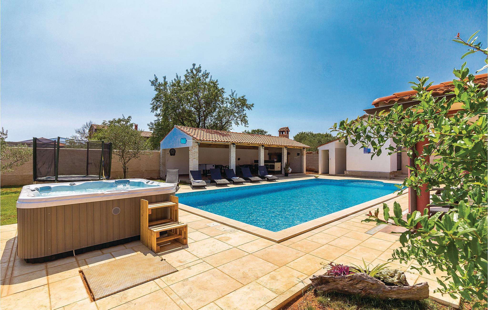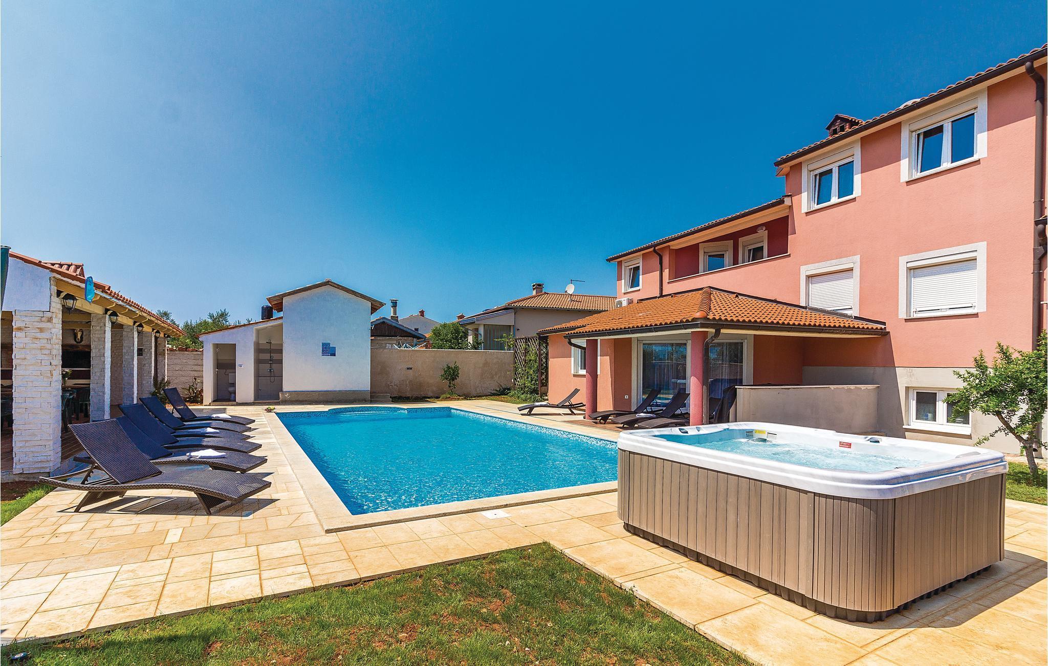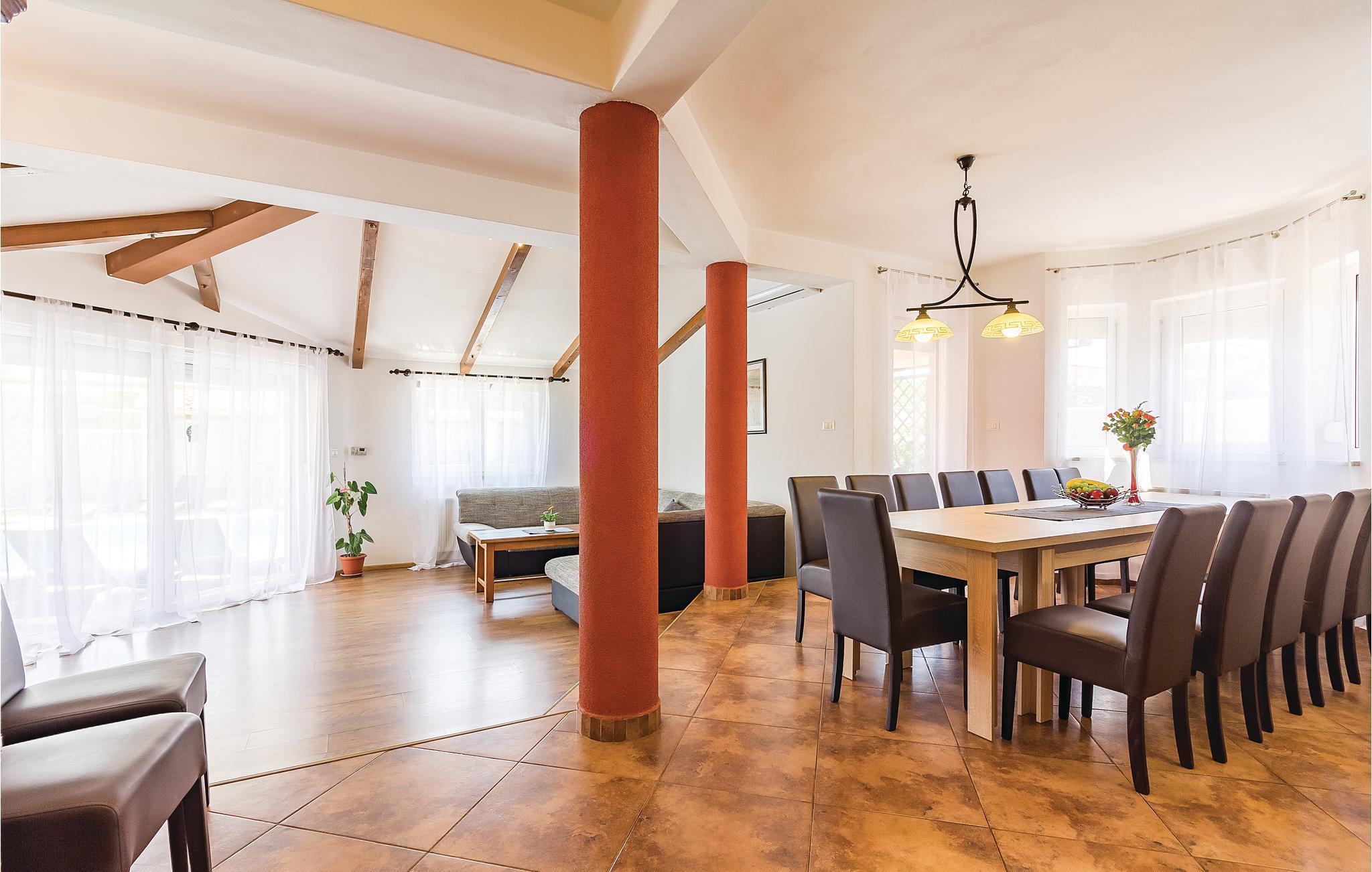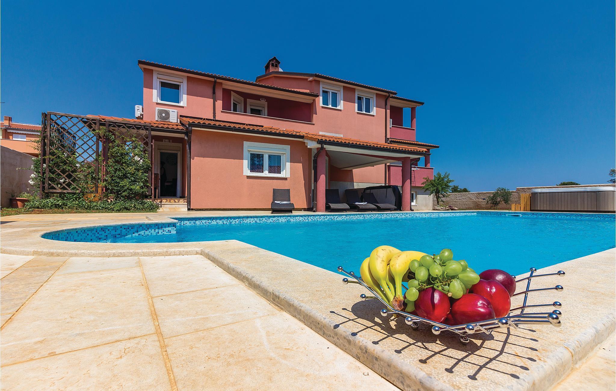 værelser er fordelt over to etager og består af i alt syv soveværelser og fire badeværelser. På ejendommen er der en stor swimmingpool og en whirlpool. Tag en tur langs havnefronten i nabobyen Fažana, som byder på mange barer og fremragende restauranter. Fra Fažana kan I også sejle til nationalparken på Brijuni-øerne. Hust også at besøge det romerske amfiteater og naturparken Kamenjak i feriebyen Premantura.