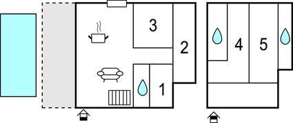 Badeværelse 5m2 (nr. 1) - WC. Varmt og koldt vand. Bruser