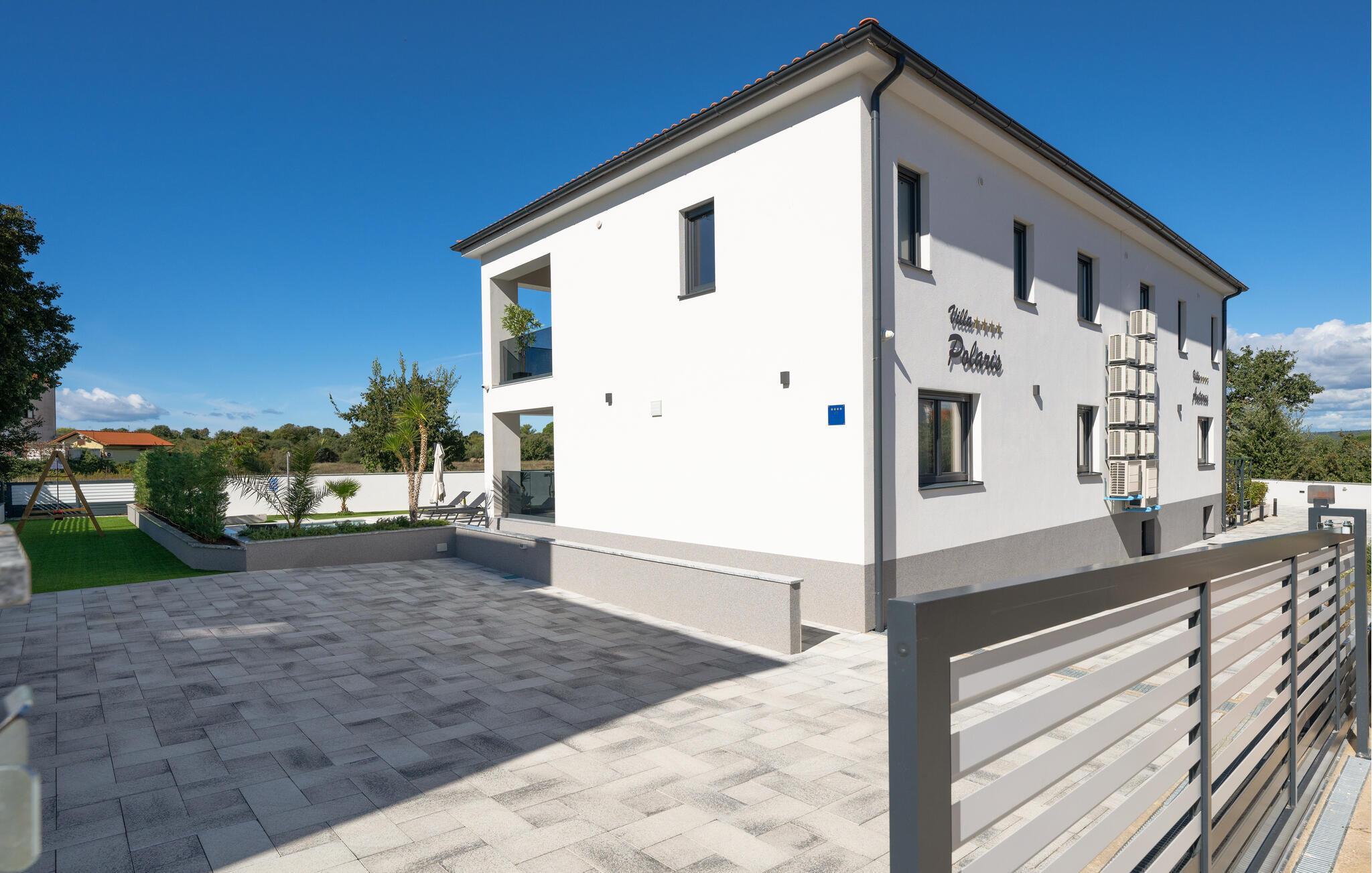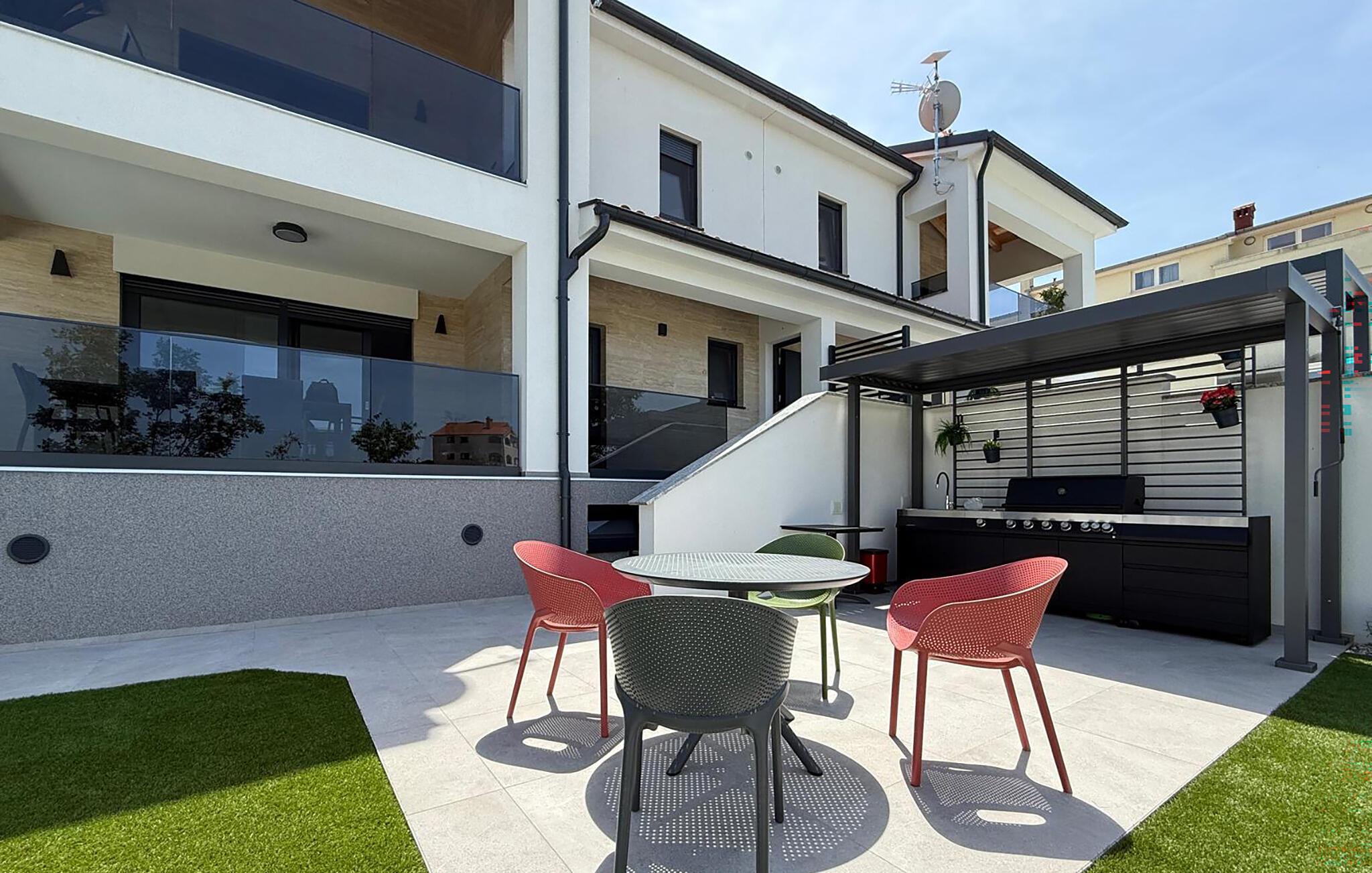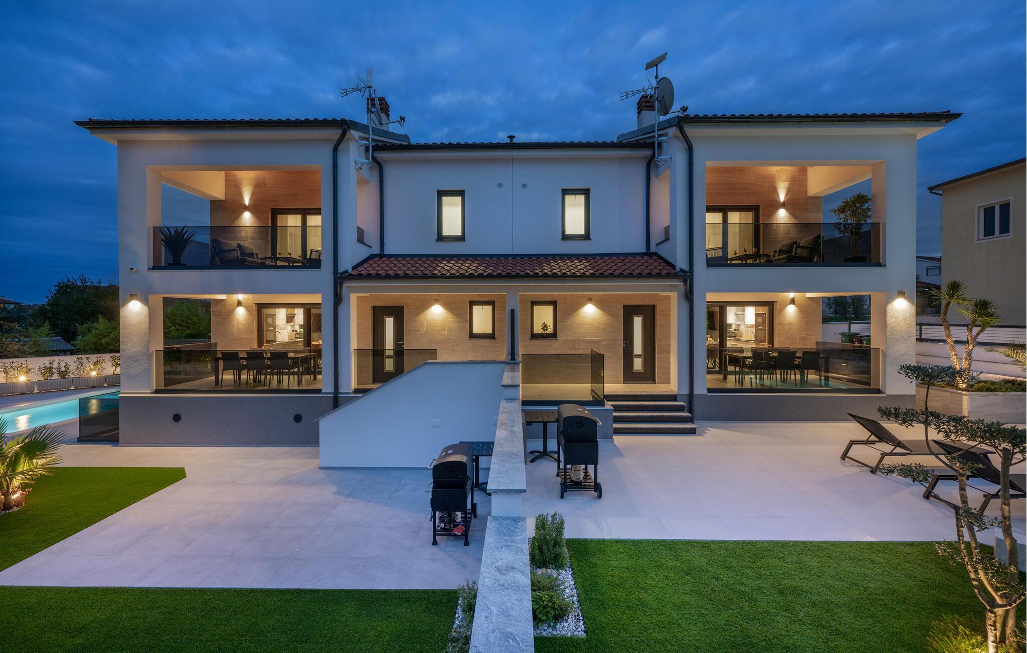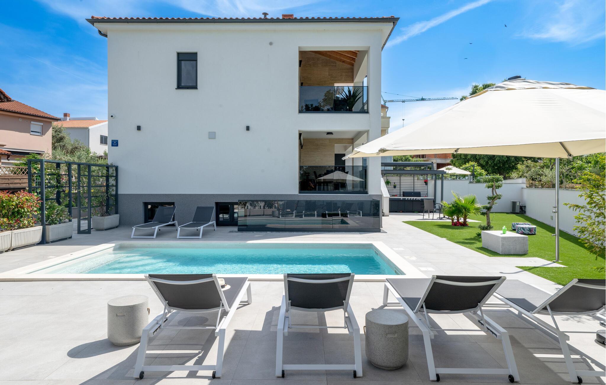 Jeres luksuriøse hus ved Istriens kyst tilbyder jer og jeres familie eller venner det ideelle tilflugtssted. Start dagen på den hyggelige terrasse, udstyret med et spisebord, som er ideelt til en morgenmad i det fri. Nyd udsigten til det smukke poolområde og lad roen falde over jer. Huset imponerer med et åbent og elegant boligkoncept. Gør jer det behageligt på den komfortable sofa og nyd jeres yndlingsfilm om aftenen. Den indbydende spisestue har plads til fælles måltider, og det veludstyrede køkken inspirerer til at tilberede lækre retter.