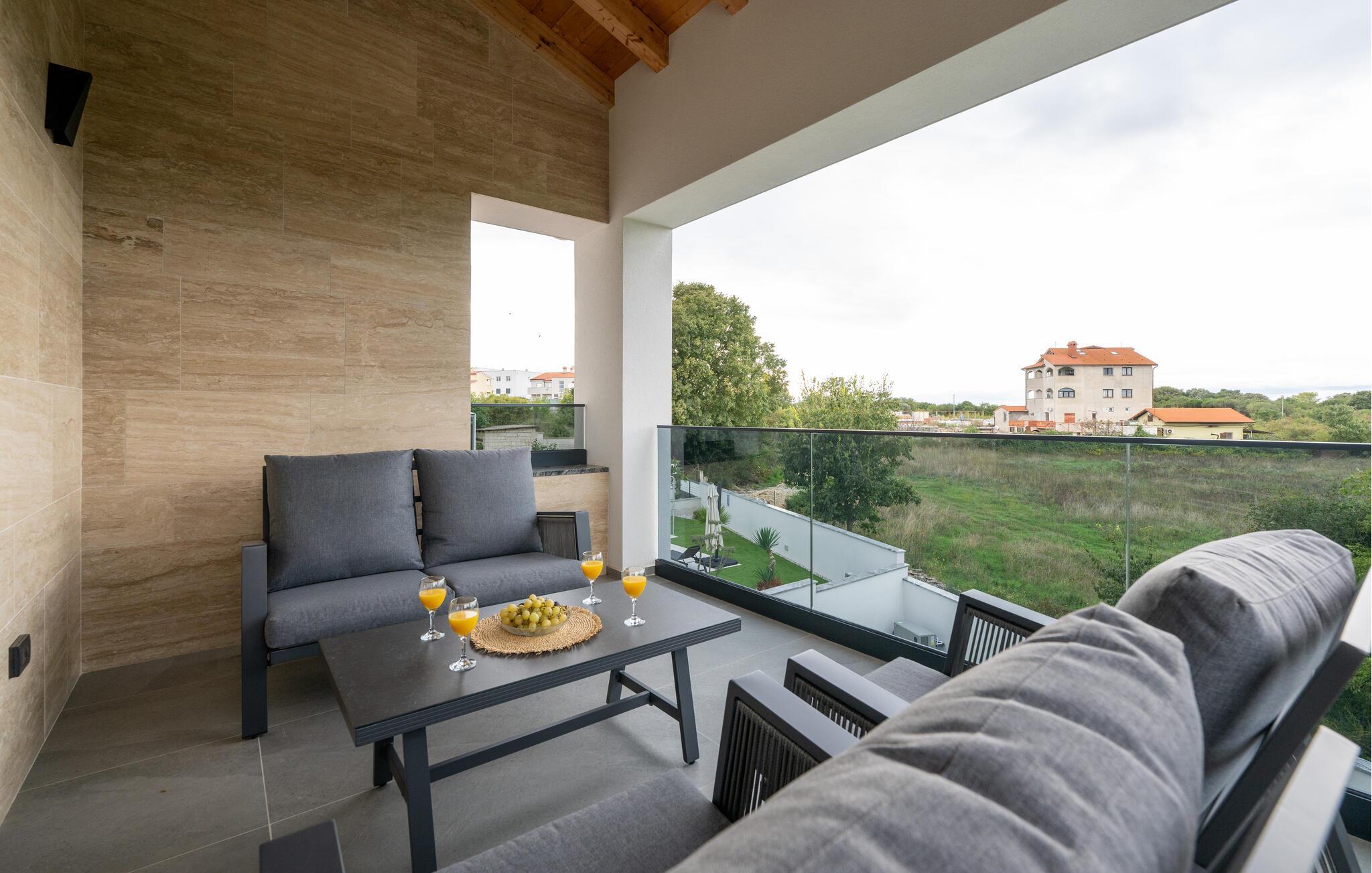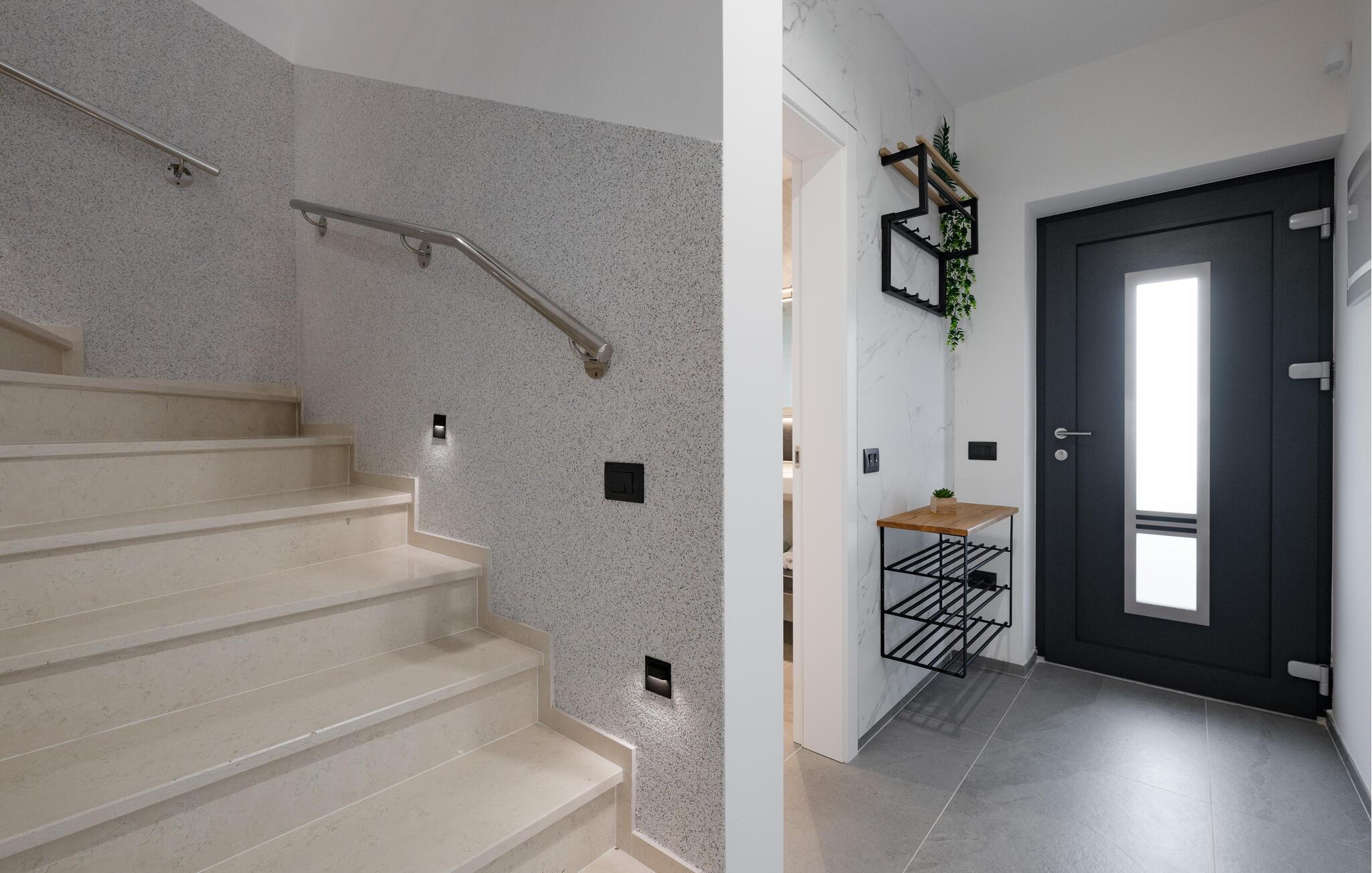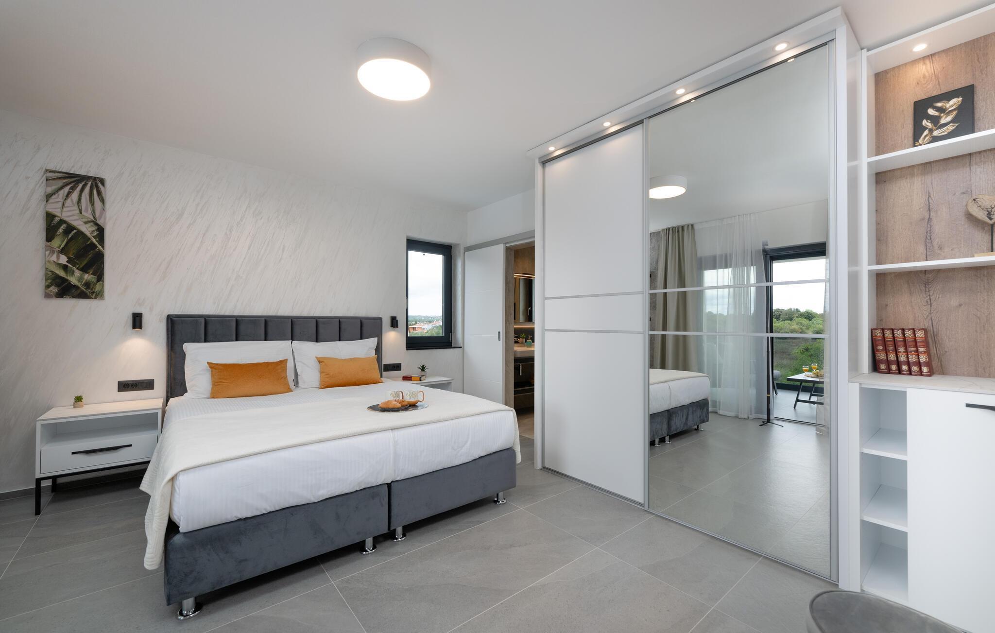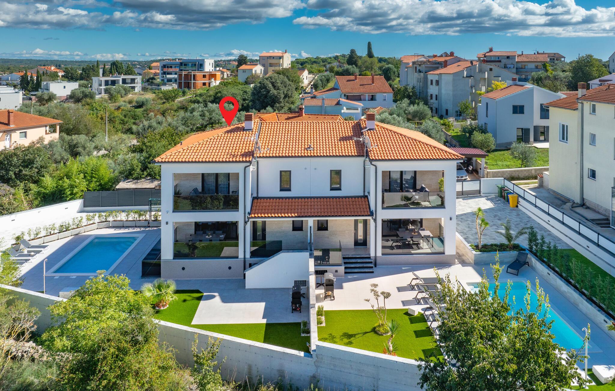 Jeres luksuriøse hus ved Istriens kyst tilbyder jer og jeres familie eller venner det ideelle tilflugtssted. Start dagen på den hyggelige terrasse, udstyret med et spisebord, som er ideelt til en morgenmad i det fri. Nyd udsigten til det smukke poolområde og lad roen falde over jer. Huset imponerer med et åbent og elegant boligkoncept. Gør jer det behageligt på den komfortable sofa og nyd jeres yndlingsfilm om aftenen. Den indbydende spisestue har plads til fælles måltider, og det veludstyrede køkken inspirerer til at tilberede lækre retter.
