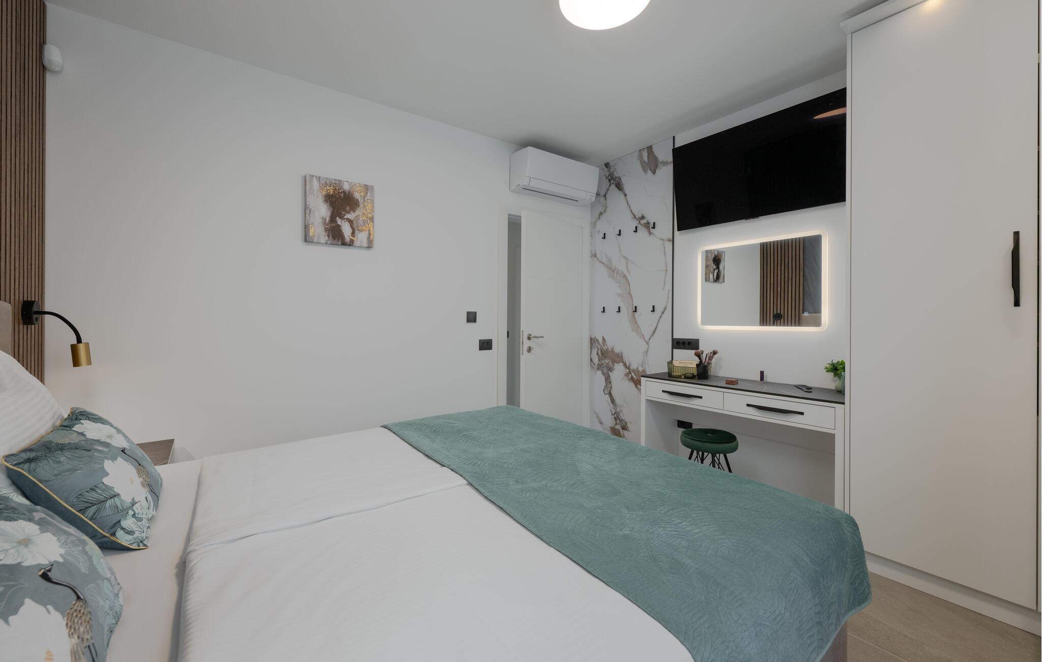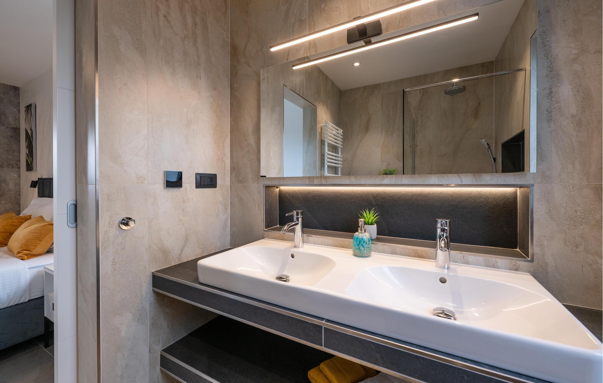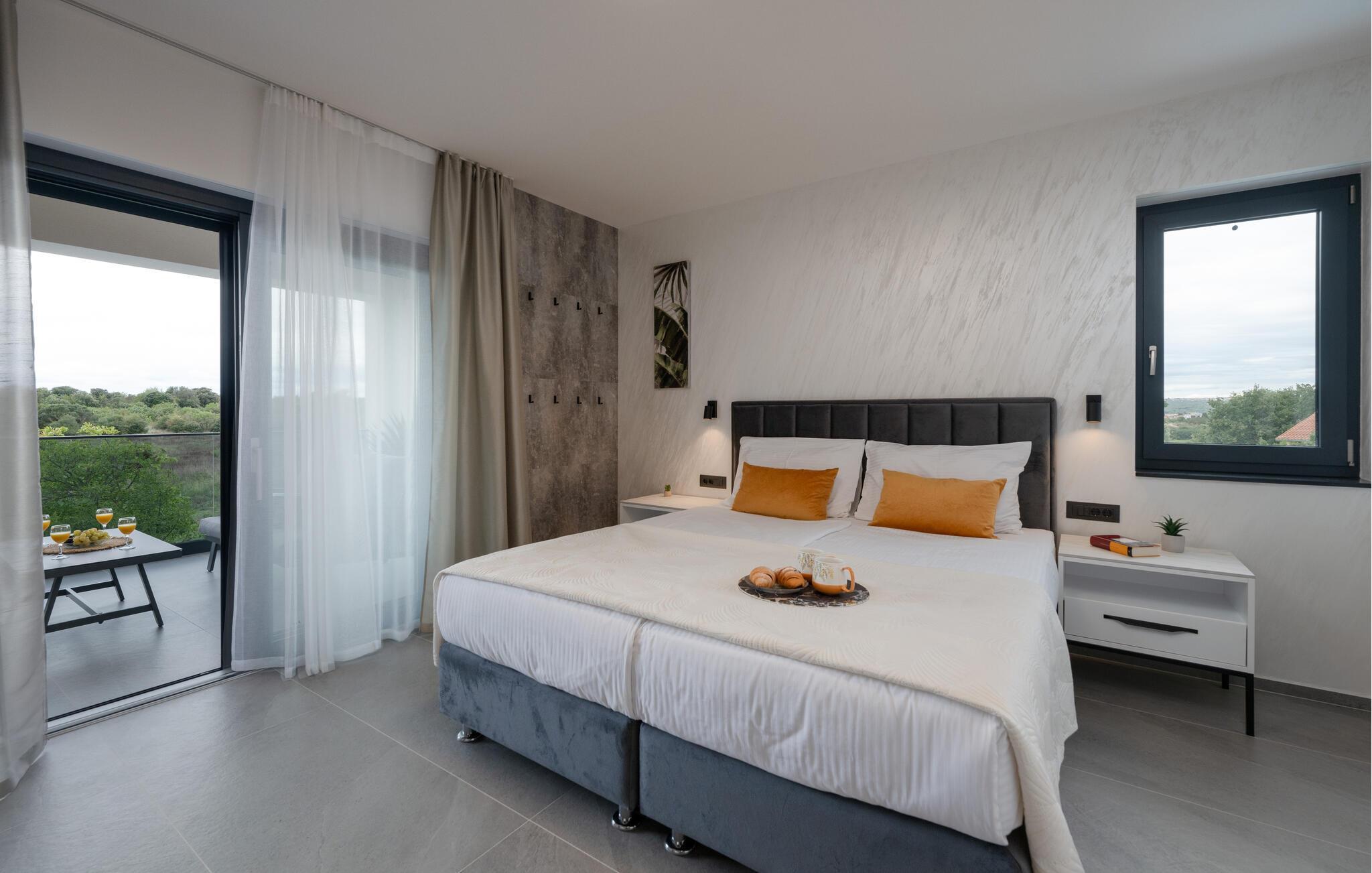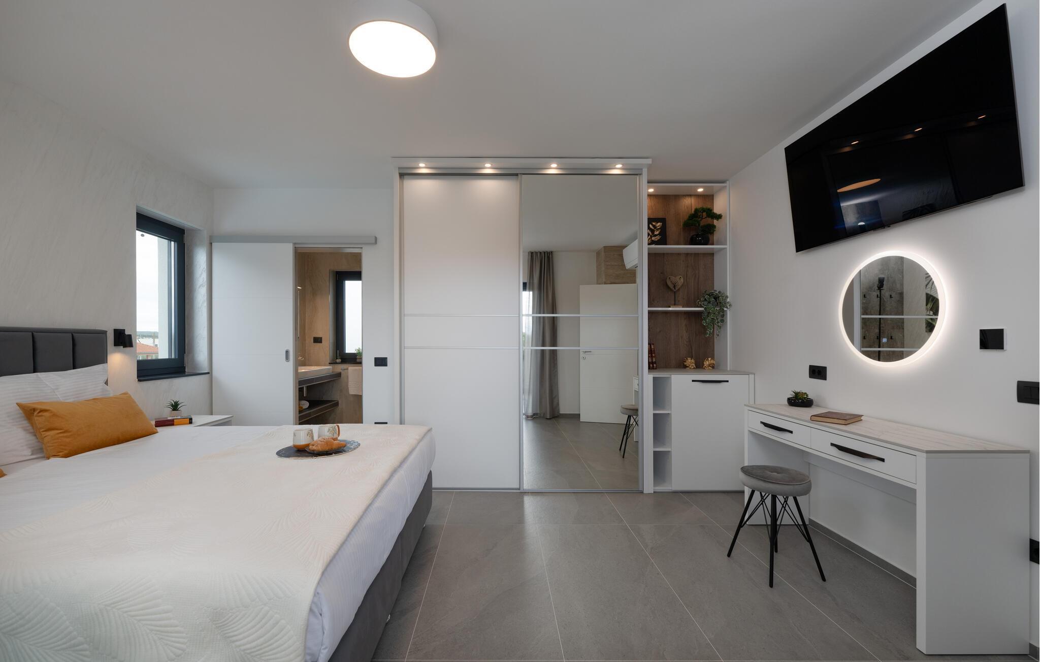 Jeres luksuriøse hus ved Istriens kyst tilbyder jer og jeres familie eller venner det ideelle tilflugtssted. Start dagen på den hyggelige terrasse, udstyret med et spisebord, som er ideelt til en morgenmad i det fri. Nyd udsigten til det smukke poolområde og lad roen falde over jer. Huset imponerer med et åbent og elegant boligkoncept. Gør jer det behageligt på den komfortable sofa og nyd jeres yndlingsfilm om aftenen. Den indbydende spisestue har plads til fælles måltider, og det veludstyrede køkken inspirerer til at tilberede lækre retter.