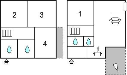Soveværelse 16m2 (nr. 3) - 1 Soveplads. (Enkeltseng(e)). 2 Sovepladser. (Dobbeltseng(e)).
