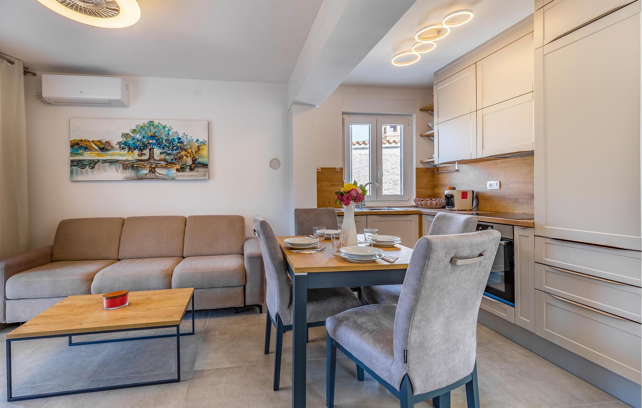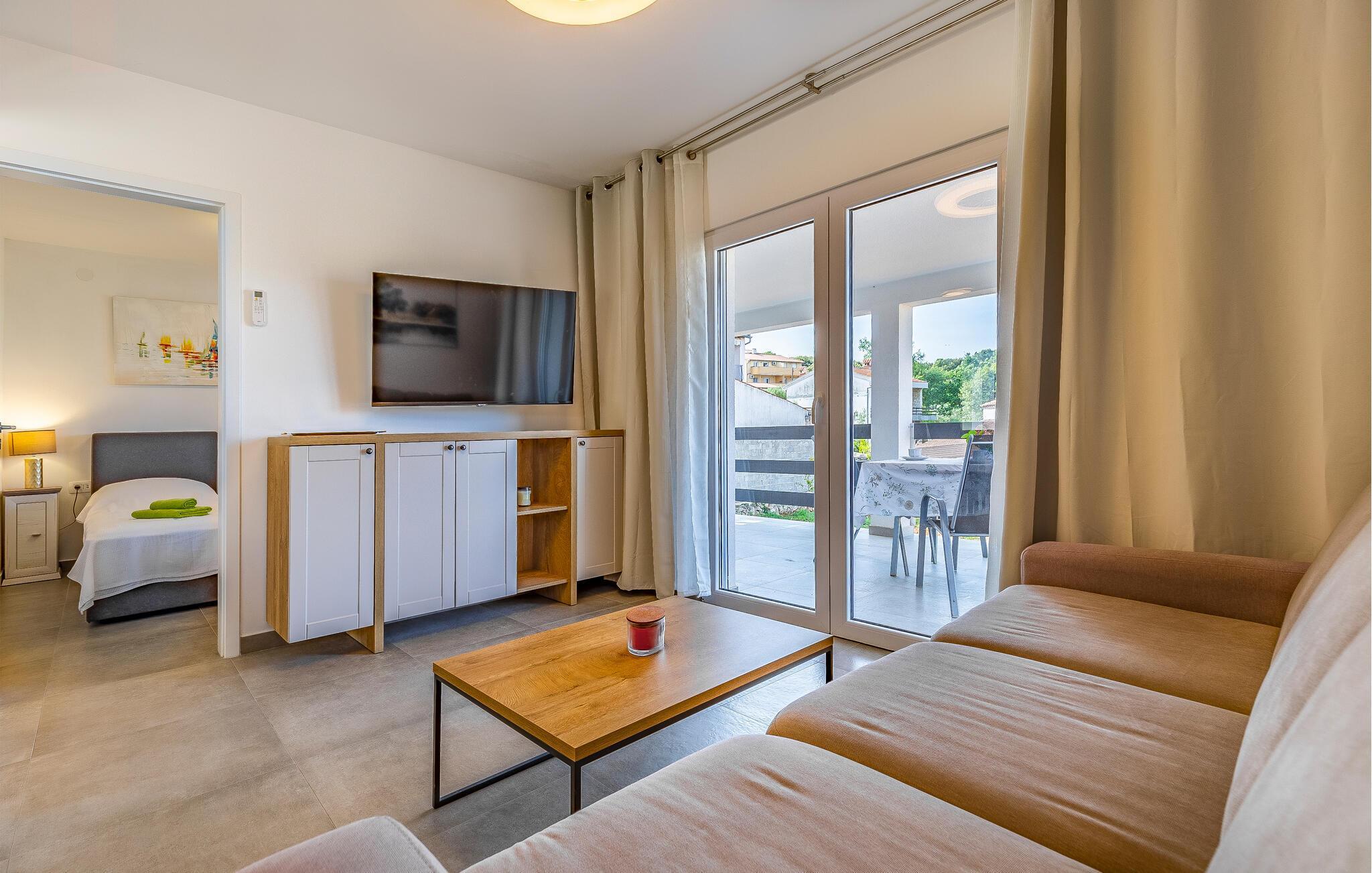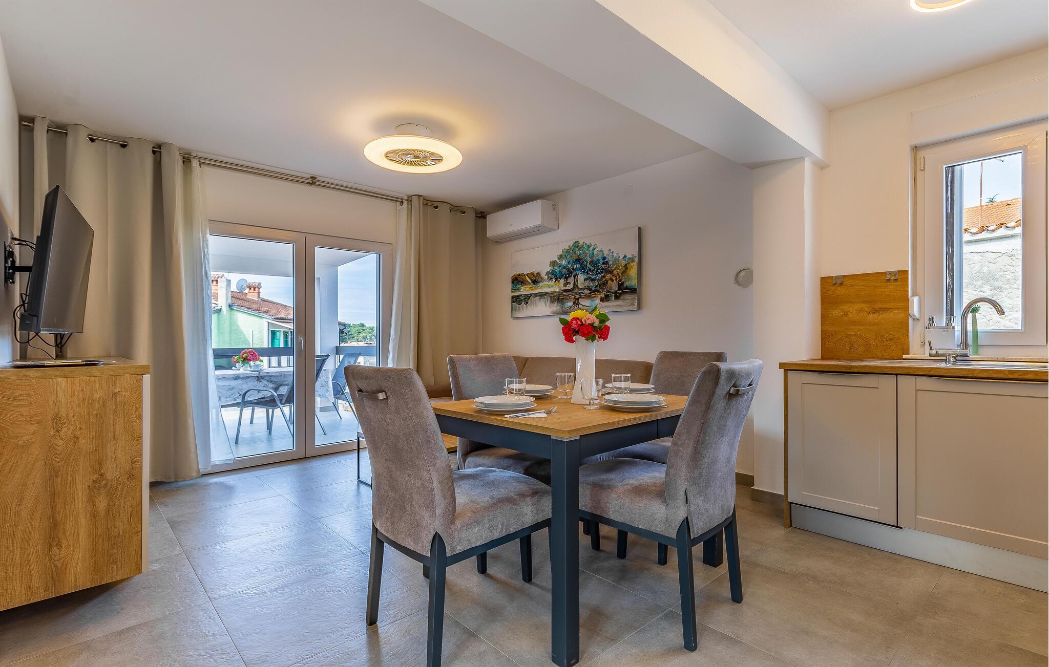 I bor i kort gåafstand fra strandene, hvor I kan glide ned i det glasklare vand. I kan også besøge den smukke naturpark ved Kap Kamenjak og sandstrandene i Medulin og Pjescana Uvala og nyde det rolige liv ved vandet. I kan også besøge Medulin og Pula, som er klassiske turistbyer med spændende seværdigheder. Besøg romerske amfiteater i Pula, hvor der finder mange gode koncerter sted om sommeren.