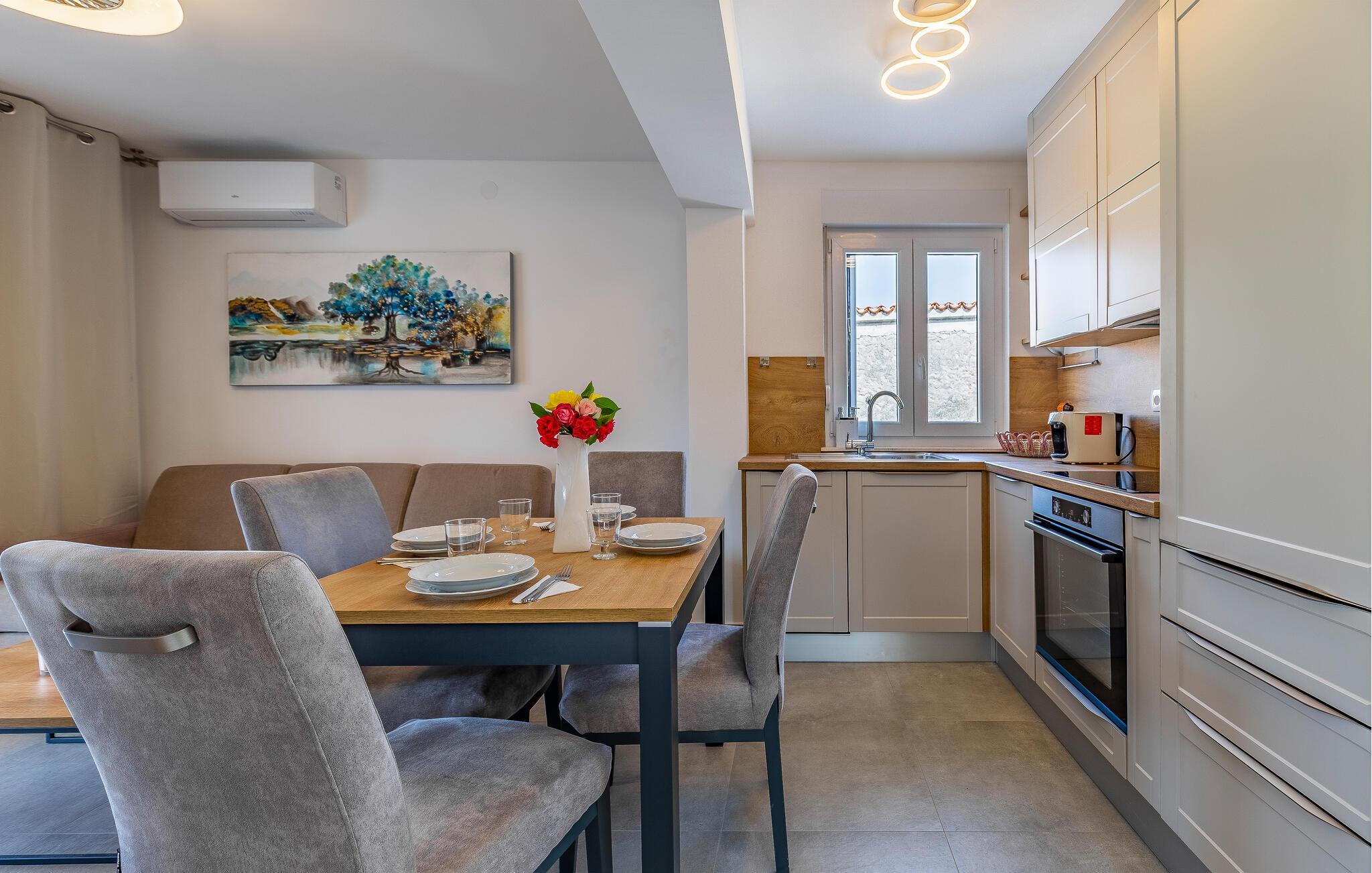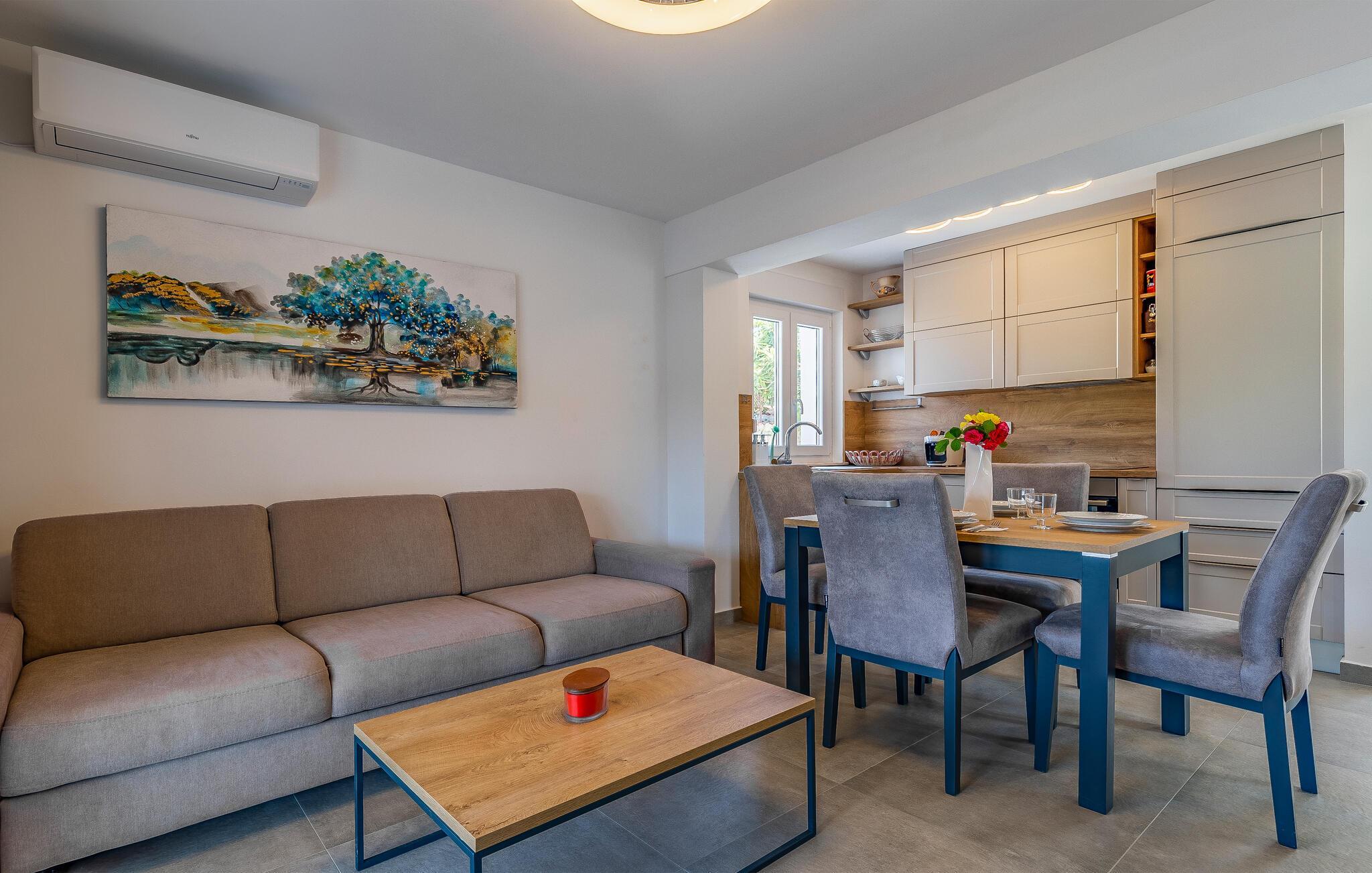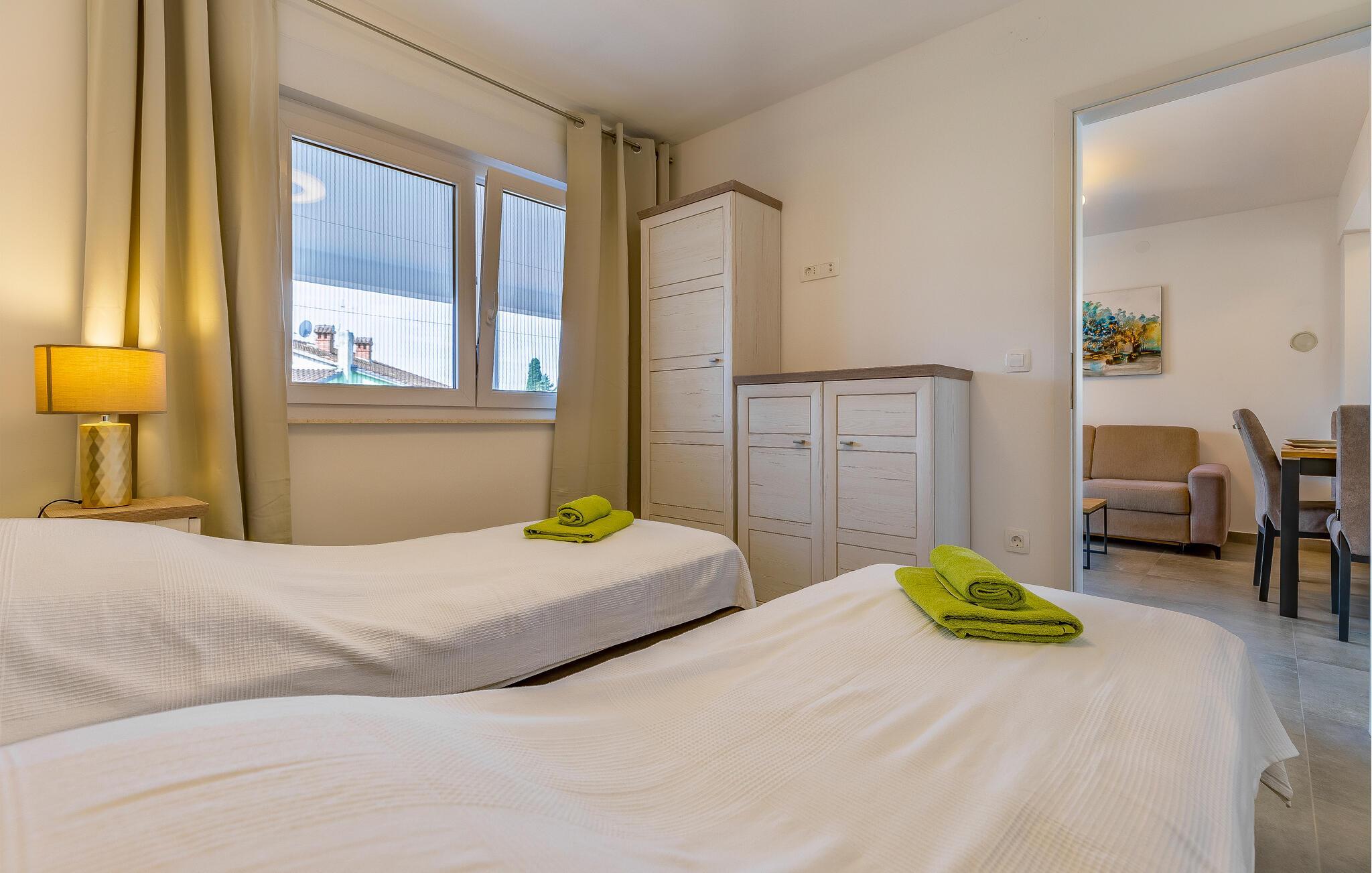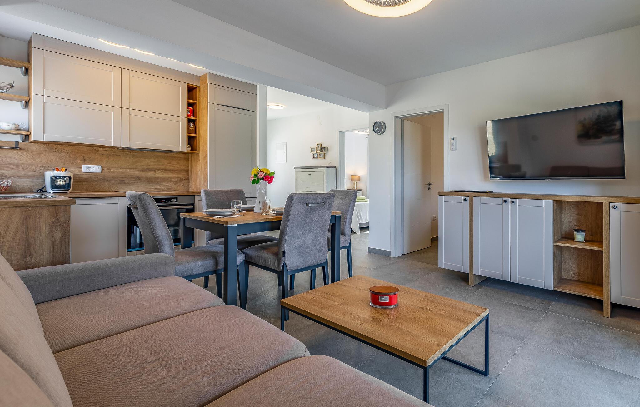 I bor i kort gåafstand fra strandene, hvor I kan glide ned i det glasklare vand. I kan også besøge den smukke naturpark ved Kap Kamenjak og sandstrandene i Medulin og Pjescana Uvala og nyde det rolige liv ved vandet. I kan også besøge Medulin og Pula, som er klassiske turistbyer med spændende seværdigheder. Besøg romerske amfiteater i Pula, hvor der finder mange gode koncerter sted om sommeren.