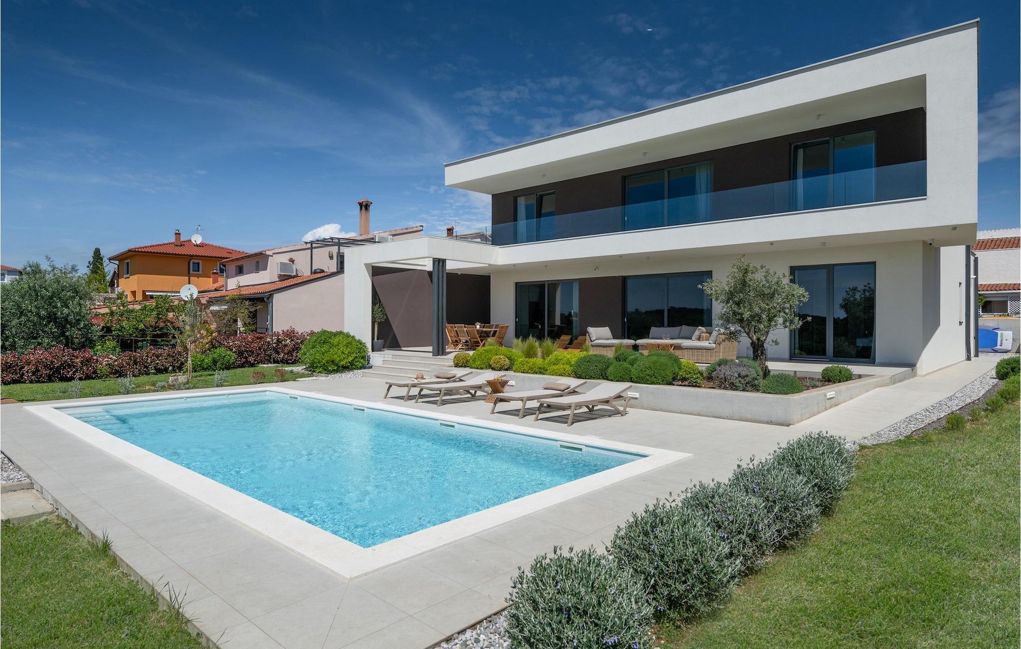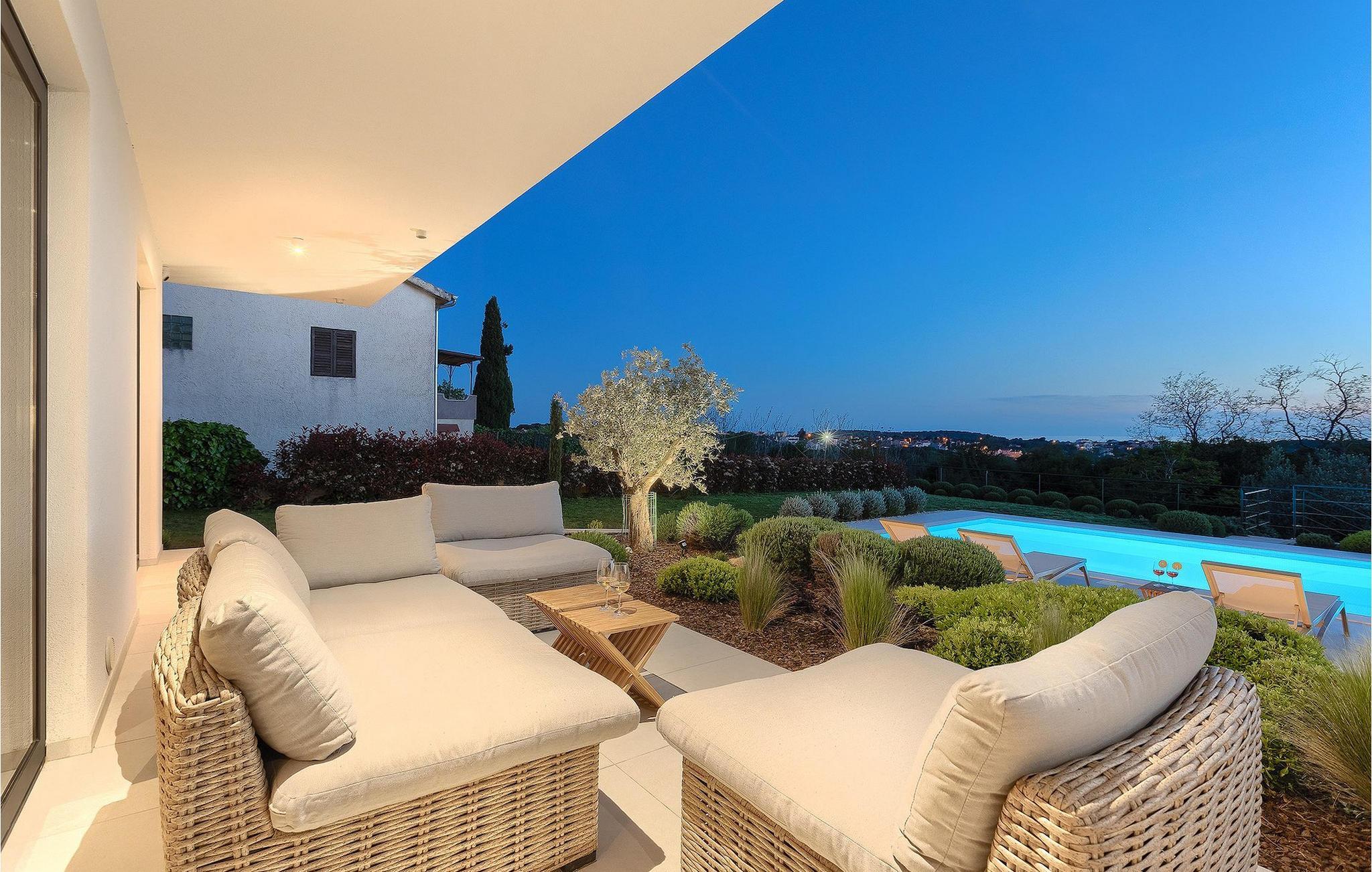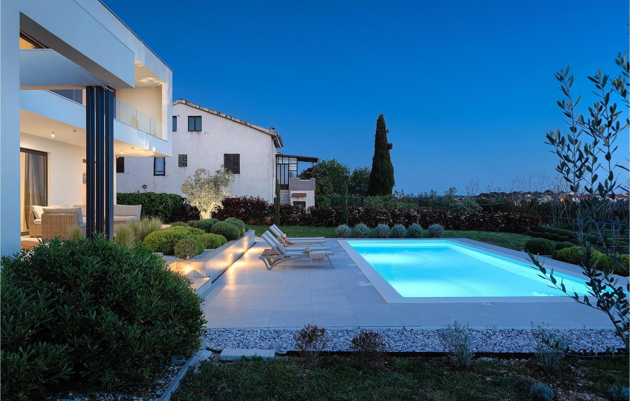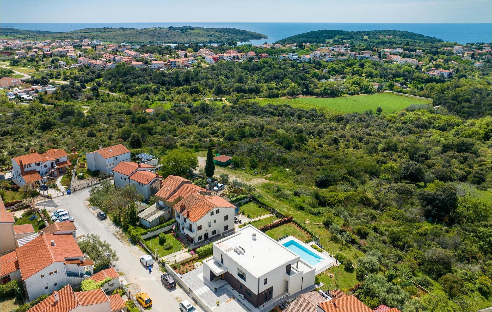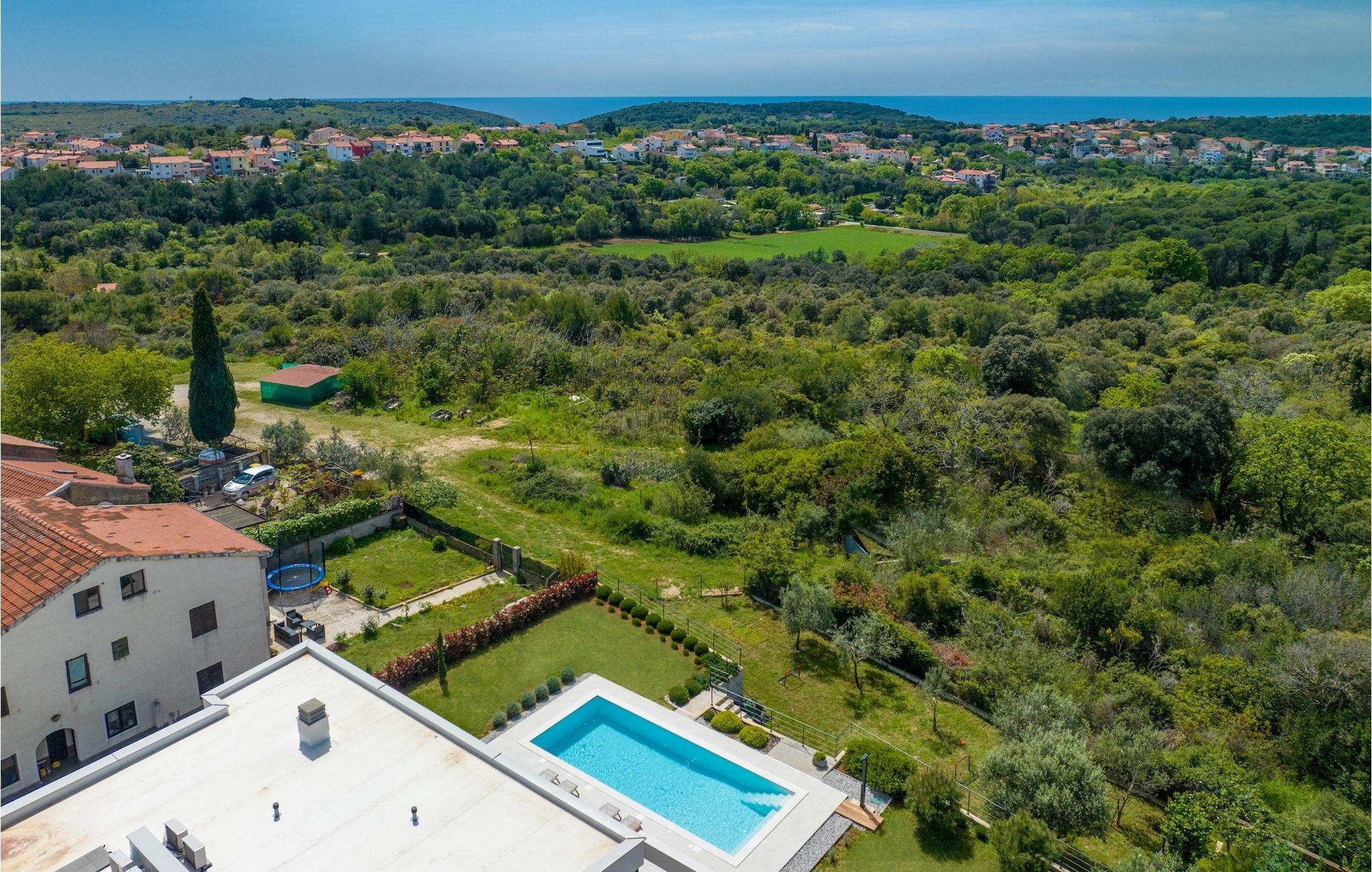 Den luksuriøse Villa Sealine nær byen Pula er ideel for dem, der søger en rolig flugt og afslapning. Villaen blev bygget i 2022, den ligger cirka 400 meter fra havet og kan rumme op til 8 personer i 4 soveværelser og 4 badeværelser fordelt på 2 etager. Dets faciliteter vil helt sikkert give gæsterne alt, hvad de har brug for, når de besøger Istrien. Villaens udeareal er et dejligt stort rum til fuld afslapning. Mens omgivet af masser af vegetation. Den 40m2 private pool med hydromassage giver gæsterne mulighed for at køle af på de varme sommerdage, og det vil være højdepunktet på børnenes ferie. Voksne kan slappe af ved poolen på de komfortable liggestole, slikke strålerne, mens de læser en god bog og nipper til en forfriskende drik. Eksperimenter med det kroatiske køkken ved at tilberede gode måltider på kulgrillen og dele dem med familie og venner i terrassens overdækkede spiseplads. Interiøret vil heller ikke skuffe, med et rent, lyst og moderne design i hele huset. En stor stue, et fuldt udstyret køkken med spiseplads, et separat toilet og et dejligt dobbeltværelse med eget badeværelse med bruser findes i stueetagen. På første sal er der yderligere 3 dobbeltværelser med eget badeværelse og terrasser med fantastisk udsigt. I hele villaen kan du nyde den fantastiske panoramaudsigt over omgivelserne, samt Adria. Villaen har også fuldt aircondition og har Wi-Fi-adgang. Villa Sealine er smukt designet, rummelig og veludstyret, så at bo i denne villa kan være det helt rigtige valg for at nyde en fantastisk tid i Istrien.