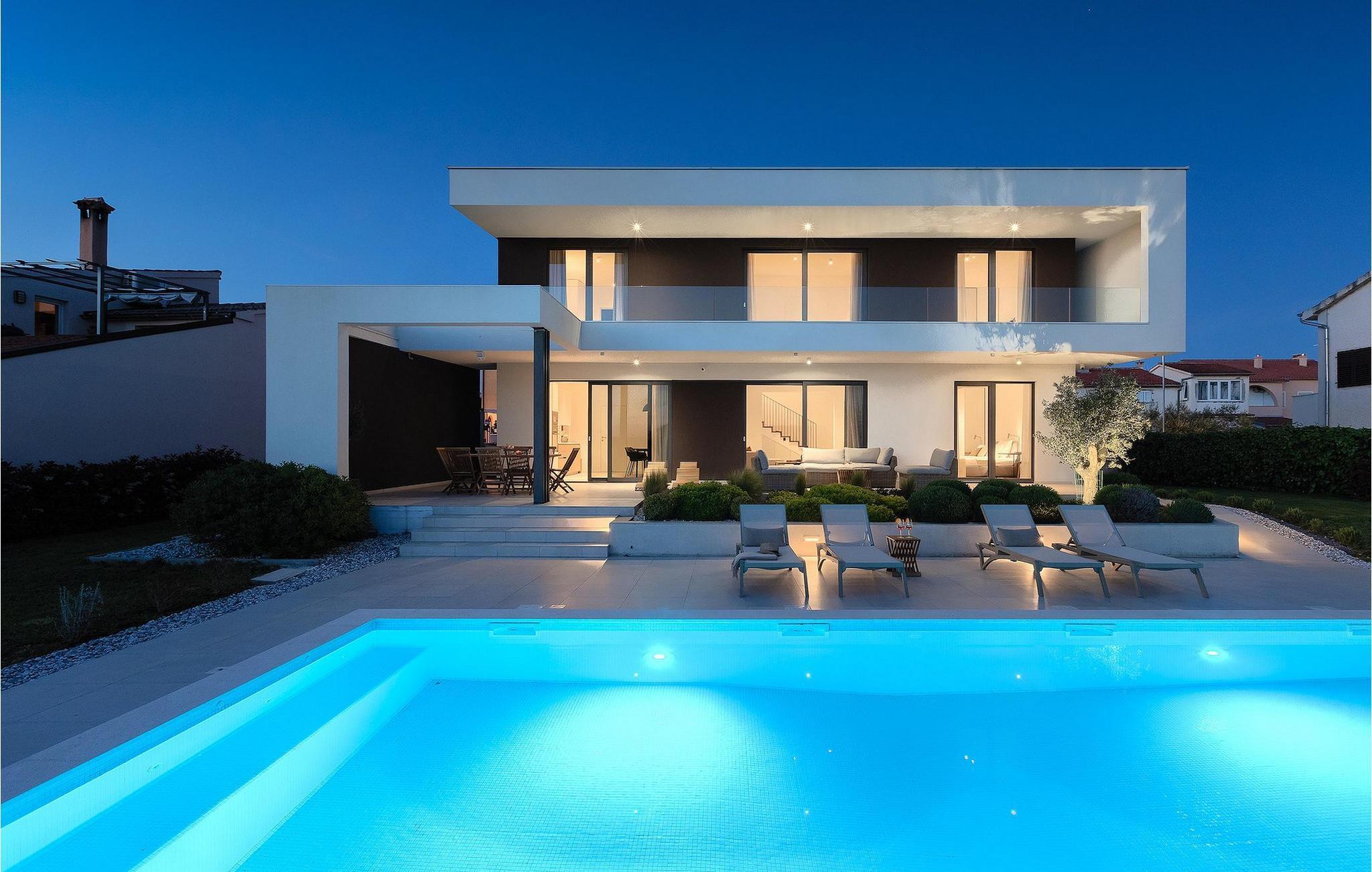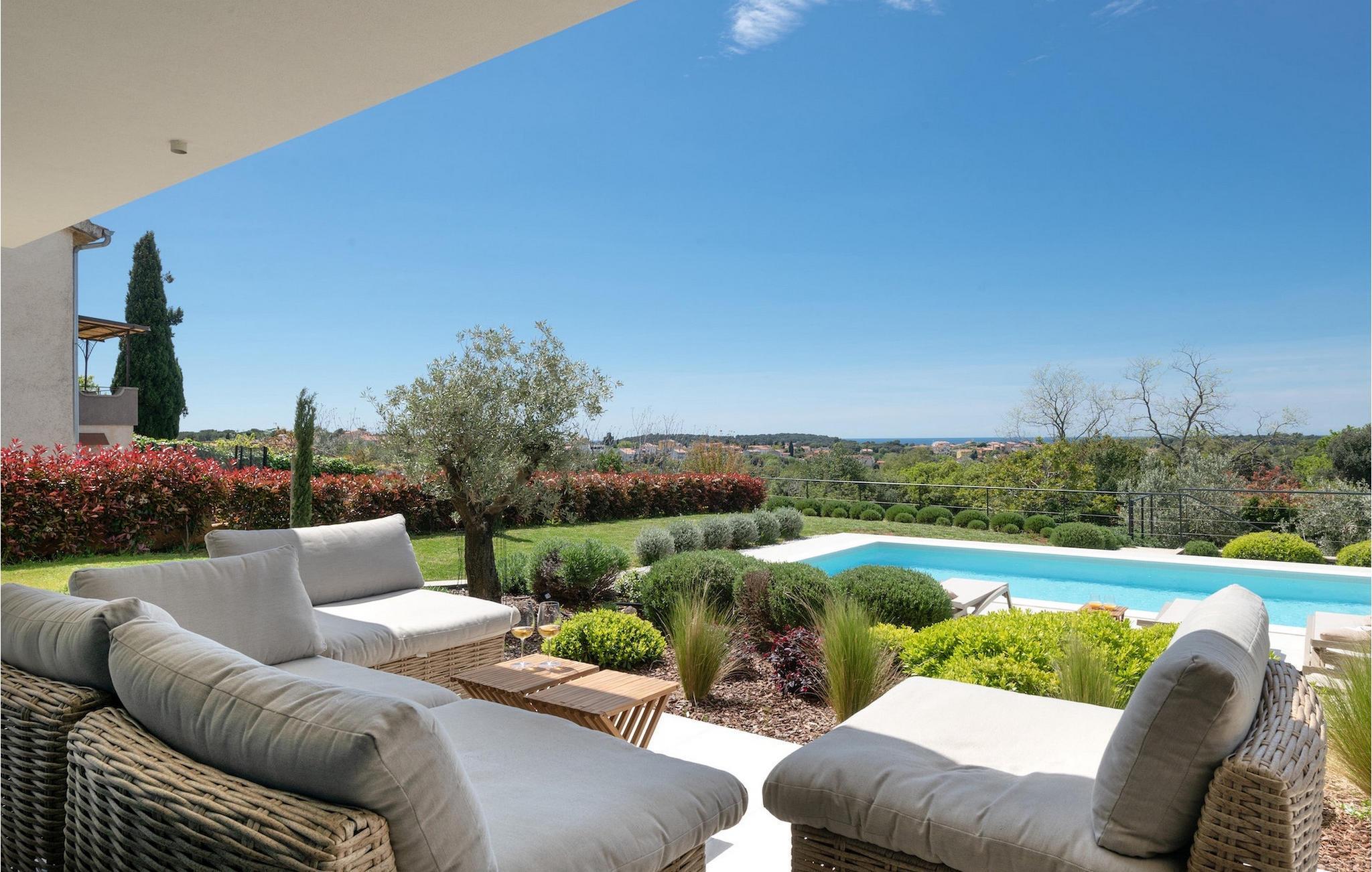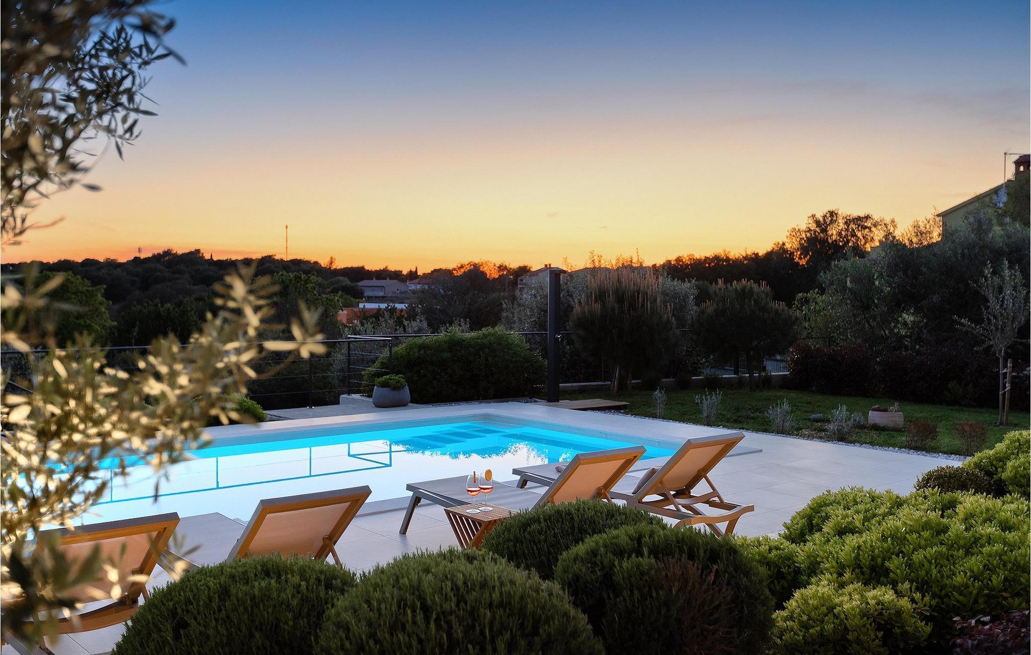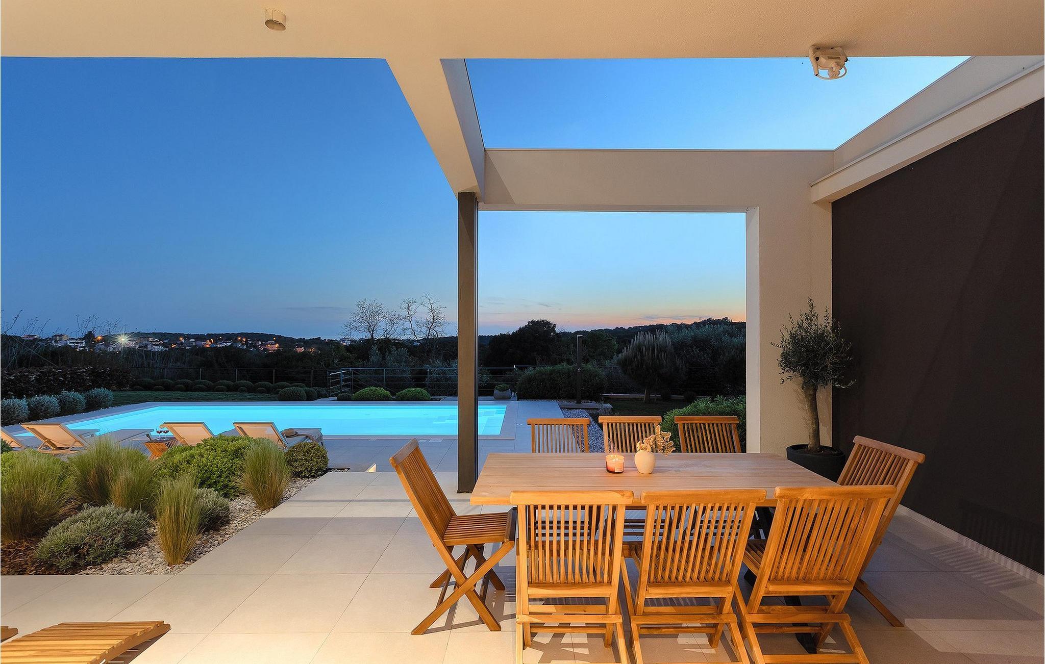 Den luksuriøse Villa Sealine nær byen Pula er ideel for dem, der søger en rolig flugt og afslapning. Villaen blev bygget i 2022, den ligger cirka 400 meter fra havet og kan rumme op til 8 personer i 4 soveværelser og 4 badeværelser fordelt på 2 etager. Dets faciliteter vil helt sikkert give gæsterne alt, hvad de har brug for, når de besøger Istrien. Villaens udeareal er et dejligt stort rum til fuld afslapning. Mens omgivet af masser af vegetation. Den 40m2 private pool med hydromassage giver gæsterne mulighed for at køle af på de varme sommerdage, og det vil være højdepunktet på børnenes ferie. Voksne kan slappe af ved poolen på de komfortable liggestole, slikke strålerne, mens de læser en god bog og nipper til en forfriskende drik. Eksperimenter med det kroatiske køkken ved at tilberede gode måltider på kulgrillen og dele dem med familie og venner i terrassens overdækkede spiseplads. Interiøret vil heller ikke skuffe, med et rent, lyst og moderne design i hele huset. En stor stue, et fuldt udstyret køkken med spiseplads, et separat toilet og et dejligt dobbeltværelse med eget badeværelse med bruser findes i stueetagen. På første sal er der yderligere 3 dobbeltværelser med eget badeværelse og terrasser med fantastisk udsigt. I hele villaen kan du nyde den fantastiske panoramaudsigt over omgivelserne, samt Adria. Villaen har også fuldt aircondition og har Wi-Fi-adgang. Villa Sealine er smukt designet, rummelig og veludstyret, så at bo i denne villa kan være det helt rigtige valg for at nyde en fantastisk tid i Istrien.
