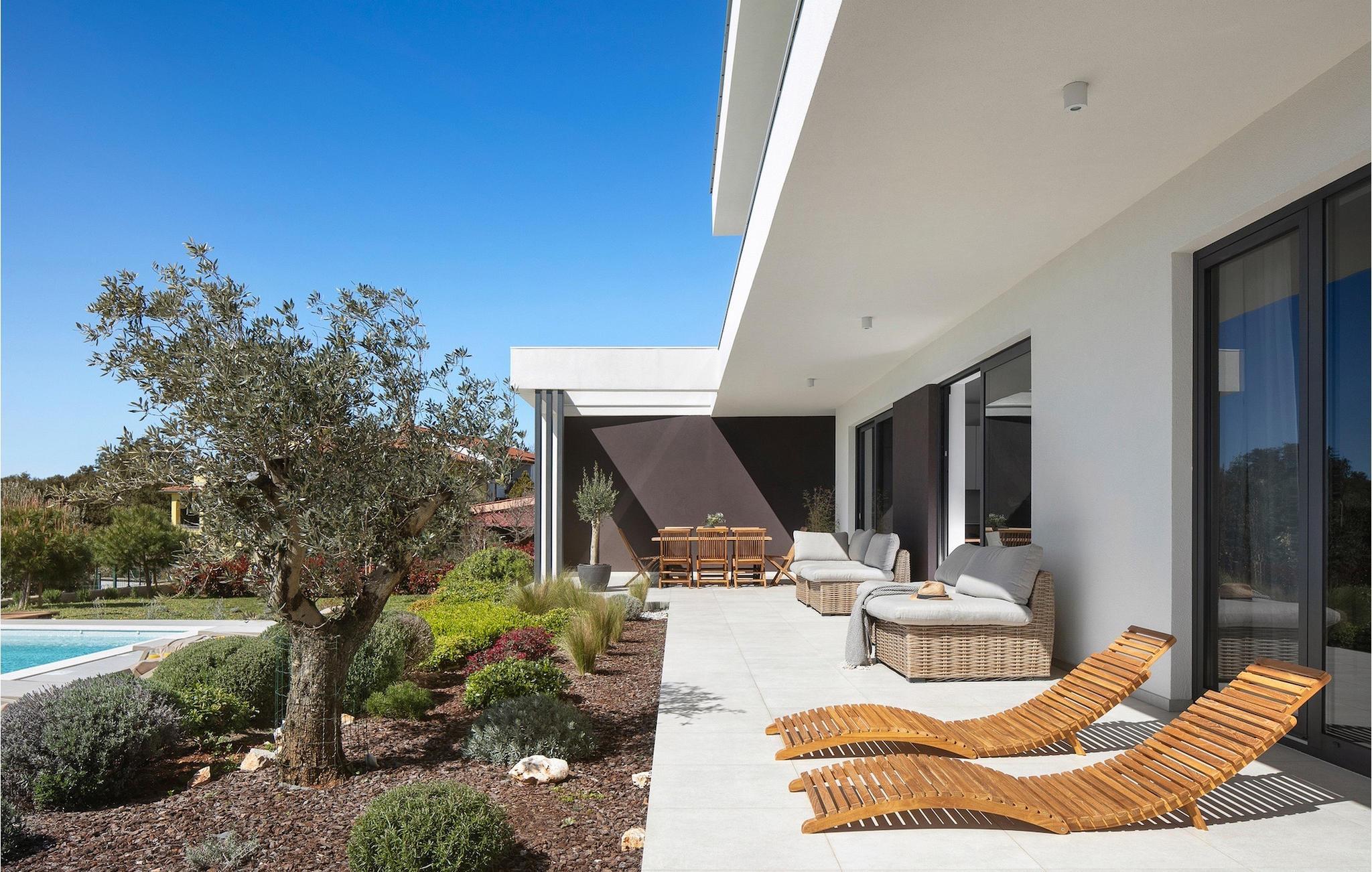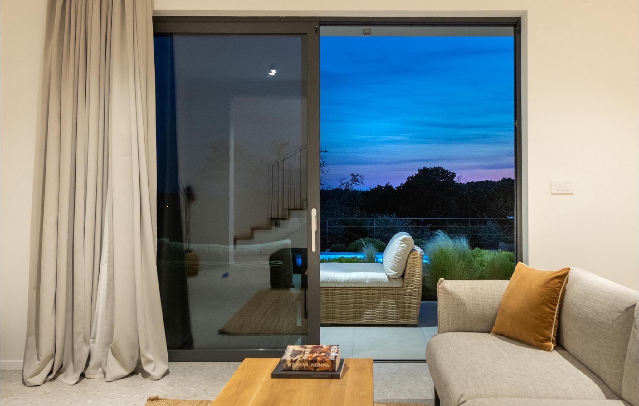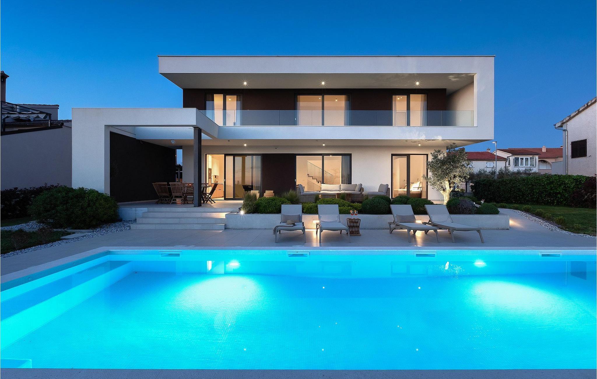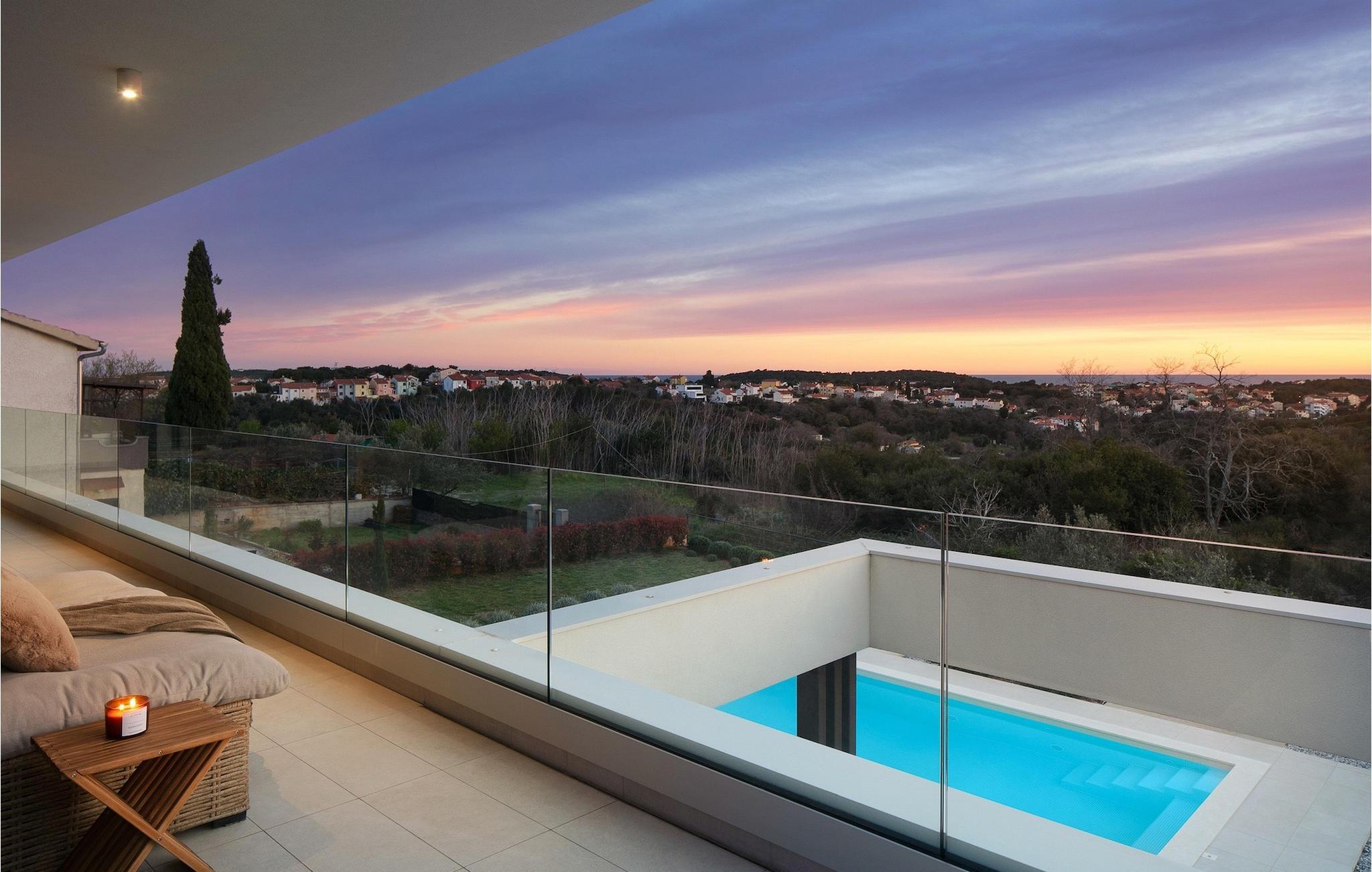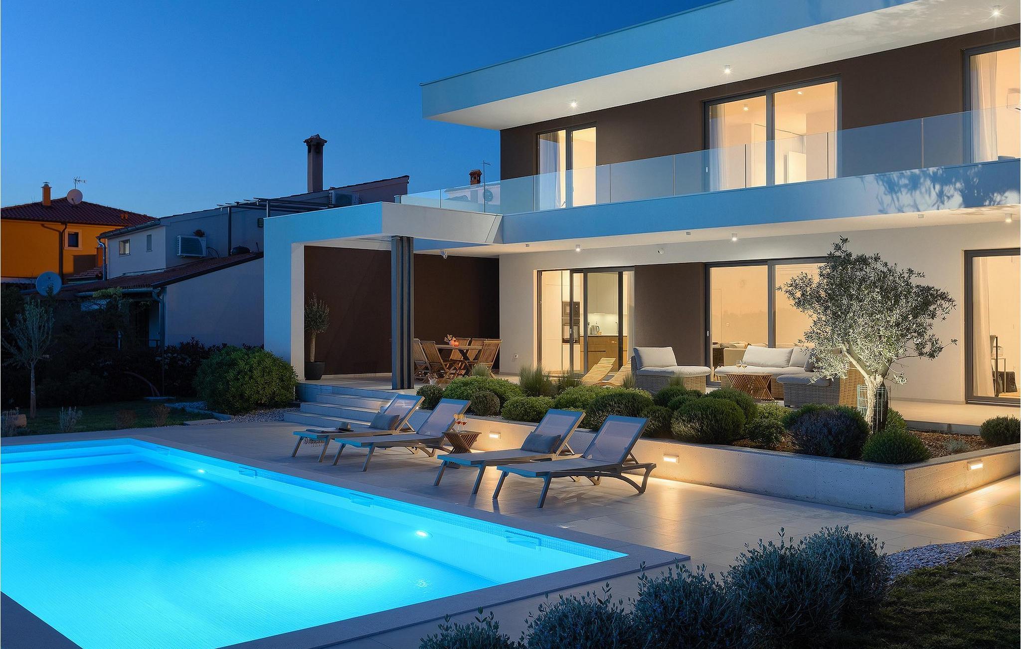 Den luksuriøse Villa Sealine nær byen Pula er ideel for dem, der søger en rolig flugt og afslapning. Villaen blev bygget i 2022, den ligger cirka 400 meter fra havet og kan rumme op til 8 personer i 4 soveværelser og 4 badeværelser fordelt på 2 etager. Dets faciliteter vil helt sikkert give gæsterne alt, hvad de har brug for, når de besøger Istrien. Villaens udeareal er et dejligt stort rum til fuld afslapning. Mens omgivet af masser af vegetation. Den 40m2 private pool med hydromassage giver gæsterne mulighed for at køle af på de varme sommerdage, og det vil være højdepunktet på børnenes ferie. Voksne kan slappe af ved poolen på de komfortable liggestole, slikke strålerne, mens de læser en god bog og nipper til en forfriskende drik. Eksperimenter med det kroatiske køkken ved at tilberede gode måltider på kulgrillen og dele dem med familie og venner i terrassens overdækkede spiseplads. Interiøret vil heller ikke skuffe, med et rent, lyst og moderne design i hele huset. En stor stue, et fuldt udstyret køkken med spiseplads, et separat toilet og et dejligt dobbeltværelse med eget badeværelse med bruser findes i stueetagen. På første sal er der yderligere 3 dobbeltværelser med eget badeværelse og terrasser med fantastisk udsigt. I hele villaen kan du nyde den fantastiske panoramaudsigt over omgivelserne, samt Adria. Villaen har også fuldt aircondition og har Wi-Fi-adgang. Villa Sealine er smukt designet, rummelig og veludstyret, så at bo i denne villa kan være det helt rigtige valg for at nyde en fantastisk tid i Istrien.