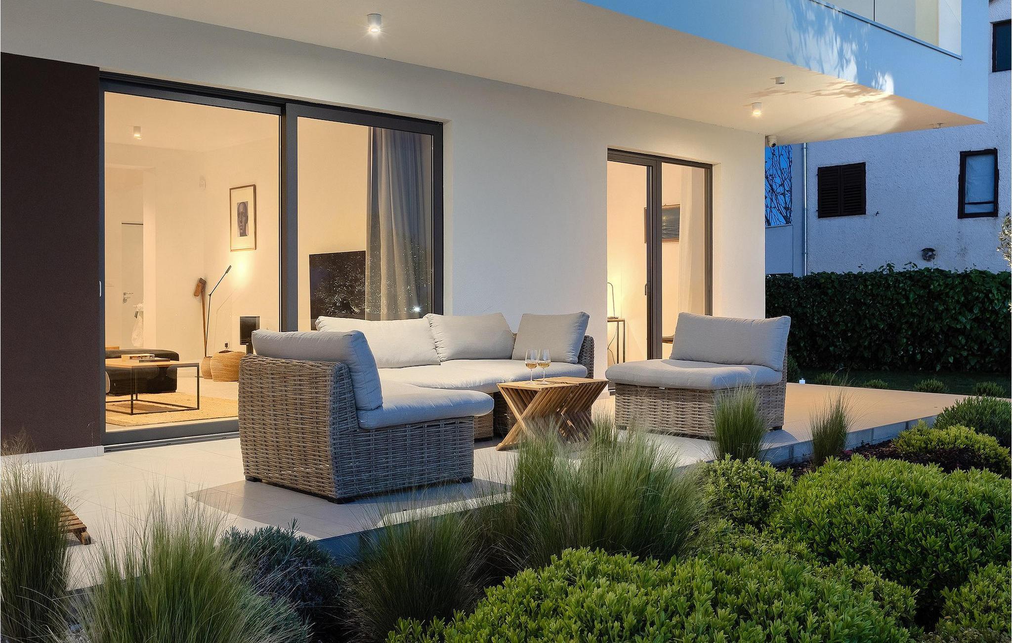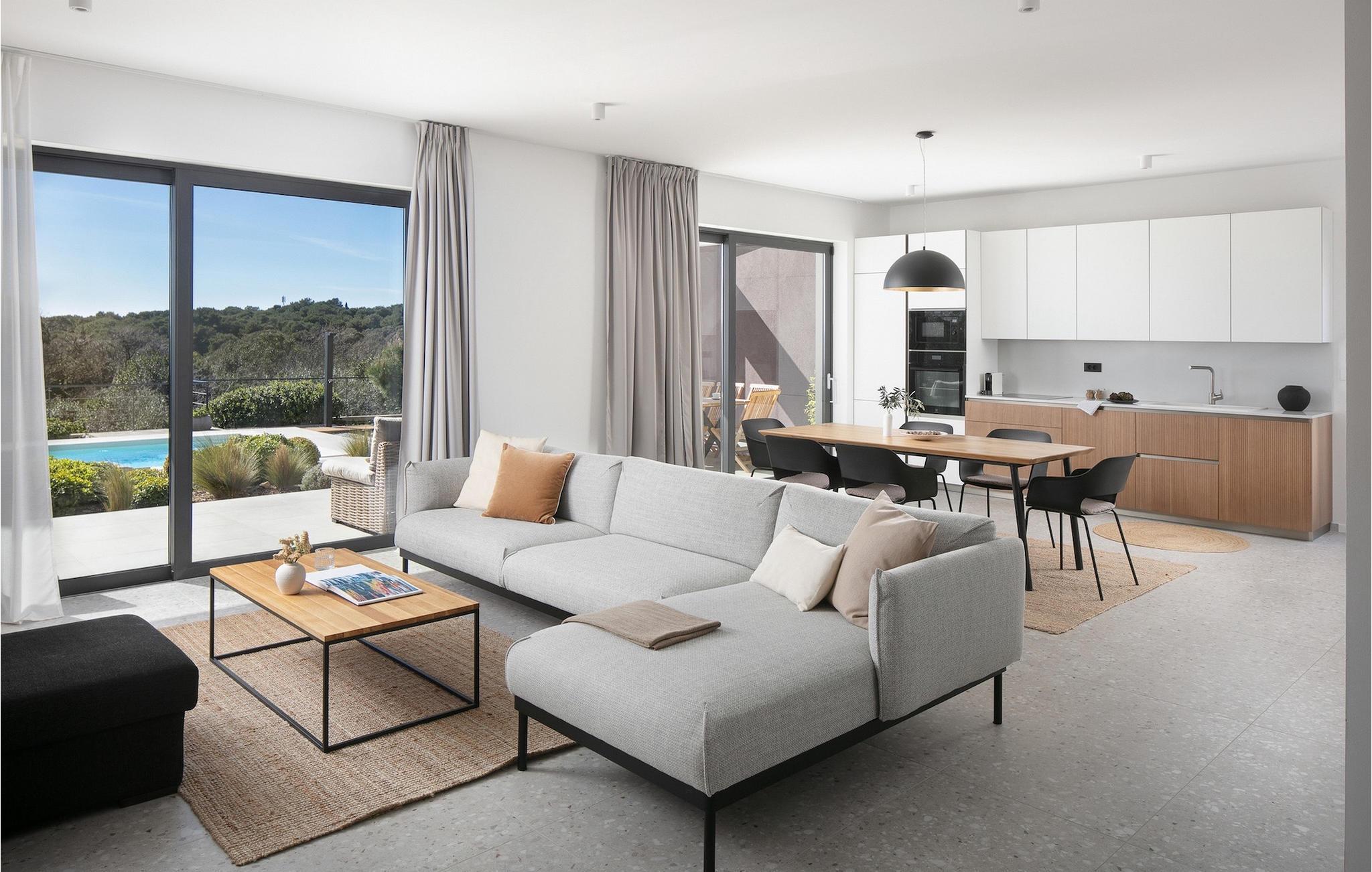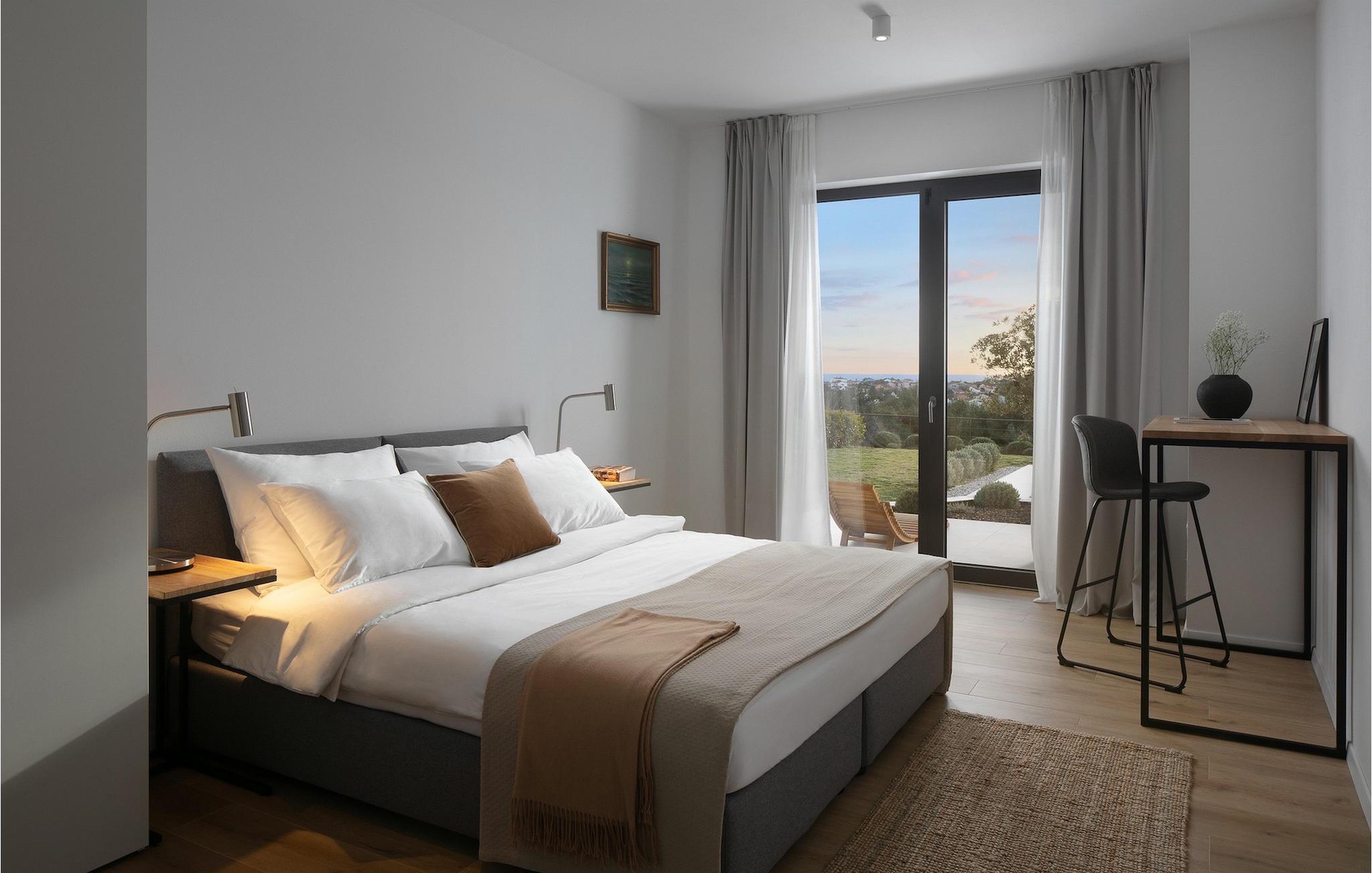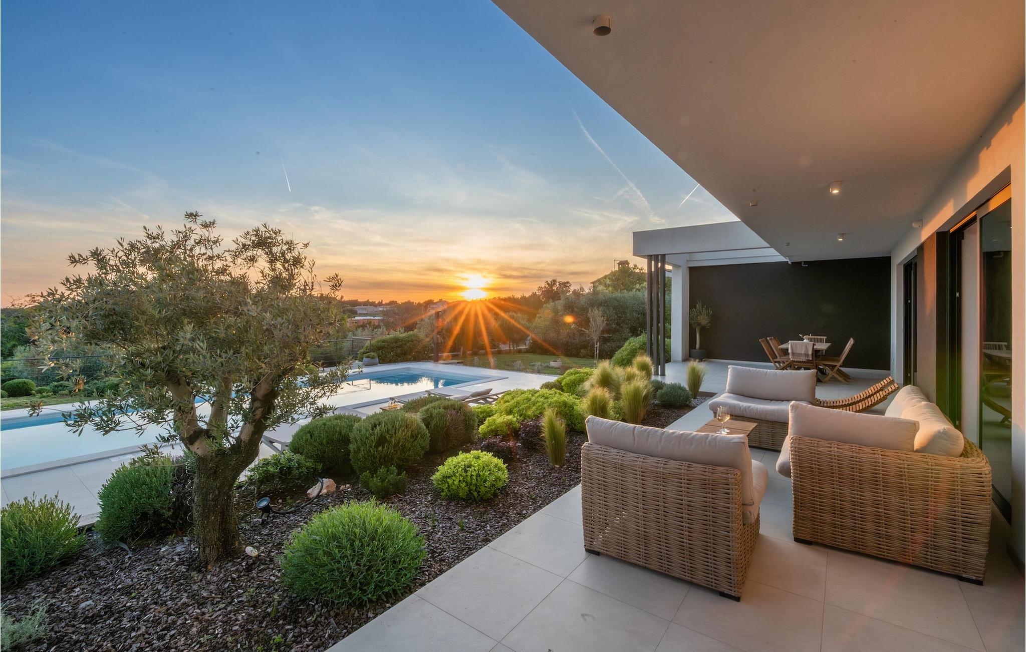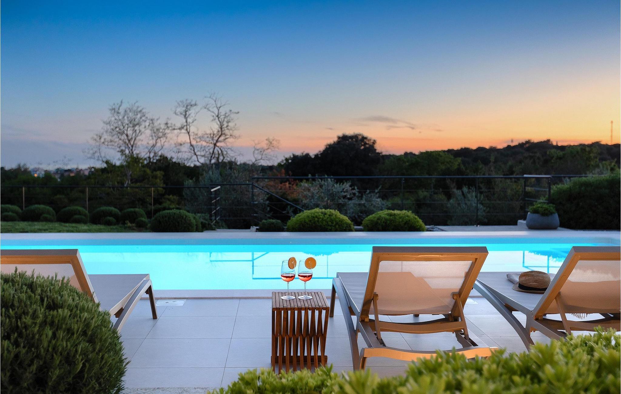 Den luksuriøse Villa Sealine nær byen Pula er ideel for dem, der søger en rolig flugt og afslapning. Villaen blev bygget i 2022, den ligger cirka 400 meter fra havet og kan rumme op til 8 personer i 4 soveværelser og 4 badeværelser fordelt på 2 etager. Dets faciliteter vil helt sikkert give gæsterne alt, hvad de har brug for, når de besøger Istrien. Villaens udeareal er et dejligt stort rum til fuld afslapning. Mens omgivet af masser af vegetation. Den 40m2 private pool med hydromassage giver gæsterne mulighed for at køle af på de varme sommerdage, og det vil være højdepunktet på børnenes ferie. Voksne kan slappe af ved poolen på de komfortable liggestole, slikke strålerne, mens de læser en god bog og nipper til en forfriskende drik. Eksperimenter med det kroatiske køkken ved at tilberede gode måltider på kulgrillen og dele dem med familie og venner i terrassens overdækkede spiseplads. Interiøret vil heller ikke skuffe, med et rent, lyst og moderne design i hele huset. En stor stue, et fuldt udstyret køkken med spiseplads, et separat toilet og et dejligt dobbeltværelse med eget badeværelse med bruser findes i stueetagen. På første sal er der yderligere 3 dobbeltværelser med eget badeværelse og terrasser med fantastisk udsigt. I hele villaen kan du nyde den fantastiske panoramaudsigt over omgivelserne, samt Adria. Villaen har også fuldt aircondition og har Wi-Fi-adgang. Villa Sealine er smukt designet, rummelig og veludstyret, så at bo i denne villa kan være det helt rigtige valg for at nyde en fantastisk tid i Istrien.