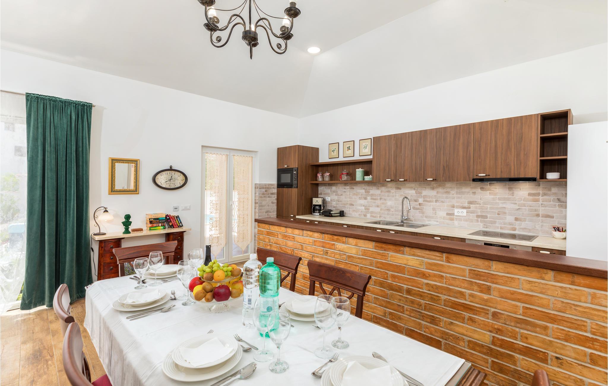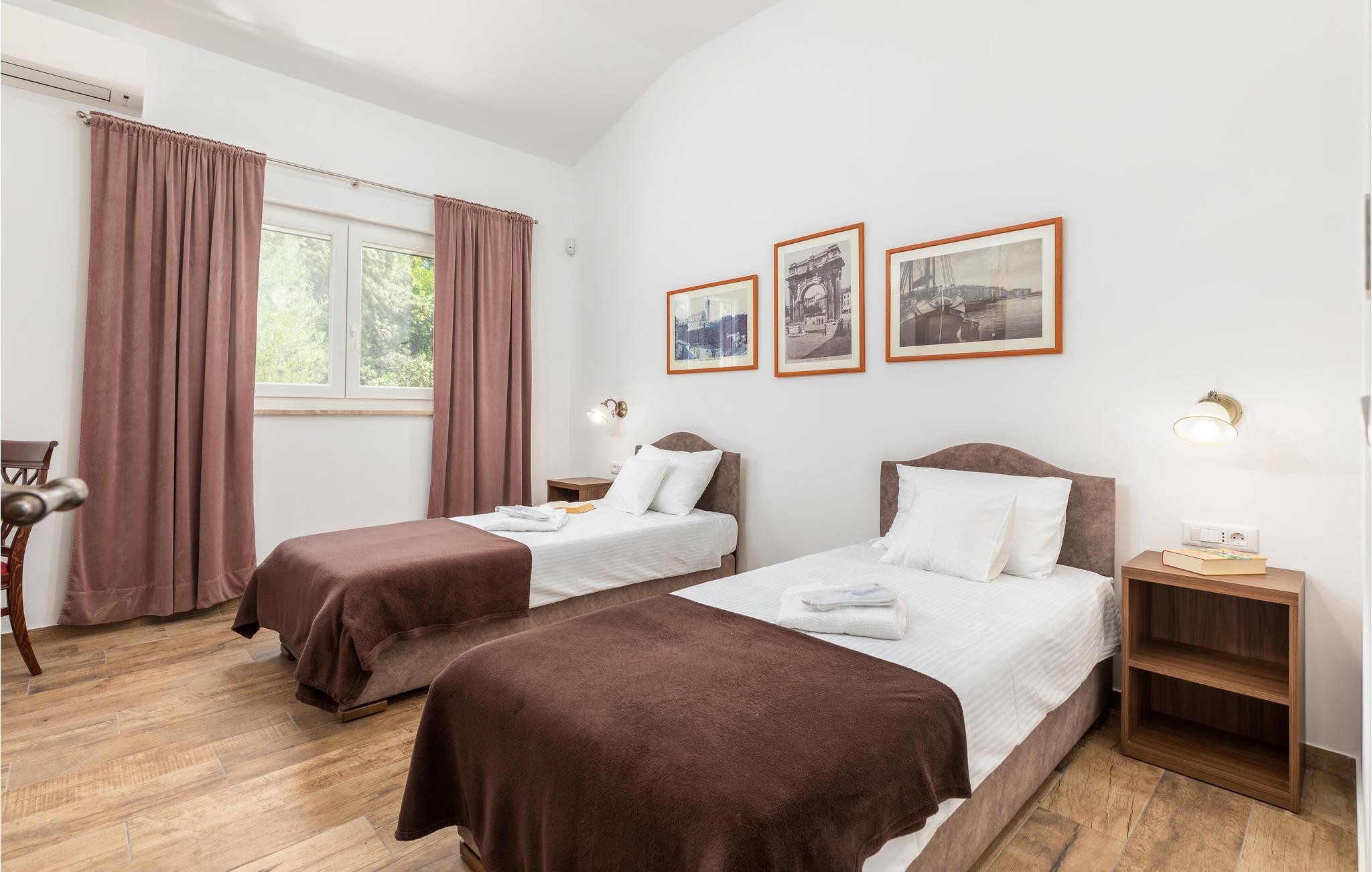 Dette skønne feriehus med swimmingpool byder velkommen mellem Pula og Fazana. Tilbring en afslappende ferie med jeres udvidede familie eller venner i dette smagfulde og indbydende feriehus. Her kan I føle jer godt tilpas i den rummelige stue eller nyde jeres fred og ro i soveværelserne med private badeværelser. På kølige aftener kan I være vært for en filmaften på sofaen eller spille kort ved spisebordet. Start morgenen med morgenmad på den skyggefulde terrasse og hop derefter i poolen for en kølig dukkert. Nyd mange timer i solen og planlæg andre aktiviteter i området. Husets beliggenhed giver jer mange muligheder. Den nærmeste stenstrand ligger en kort køretur derfra. I kan også se frem til de smukke strande i Fazana og dykke ned i det krystalklare hav. Gå en tur gennem den maleriske kystby, besøg butikker og spis på byens restauranter. Besøg også Istriens hovedstad Pula. Byens historie går tilbage til antikken. Oplev det storslåede amfiteater, se Augustus-templet og Sergiernes bue samt byens museer og smukke kirker.