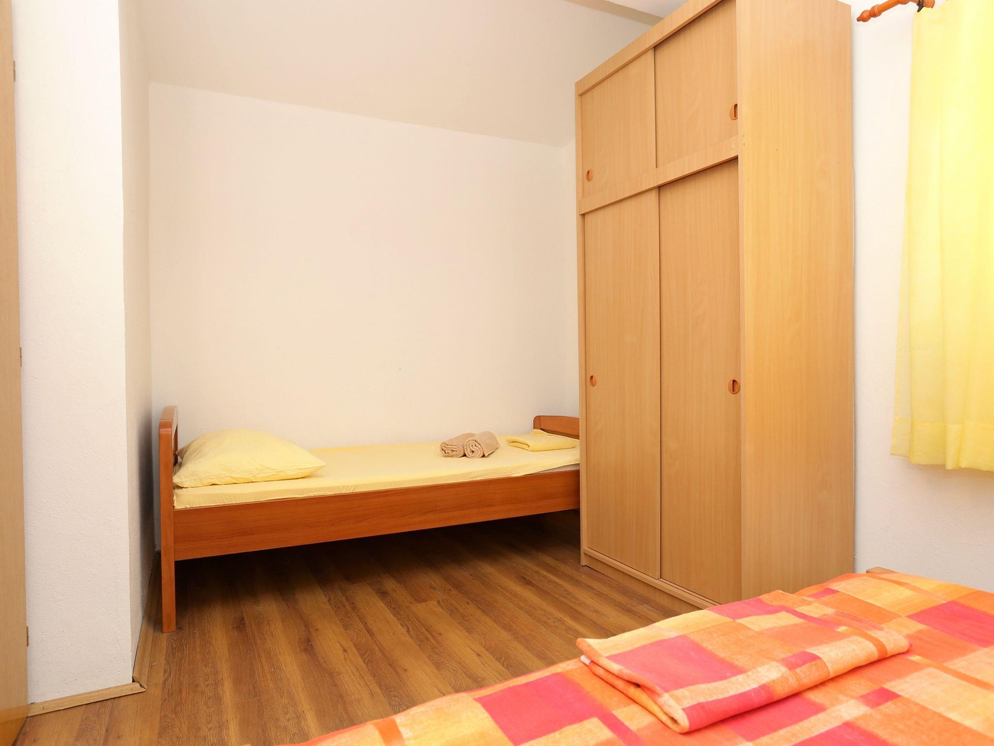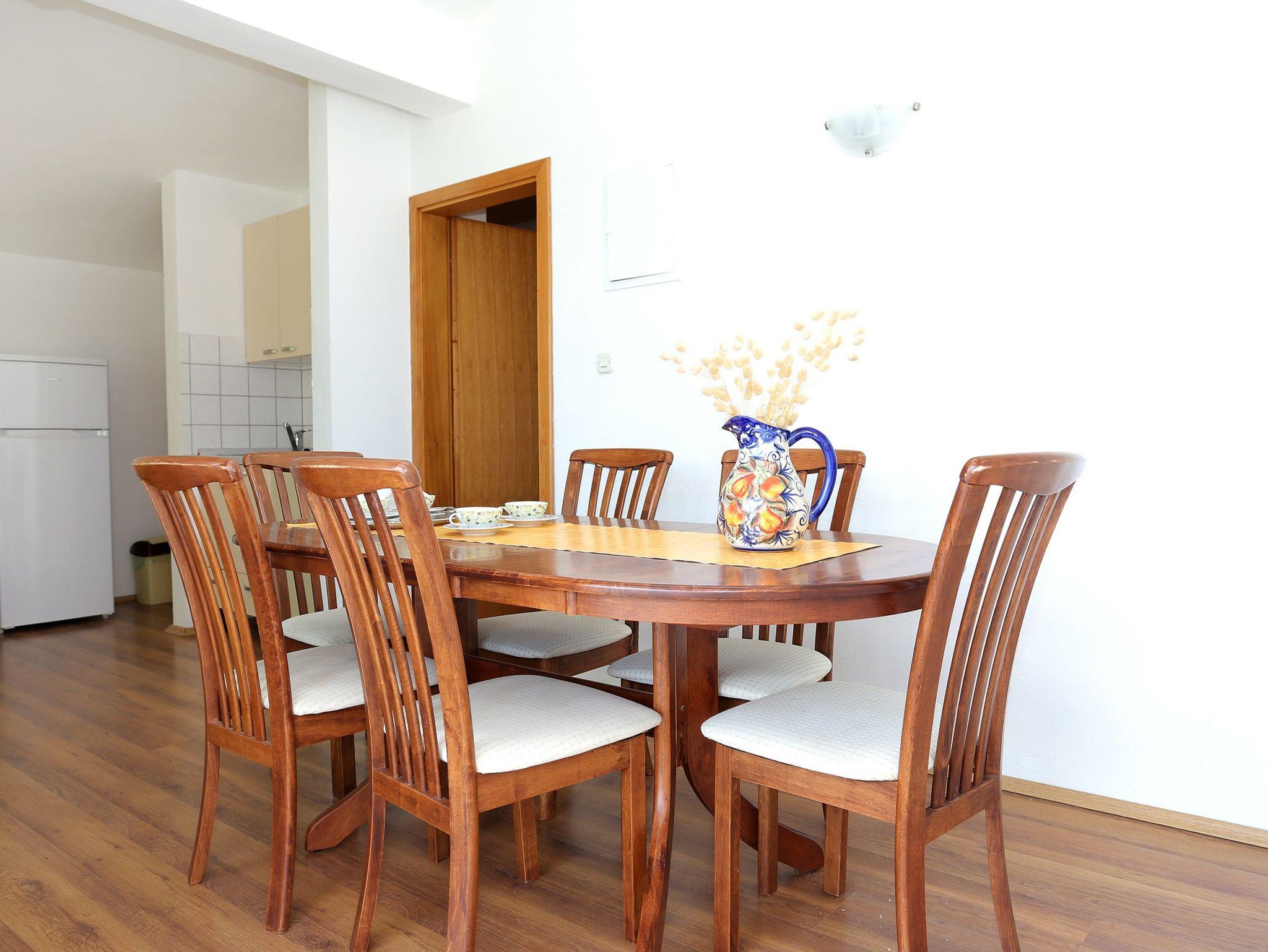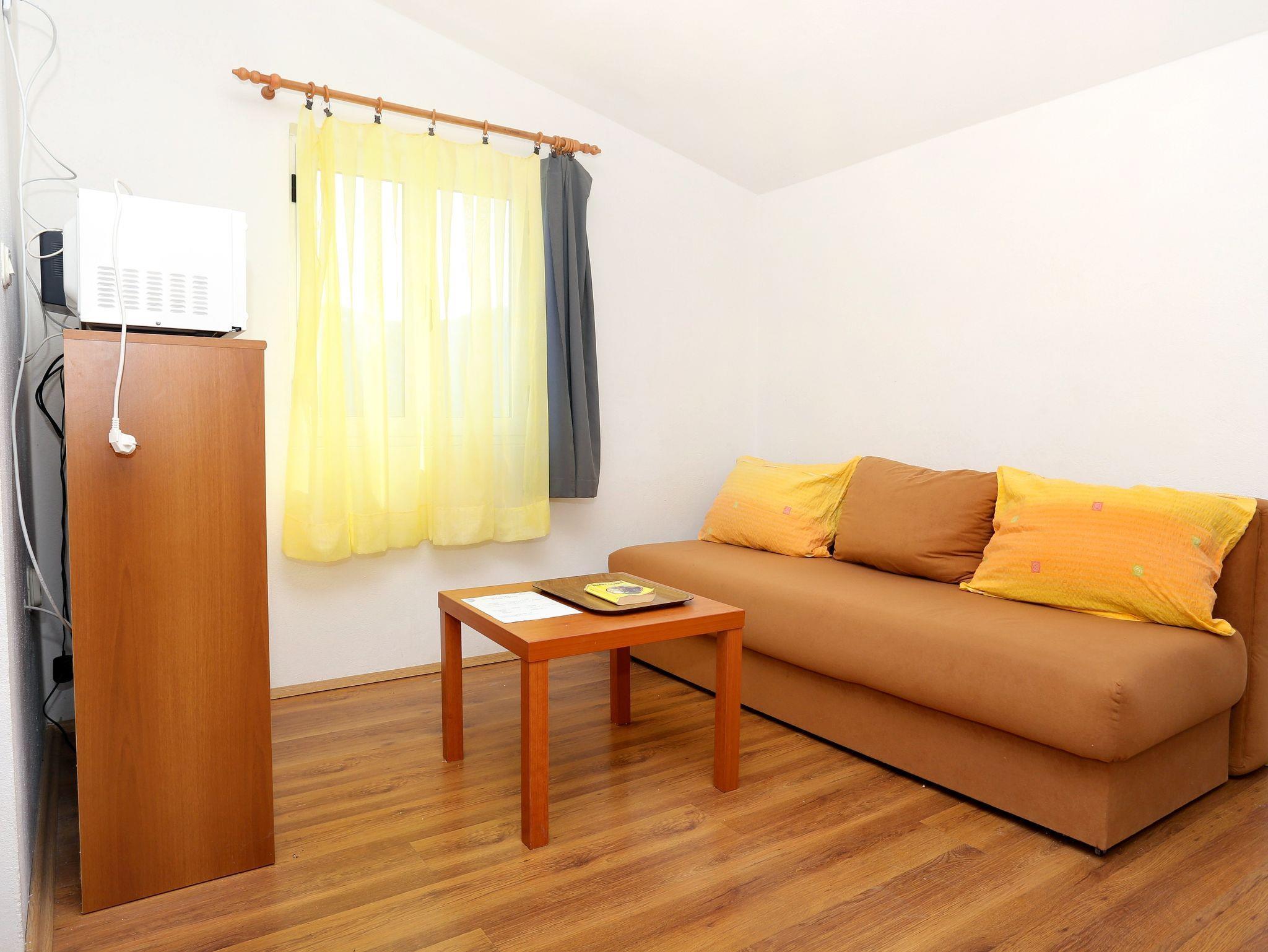 Ferienwohnung bietet Platz für 4 Gäste. Die Betten sind in Schlafzimmern, die es 1 gibt, und in Wohnzimmer, innerhalb einer Gesamtfläche von 34m2, angeordnet. Die Gäste haben einen eigenen Balkon zur Verfügung, auf der sie in warmen Sommernächten genießen können. Das Apartment bietet Meerblick. Es ist erlaubt, Speisen auf dem Gemeinschafts-Grill vorzubereiten. IM PREIS INBEGRIFFEN: Kurtaxe, Endreinigung, Klimatisierung, Parkplatz, Internet, Bügeleisen, Bügelbrett, Föhn, Sonnenschirm, Liegestühle. VERBINDLICHE ZUSÄTZLICHE KOSTEN: Aufzahlung für Kurzaufenthalte (prozentualer Zuschlag pro Nächtigungsanzahl: 30% - 1, 20% - 2, 10% - 3). Die Verfügbarkeit zusätzlicher Dienstleistungen in Ihrem reservierten Termin und die Preise derselben (falls nicht aufgeführt) müssen im Voraus überprüft werden. Zusätzliche Dienstleistungen die in der Zahlungsaufforderung nicht aufgeführt sind werden direkt beim Vermieter bezahlt, angenommen der Gast nutzt auch diese. Ermäßigung auf den Grundpreis: Gratistag 28=25 (bei einem Aufenthalt von 28 oder mehr Tagen erhalten Sie 3 kostenlose Tage für den Aufenthalt bis 31.12.26).