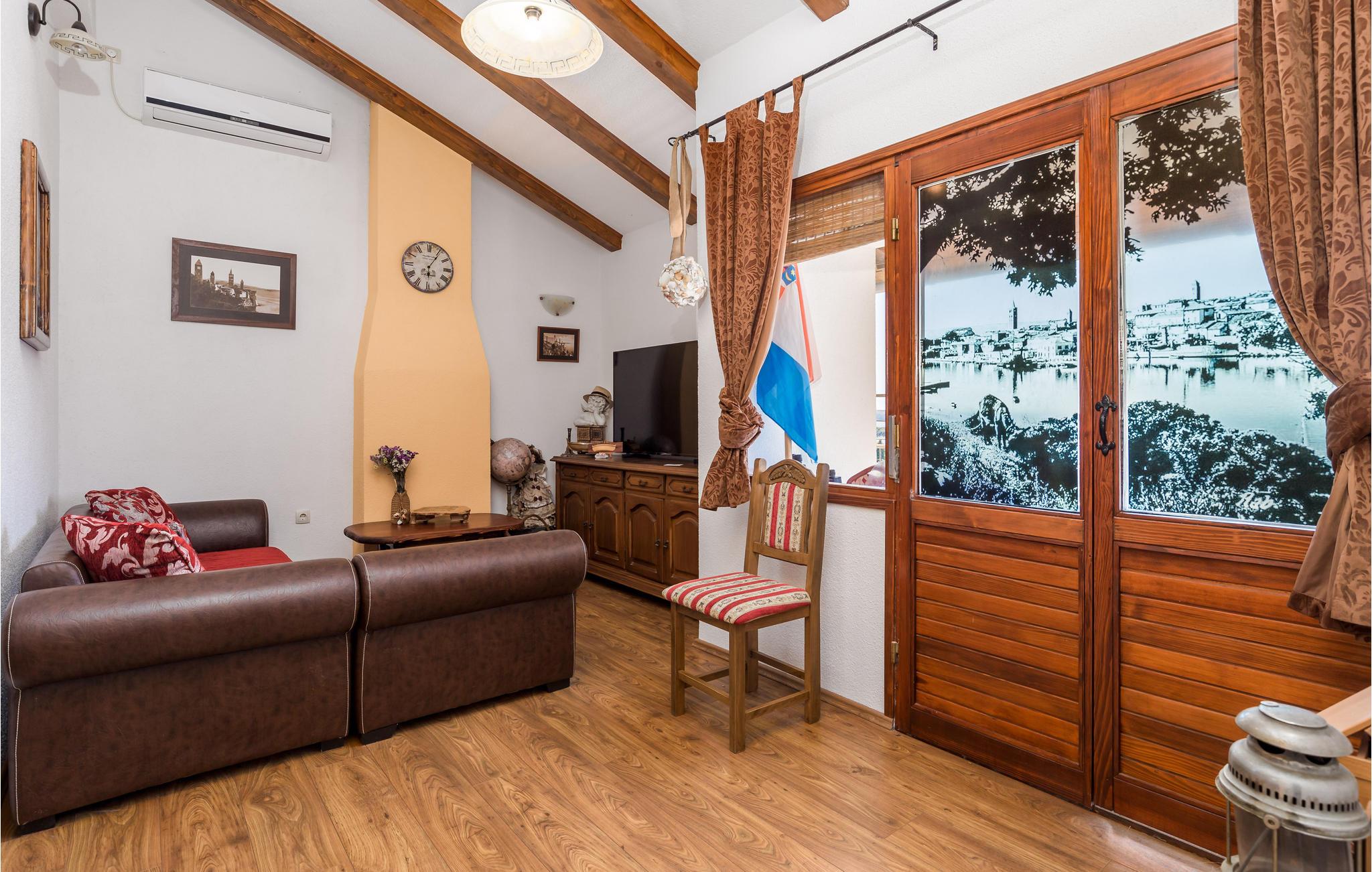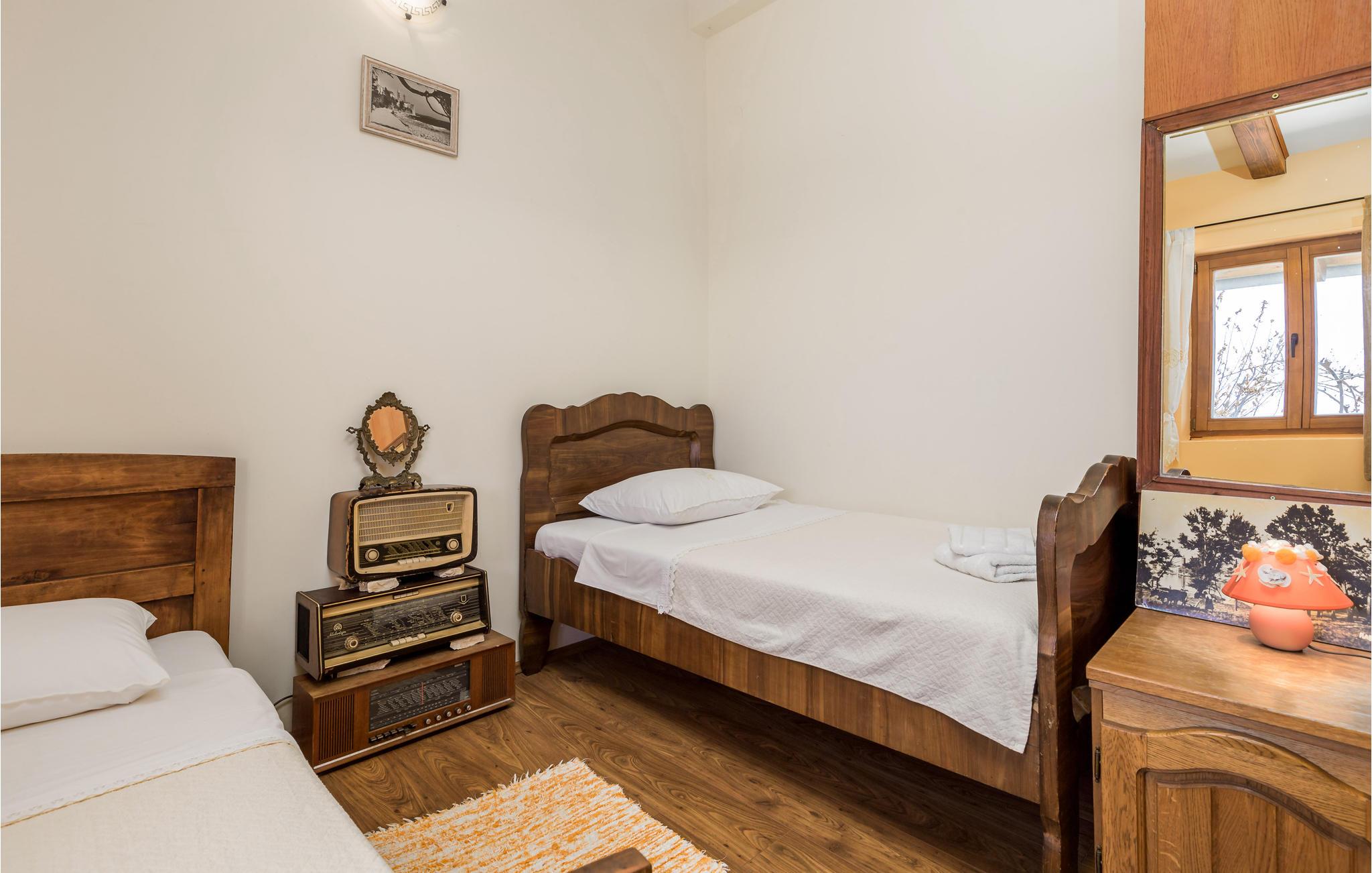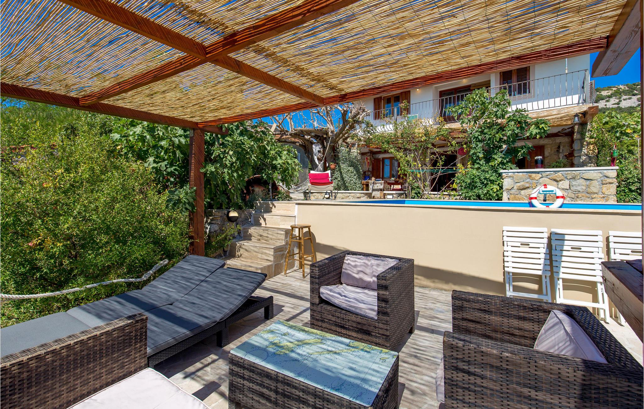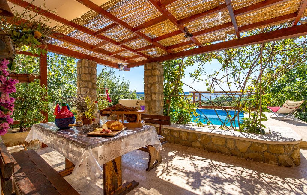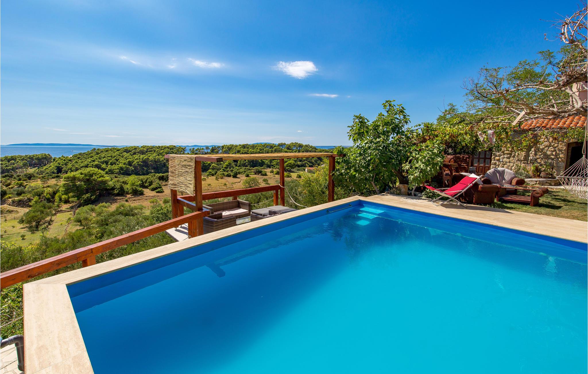 Hvis I søger fred og ro samt landlige rammer, er dette toetagers stenhus helt perfekt. Her får I både en privat, hyggelig have og et hus med tre soveværelser, så der er masser af plads. I køkken-alrummet kan I nyde måltiderne i flotte rustikke omgivelser og lytte til de knitrende flammer fra den åbne pejs. I kan også samles omkring spisebordet på terrassen og beundre udsigten til havet og den nærliggende ø. I haven kan I slænge jer i hængekøjen, hoppe en tur i den private pool, grille eller nyde et glas vin på terrassen, mens I lader øjnene hvile på havudsigten.