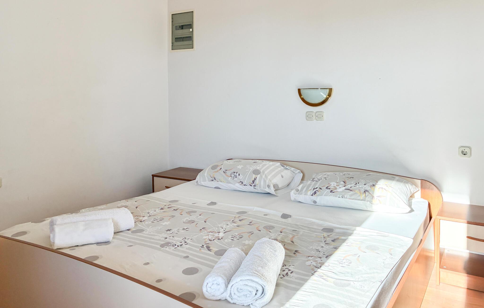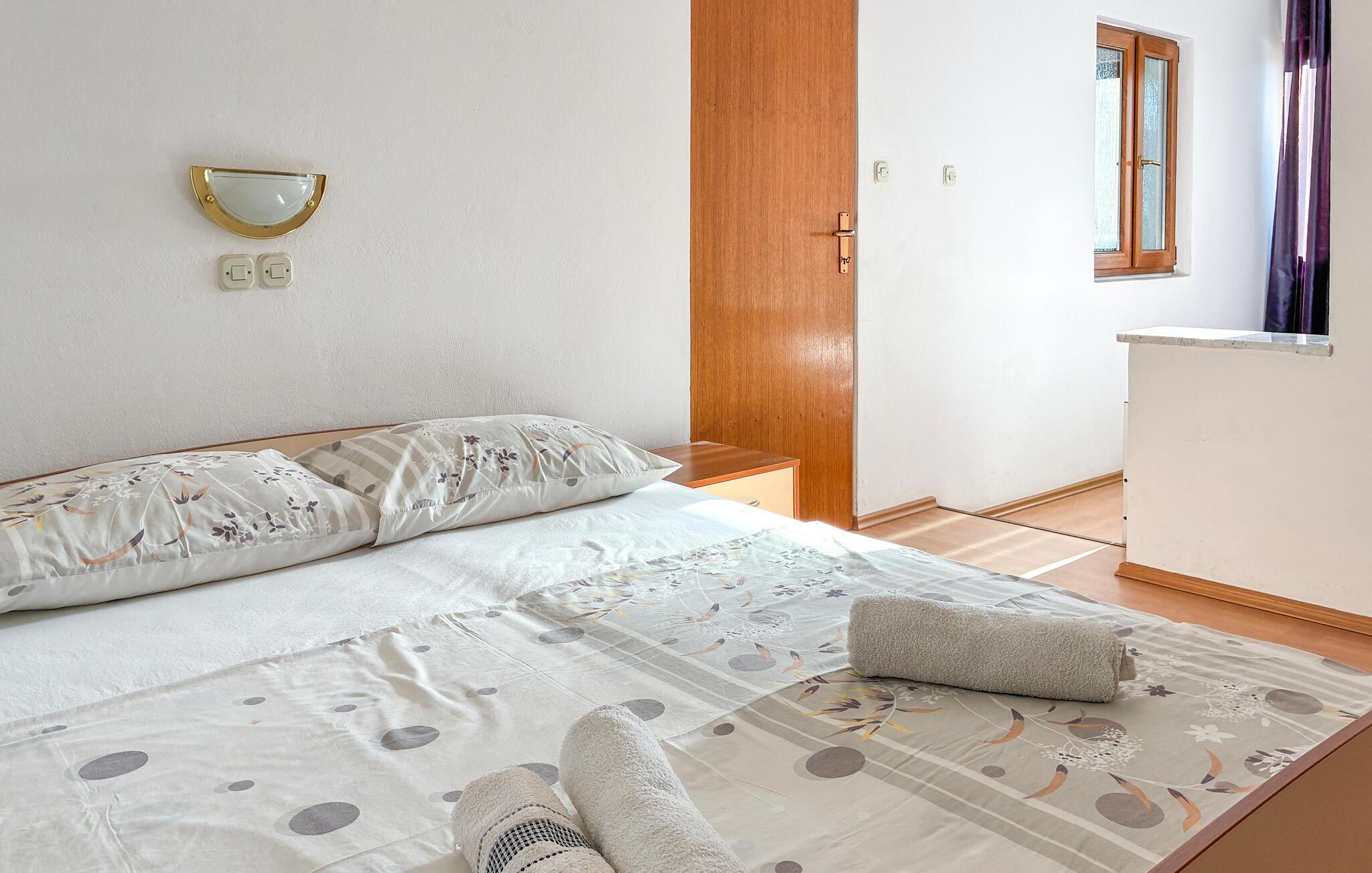 Slentr til den nærliggende strand med det klare vand og tilbring solrige dage ved havet eller med at svømme. Gå ture langs promenaden, slentre gennem den charmerende bymidte og oplev små caféer og restauranter. Udforsk de maleriske bugter omkring øen eller besøg den historiske gamle bydel i Rab med dens smalle gader og gamle havn.
